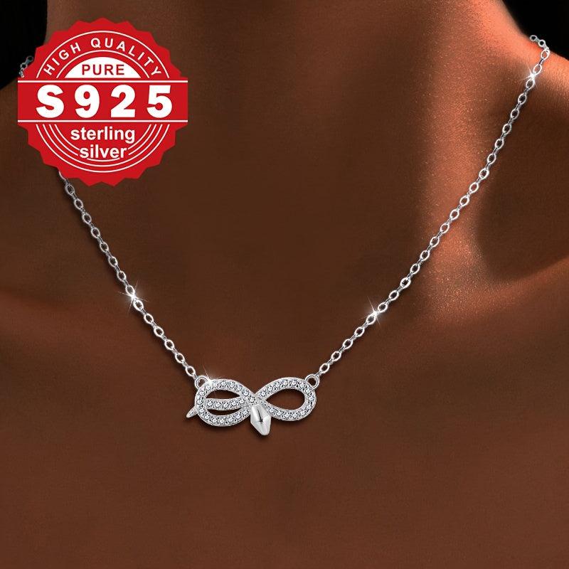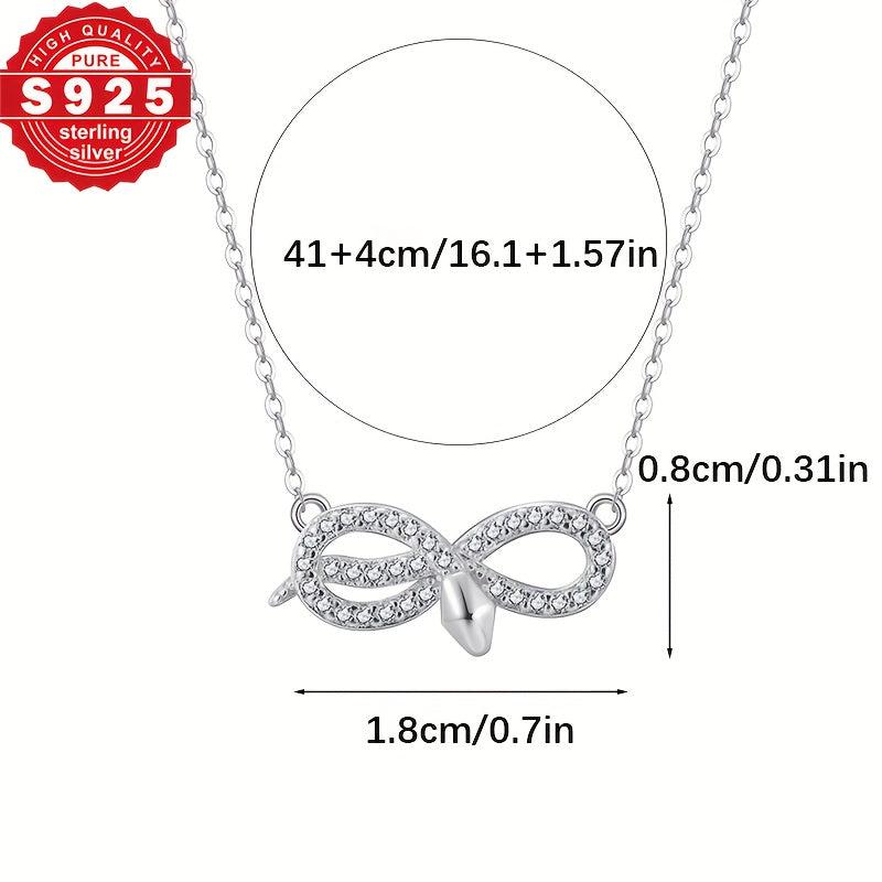 S925 Sterling Silver Women's Necklace with Snake Pendant & Zirconia