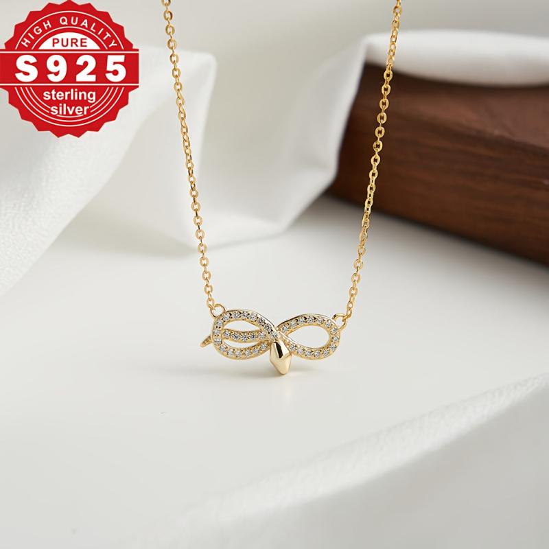 Elegant snake-shaped pendant necklace with sparkling cubic zirconia, perfect for dinners or as a Mother's Day gift.