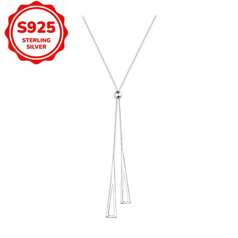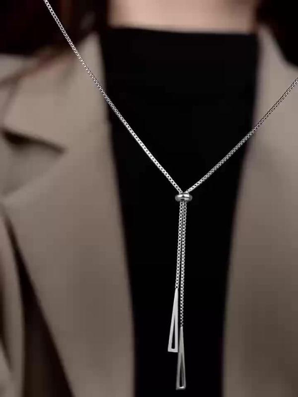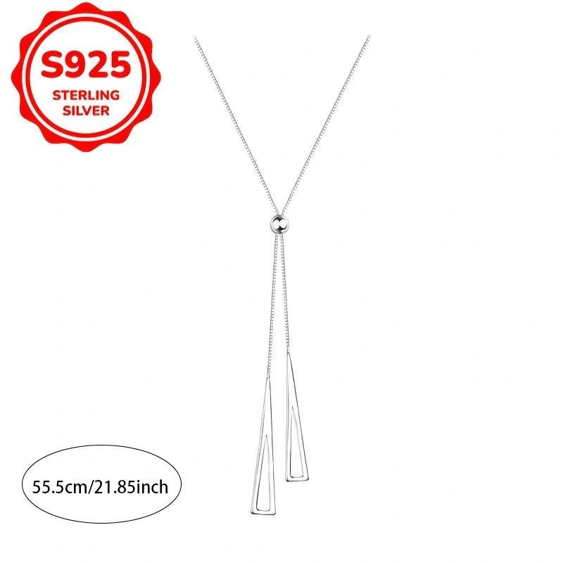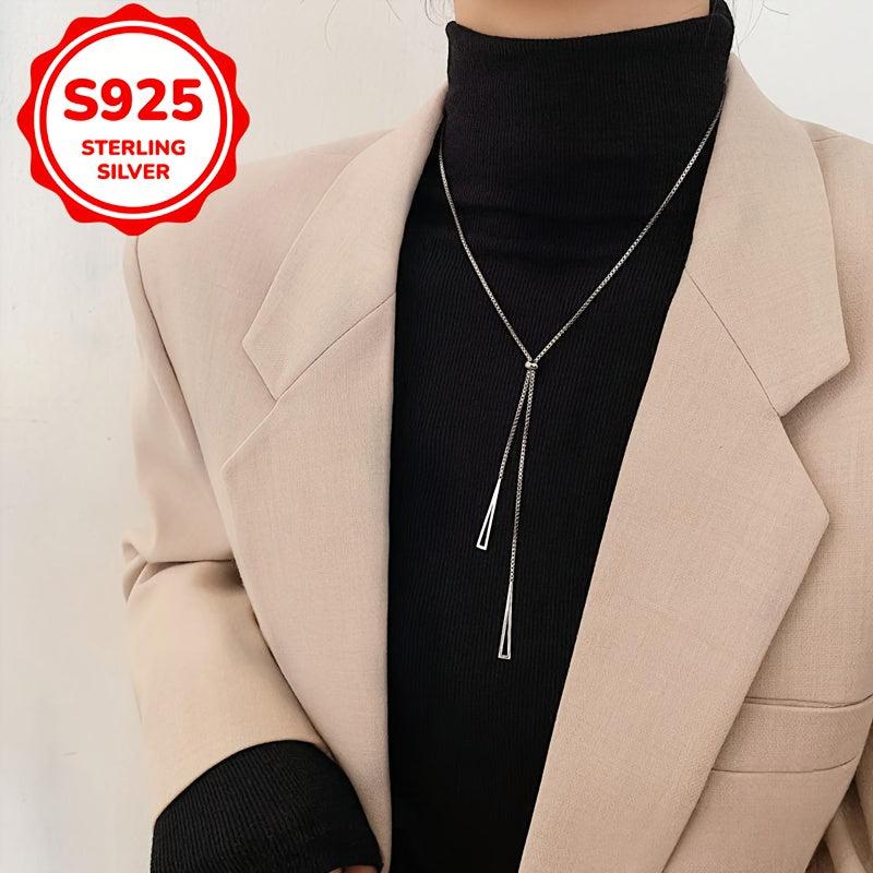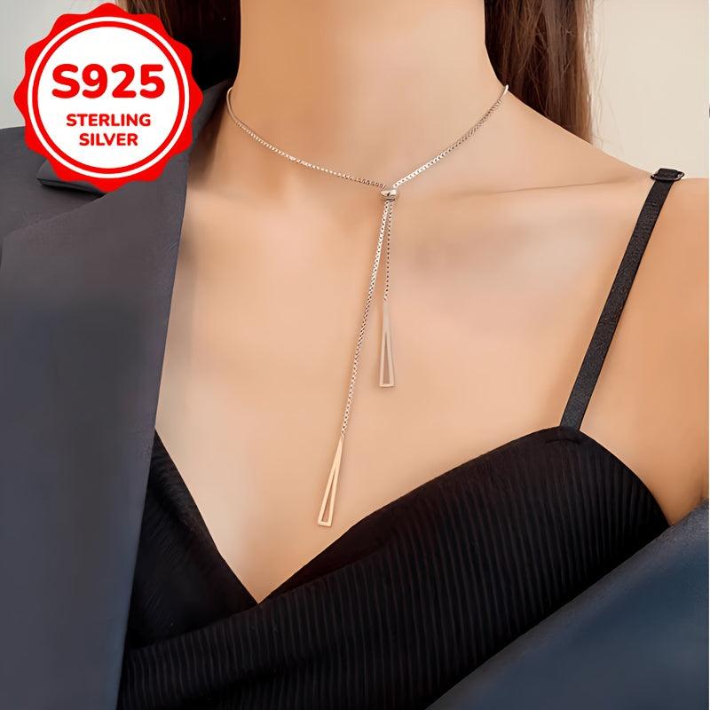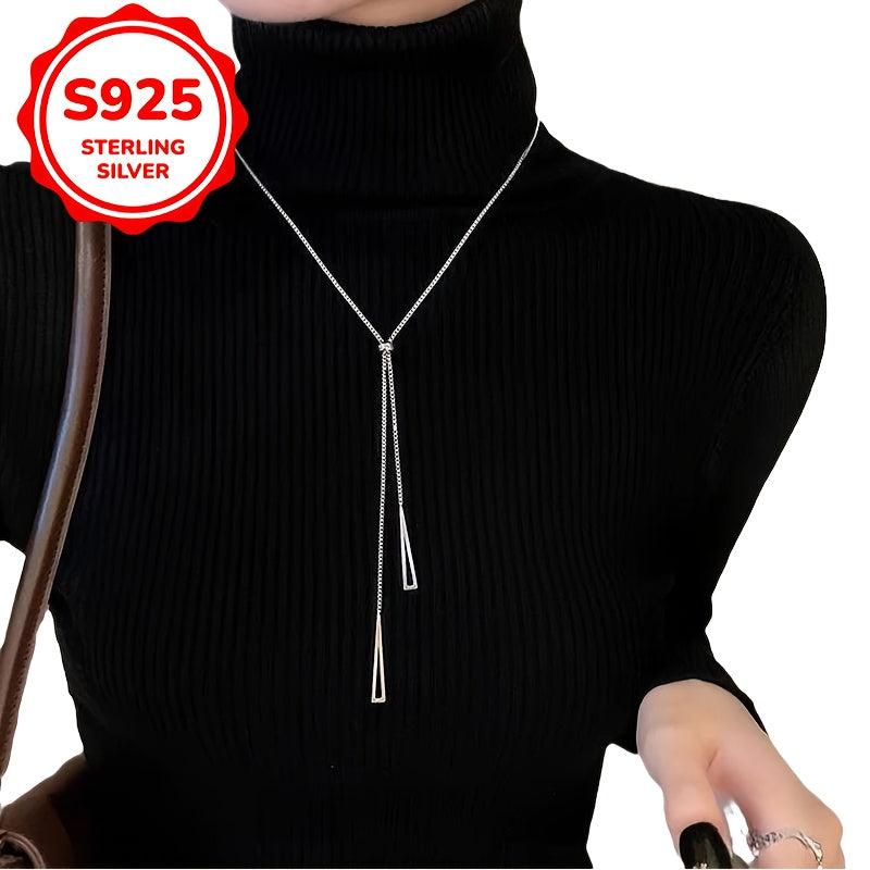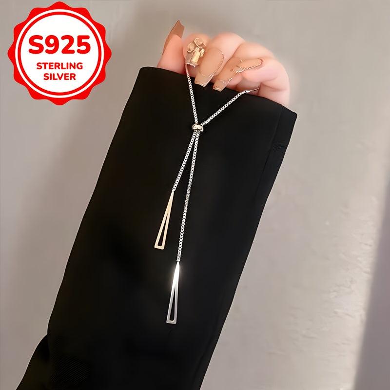 Elegant S925 silver necklace featuring a triangle pendant with tassel detail. Perfect for adding a chic touch to your outfits.