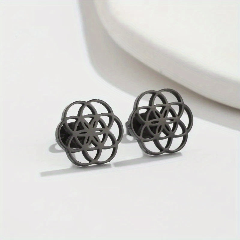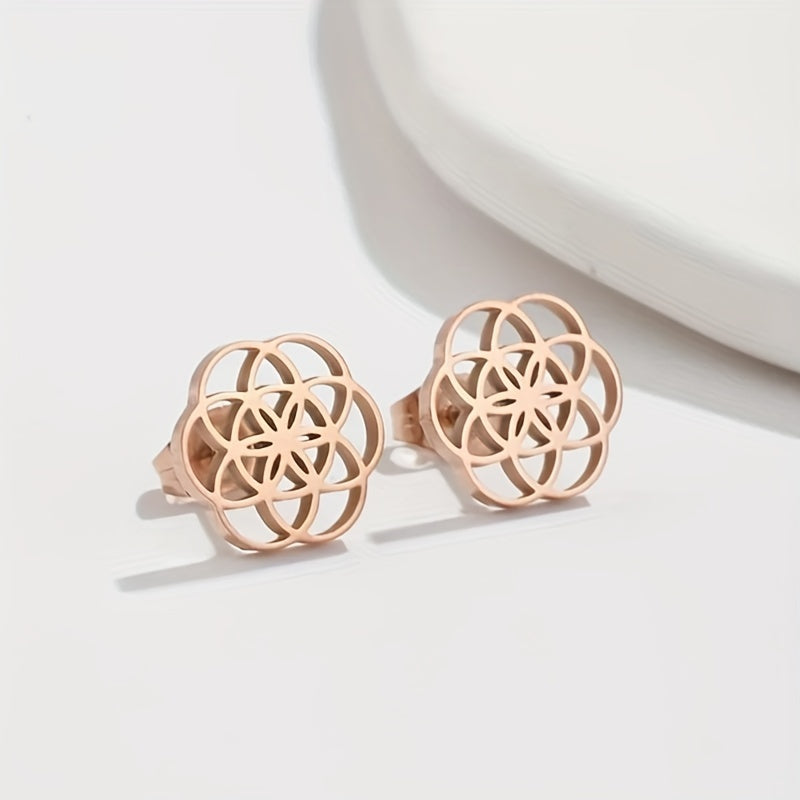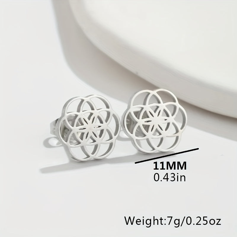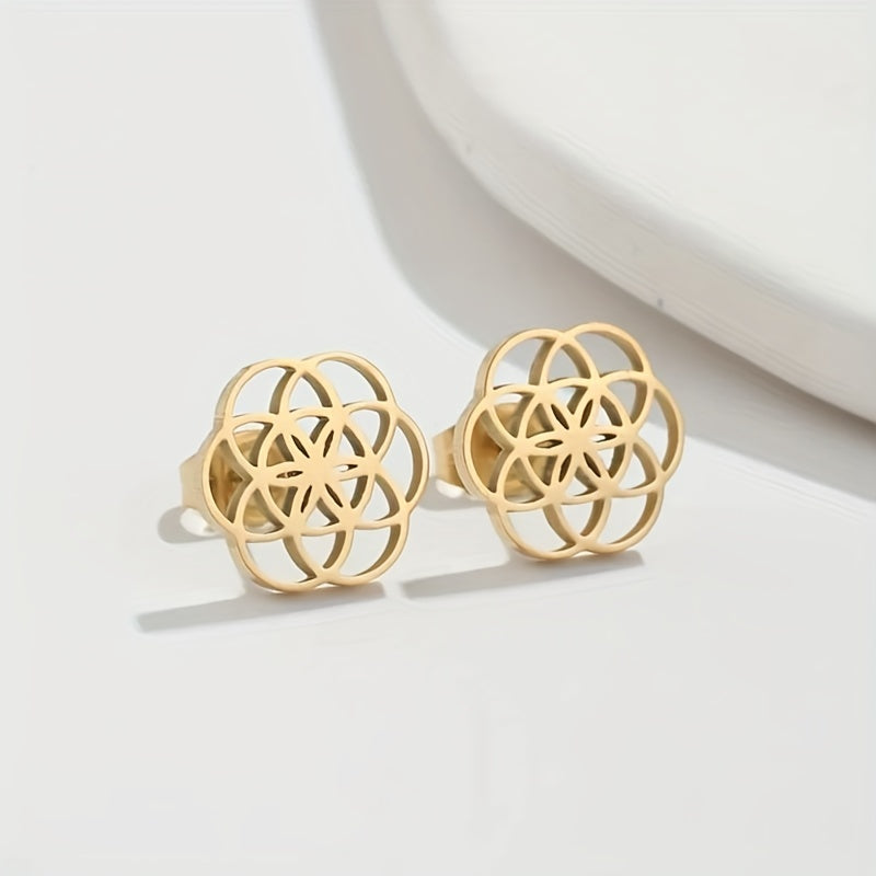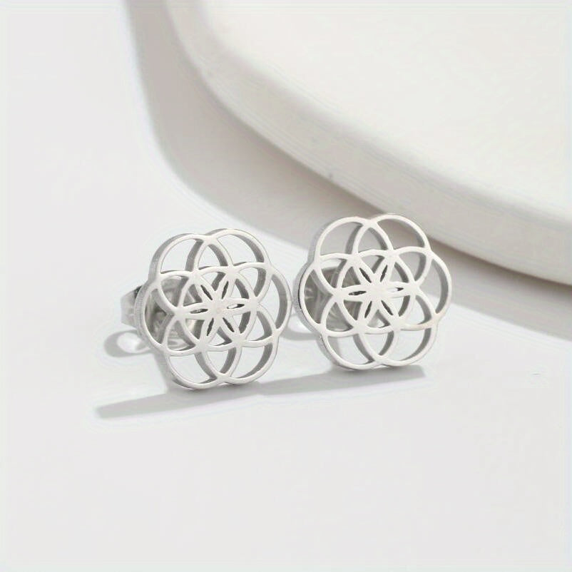 These delicate stud earrings feature the sacred geometric Seed of Life design. Made of stainless steel, they are a great gift for a retro minimalist style lover. Perfect for daily casual wear.