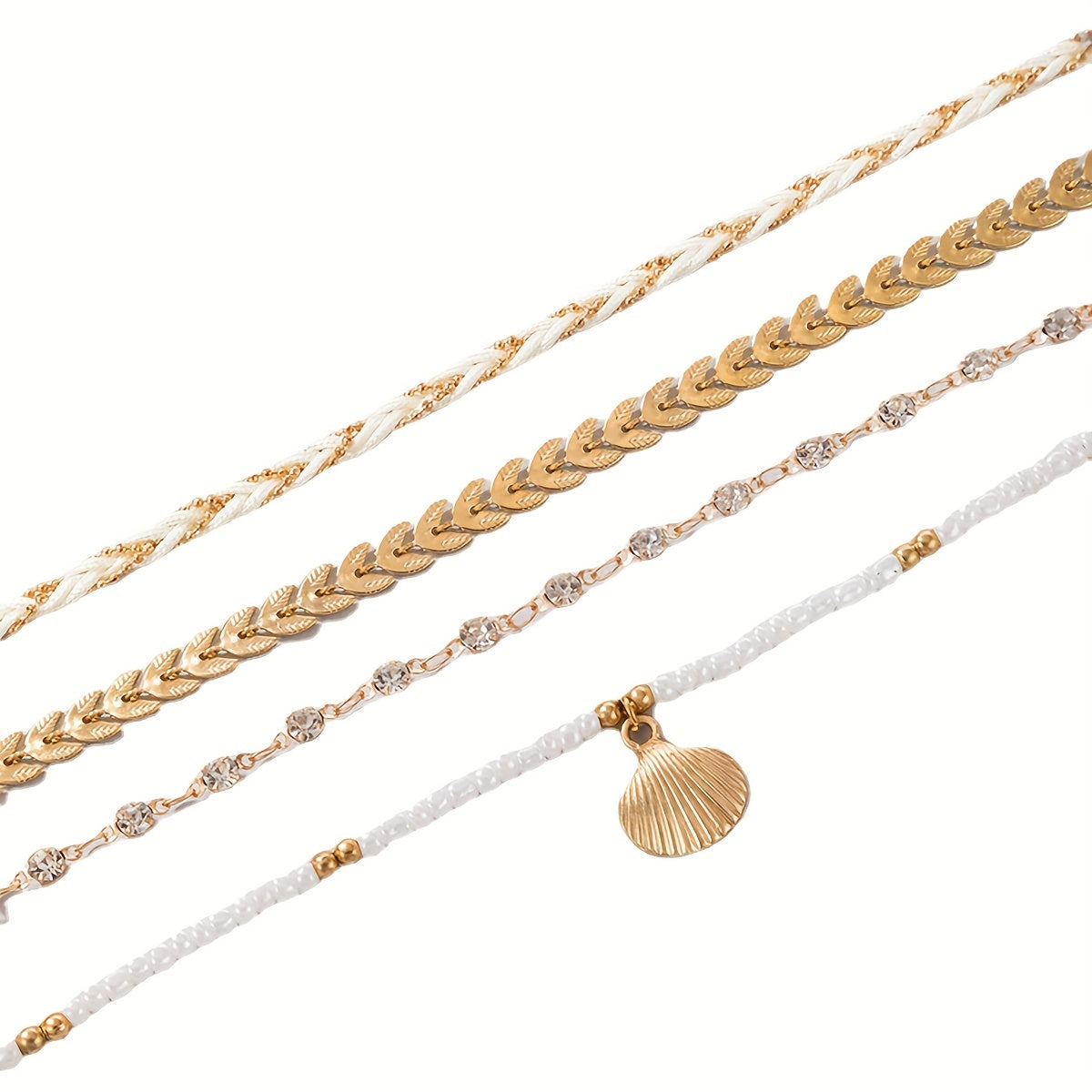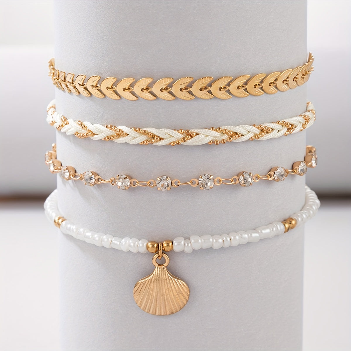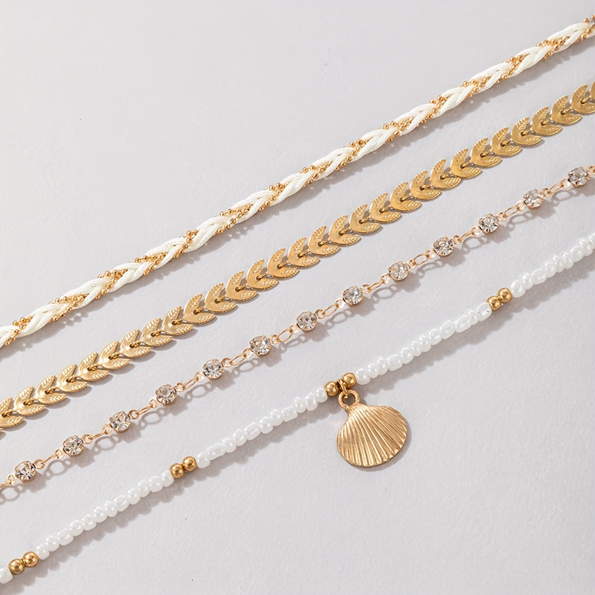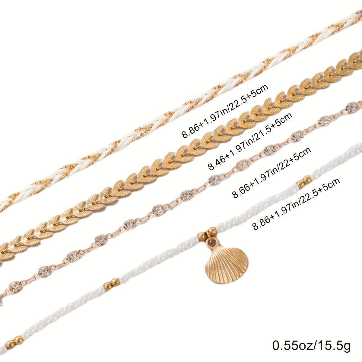 This set includes 4 pcs of shell shape pendant chain anklets, perfect for women and girls. Add a touch of beachy style to your ankle with this cute anklet set.
