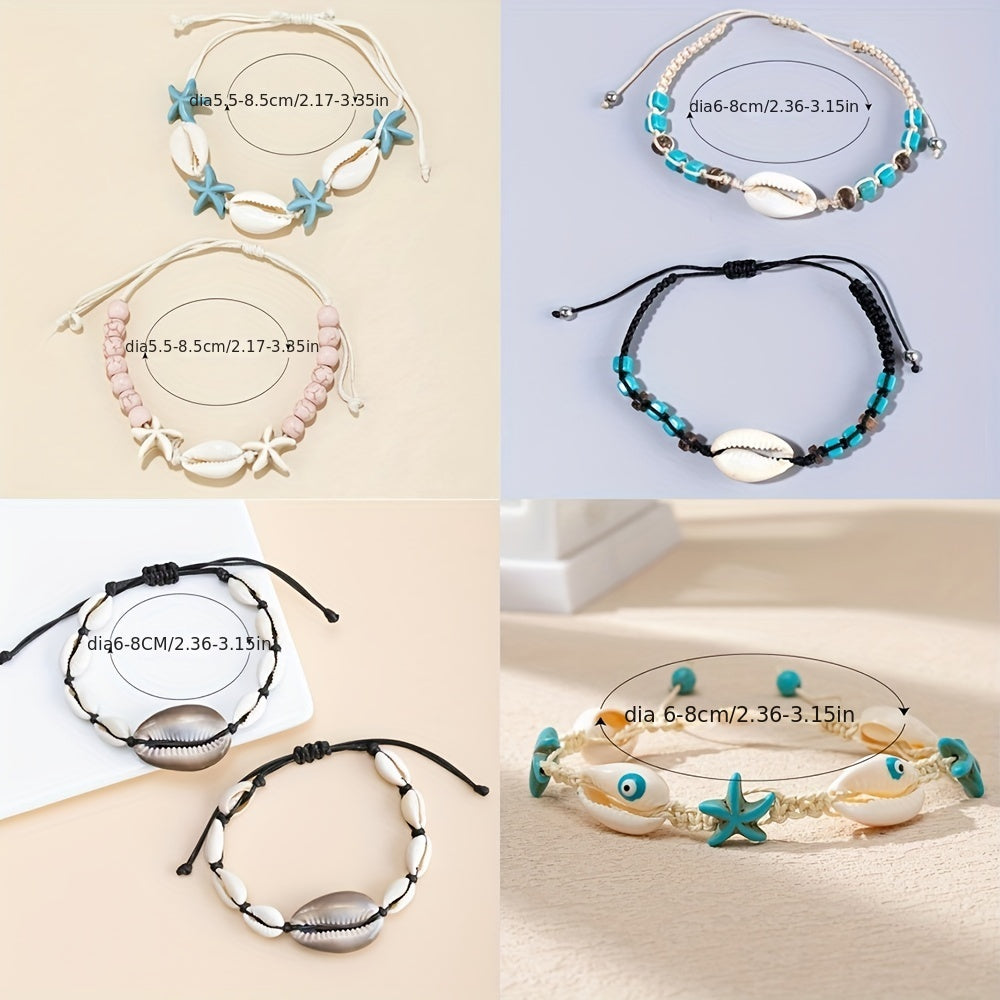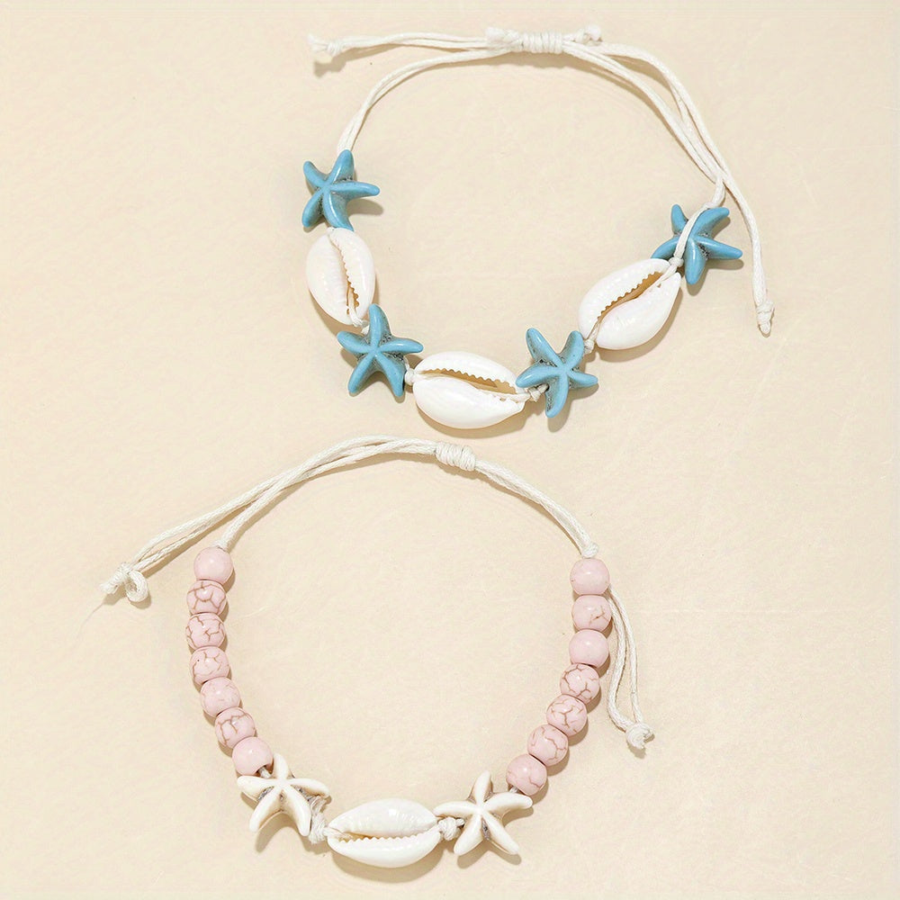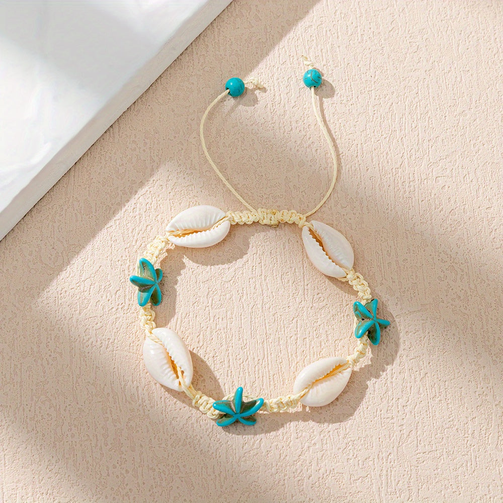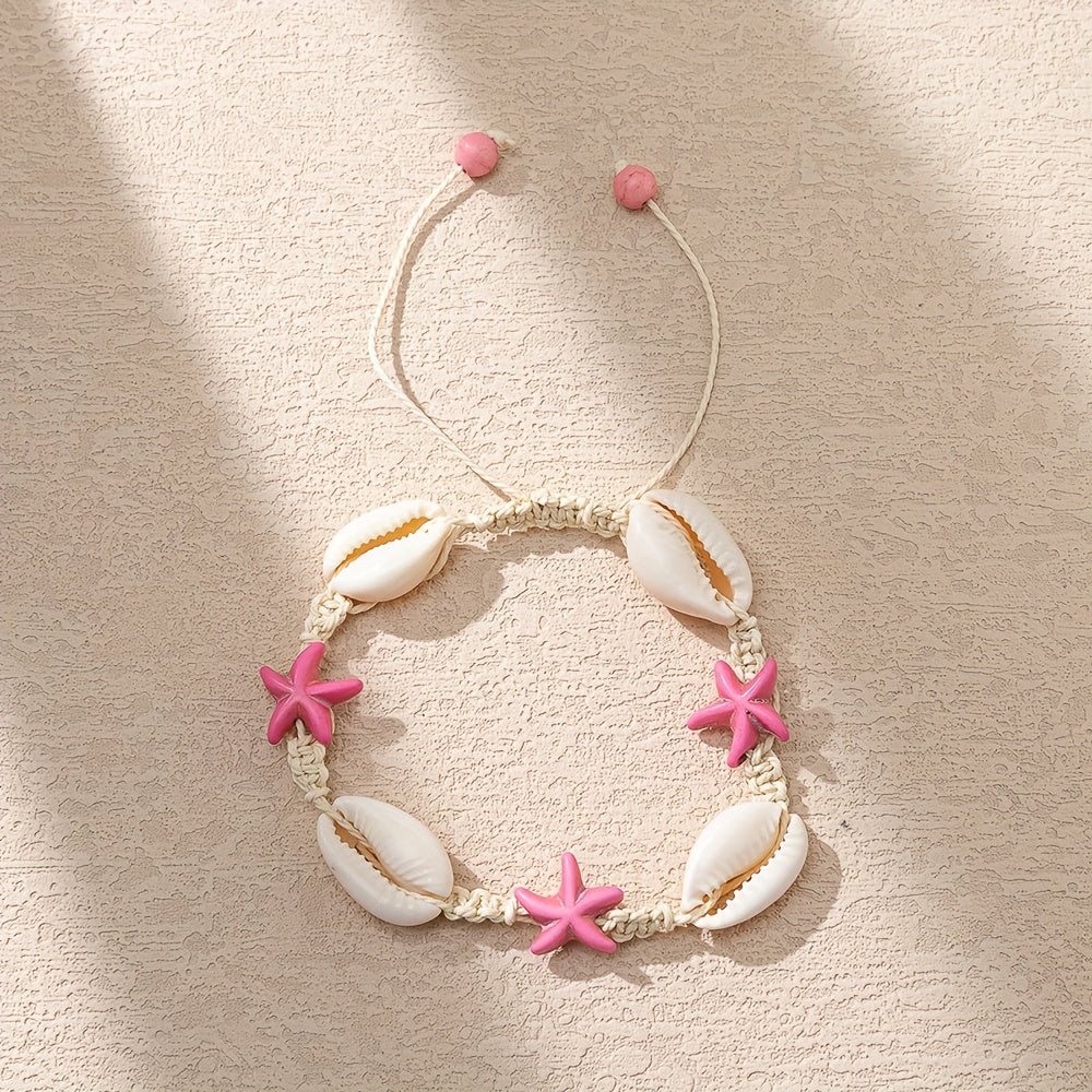 Enhance your hand jewelry collection with this adjustable bracelet featuring a charming shell and starfish design. Perfect accessory for any occasion.