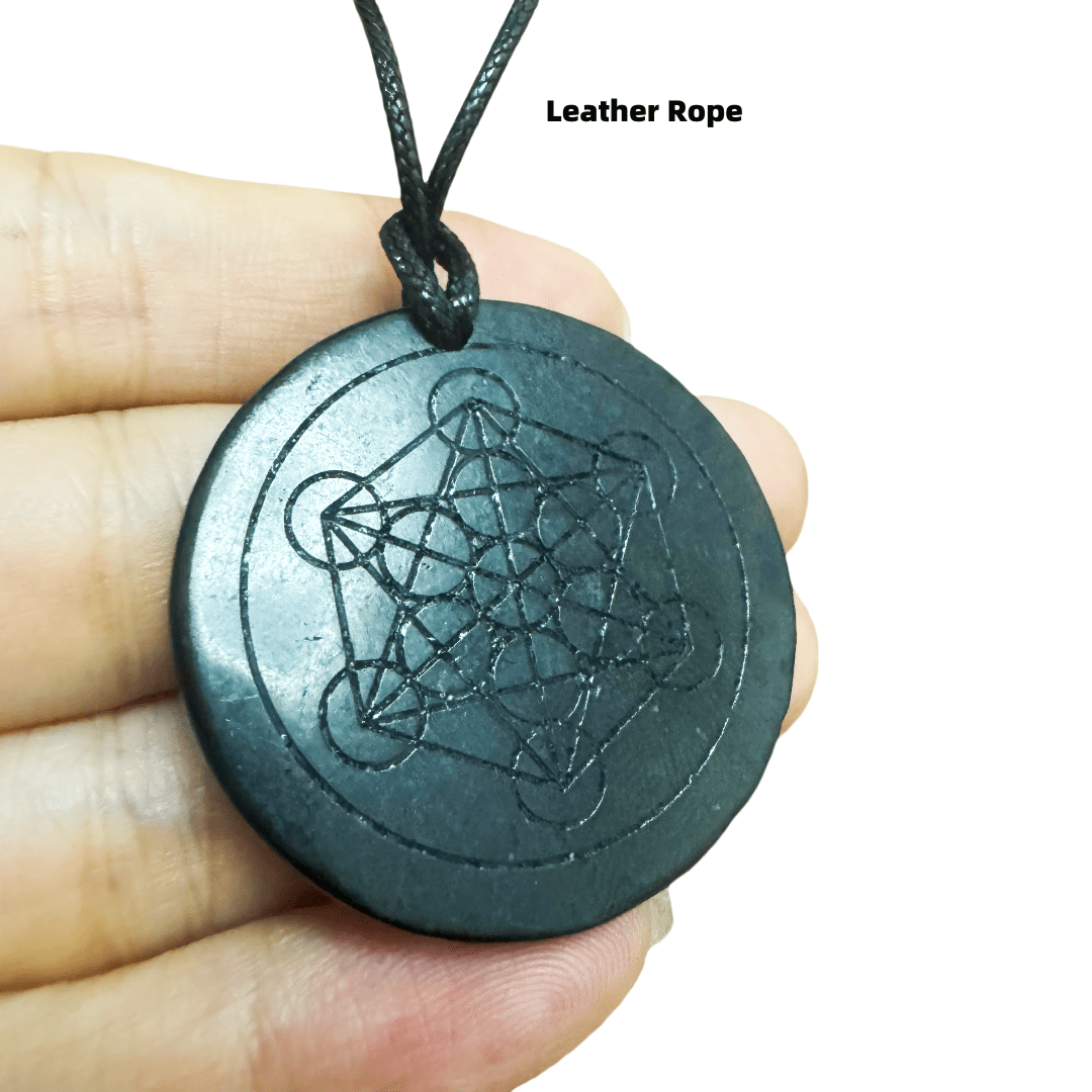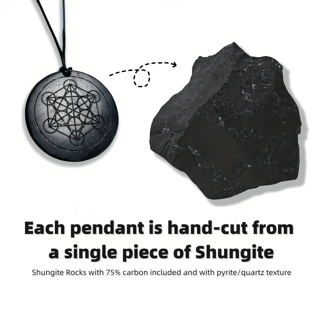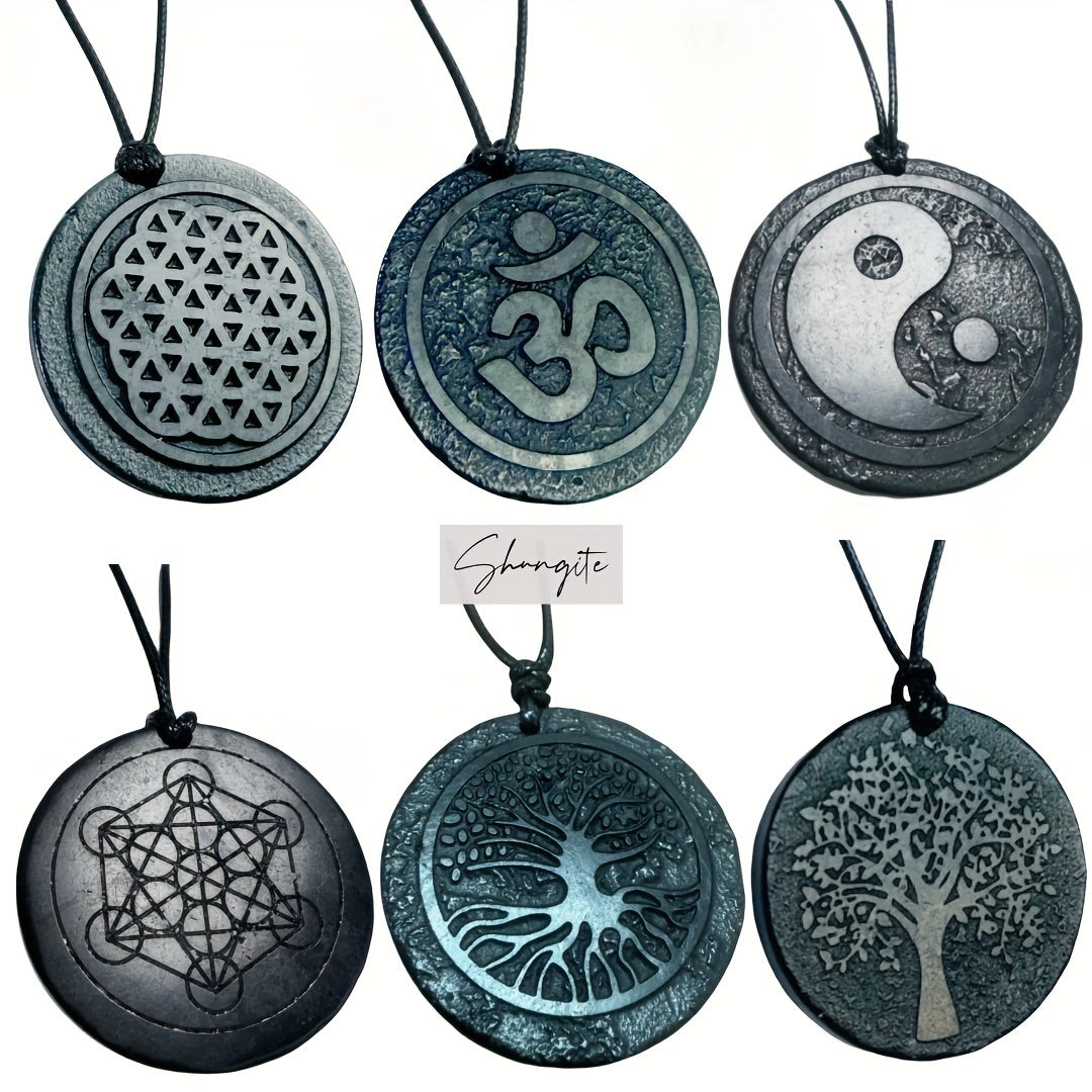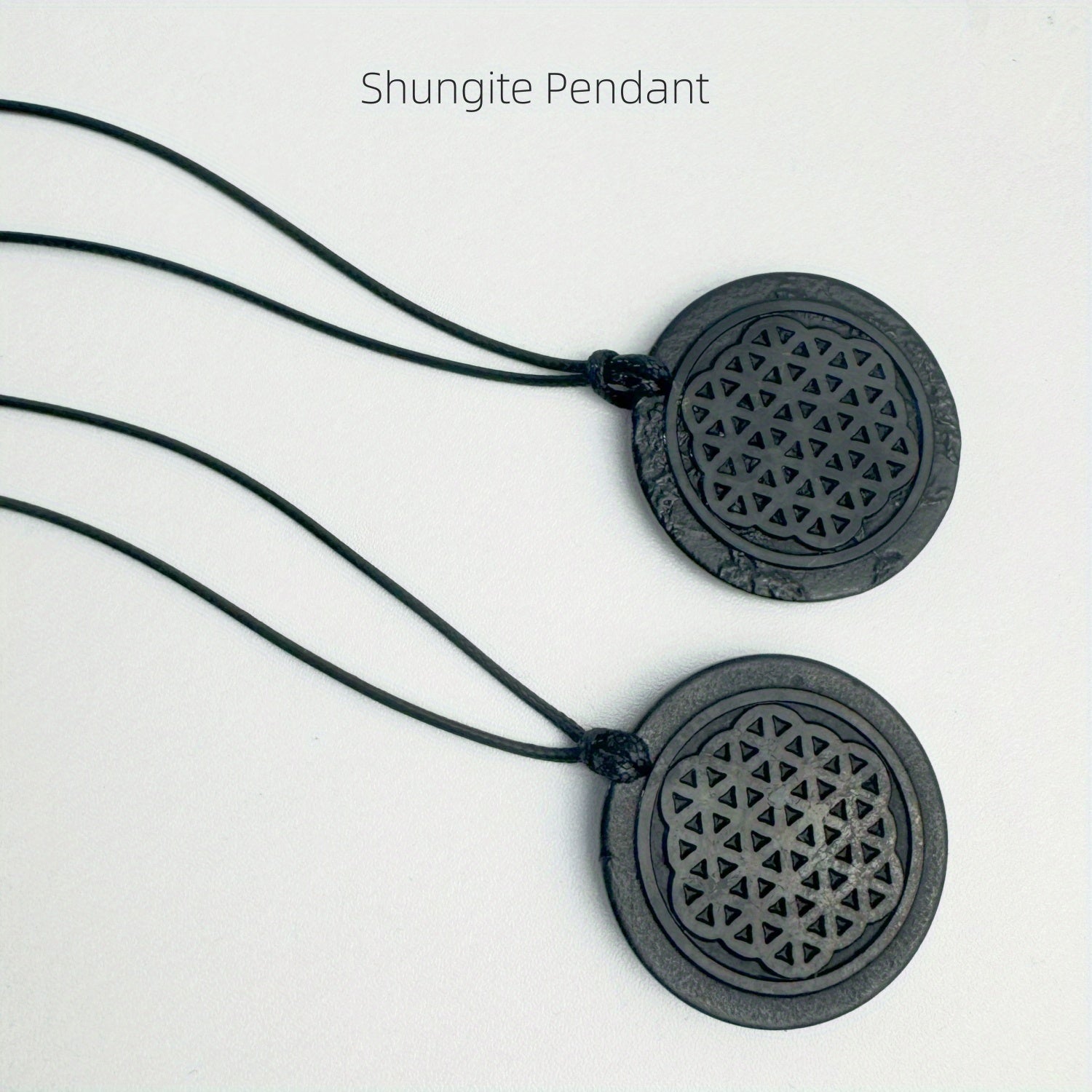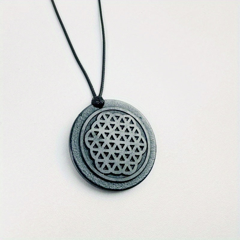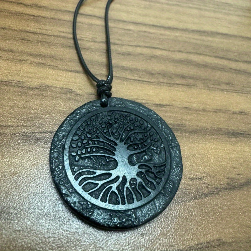 Handcrafted necklace made of shungite graphite with Flower of Life and Tree of Life design, perfect for energy protection and balance.