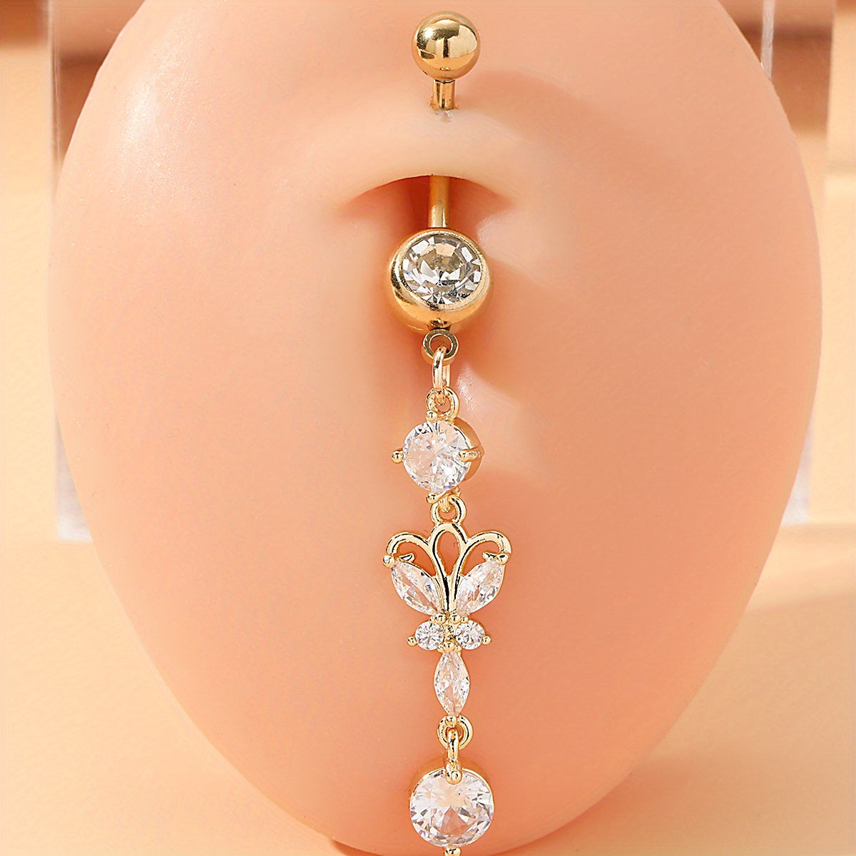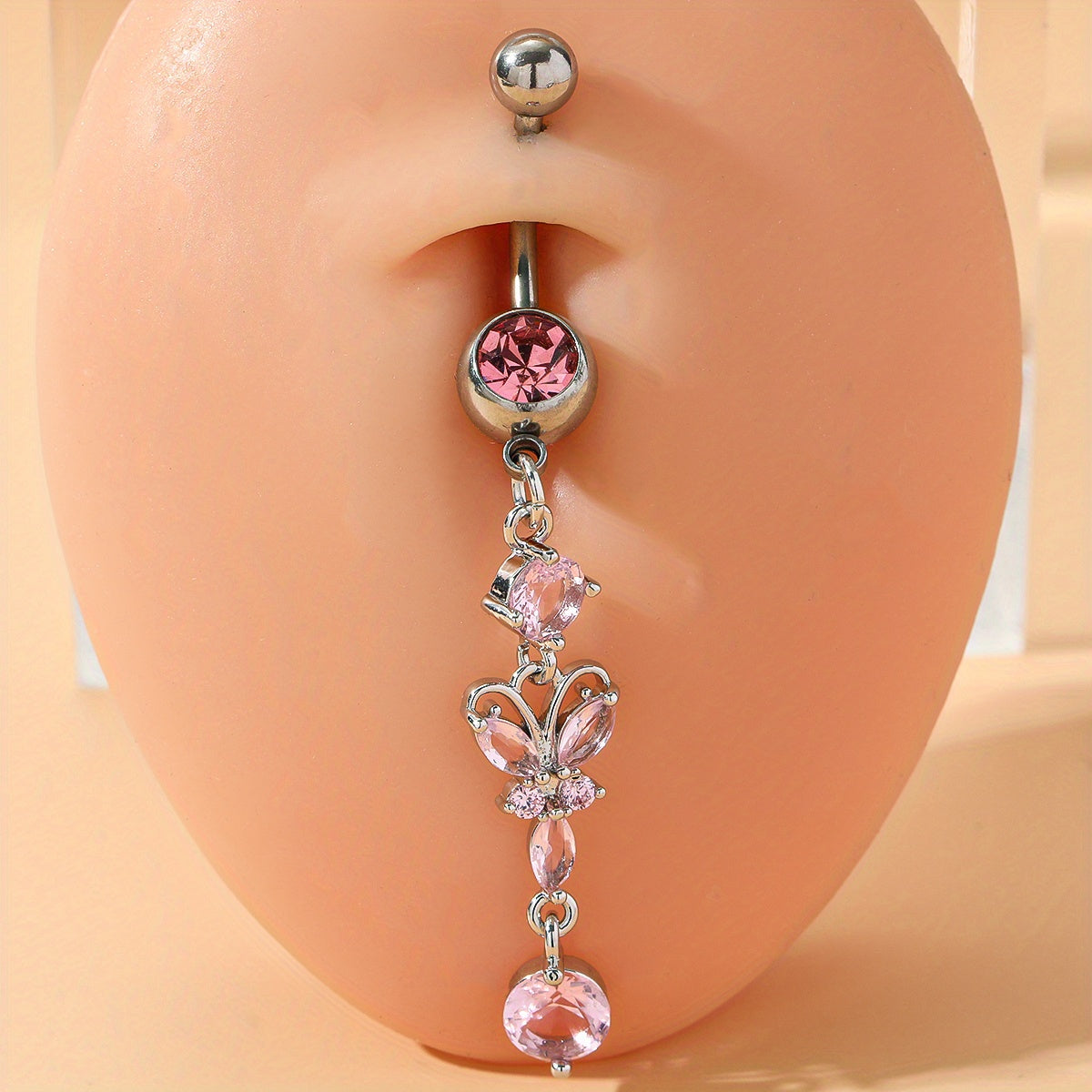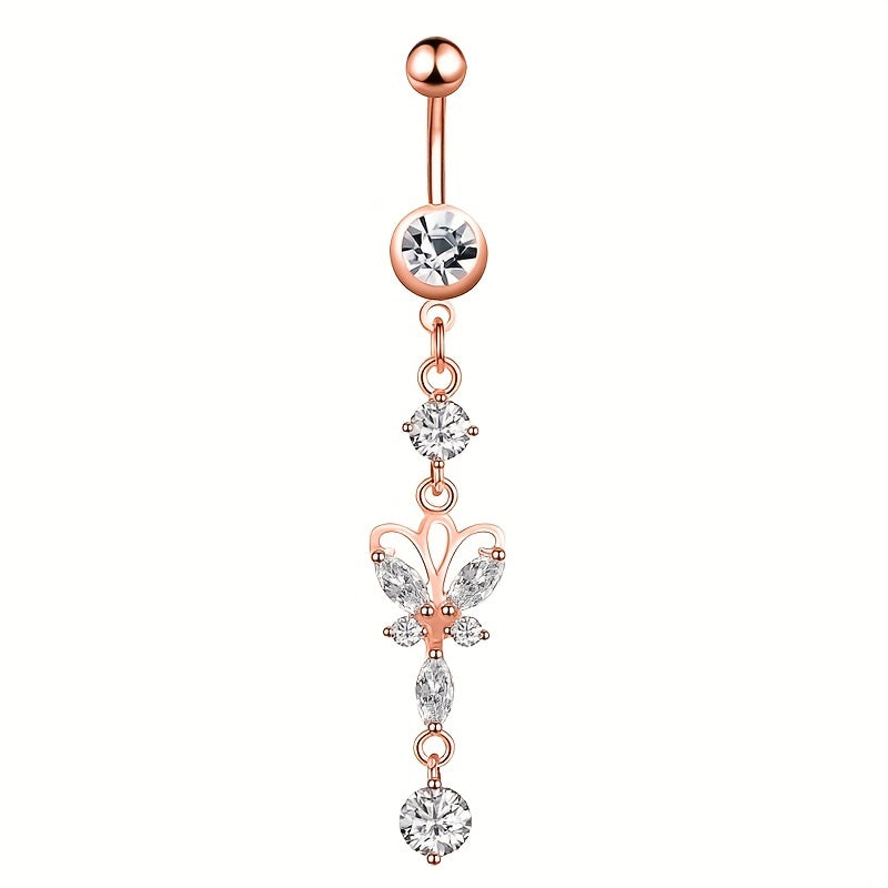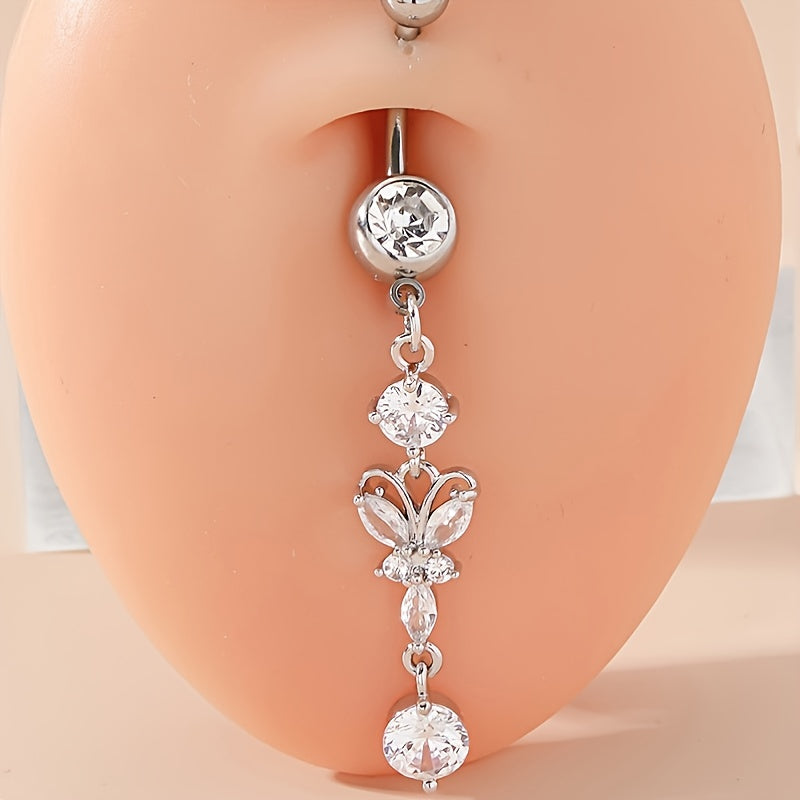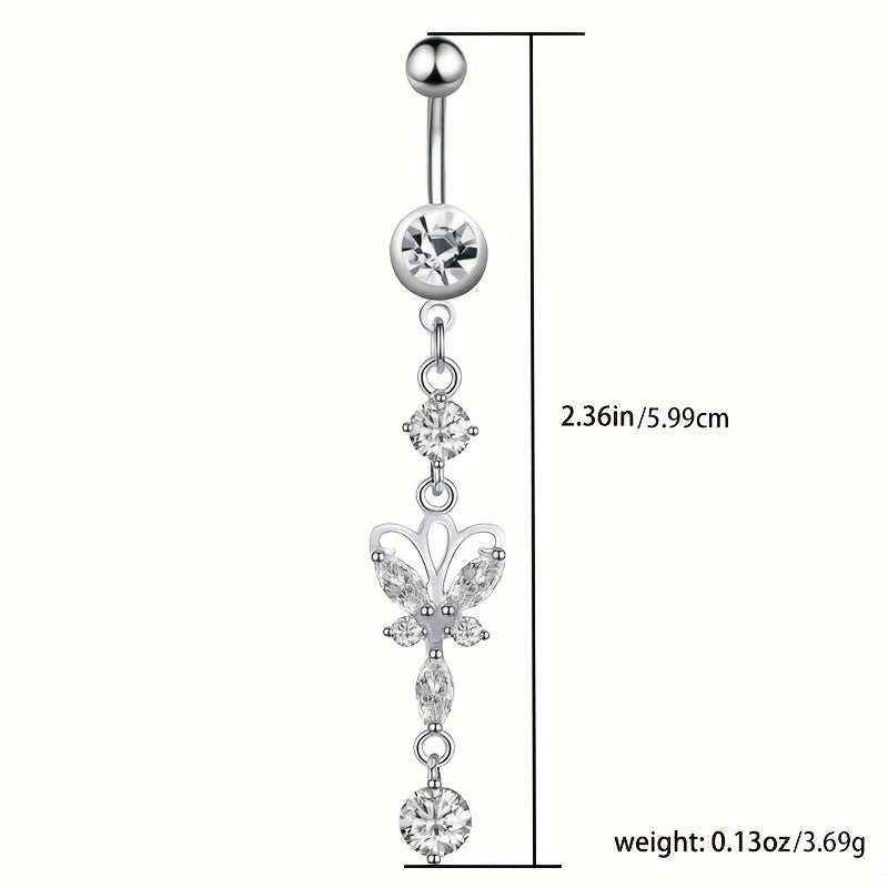 Elegant silver butterfly pendant belly button ring made of high-quality stainless steel. Perfect for women's piercing jewelry collection.
