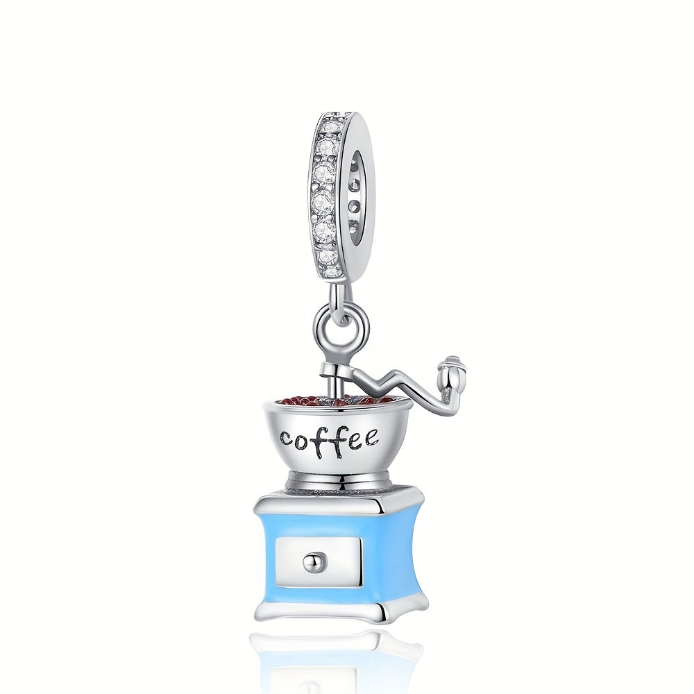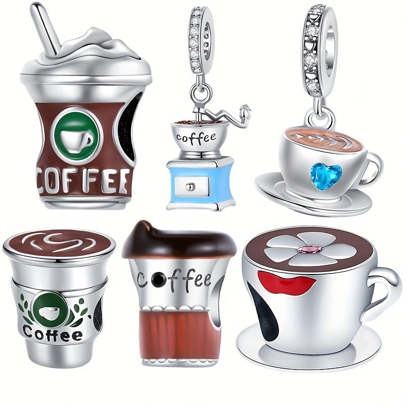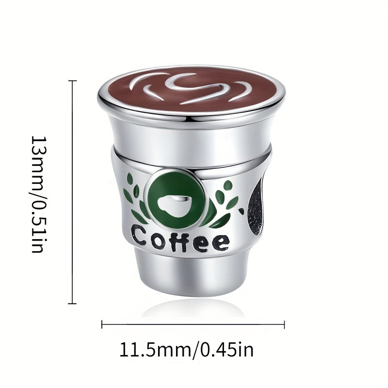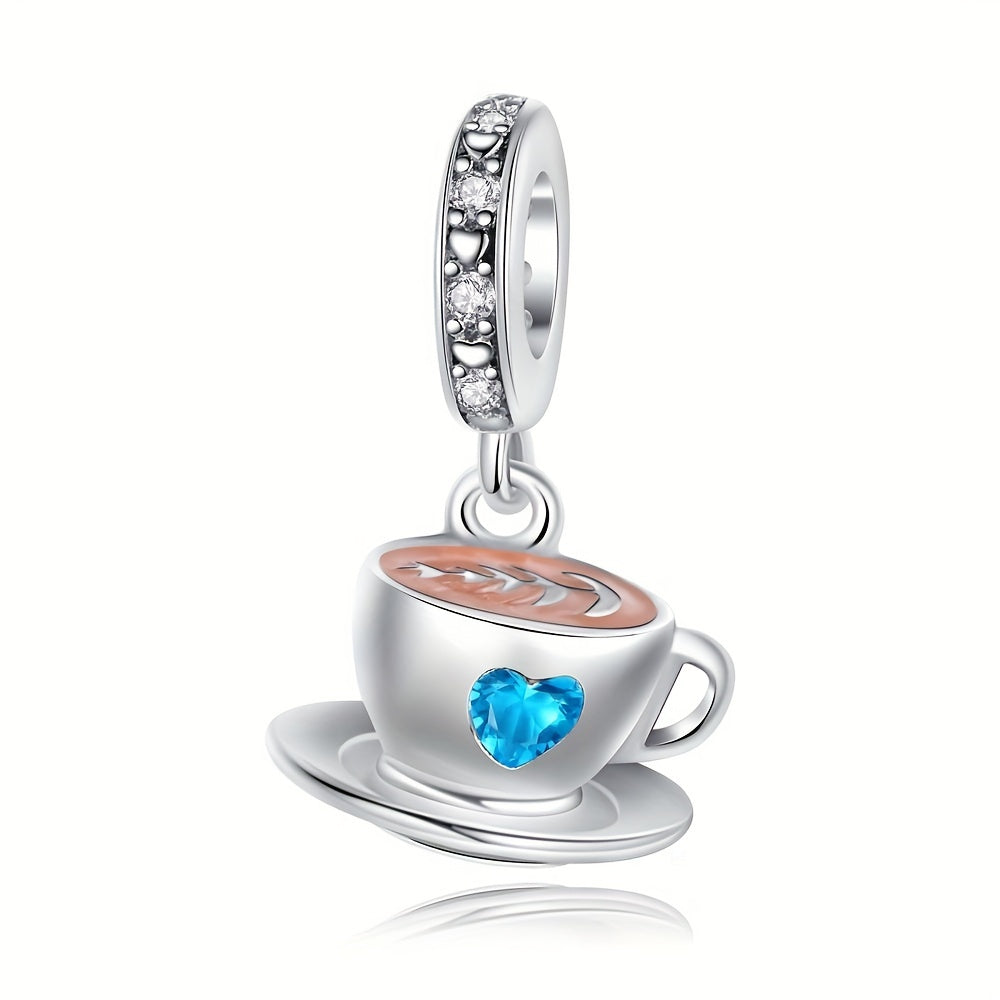 Adorn your bracelets or necklaces with this elegant silver plated coffee cup pendant featuring zircon detailing. Perfect gift for coffee lovers!