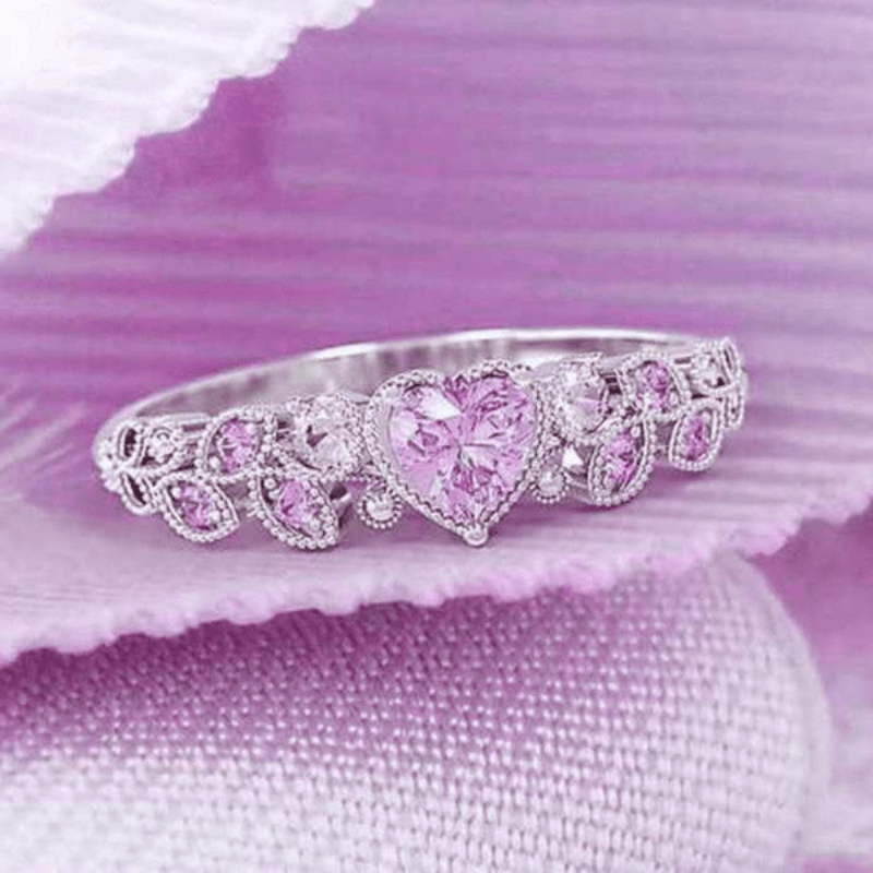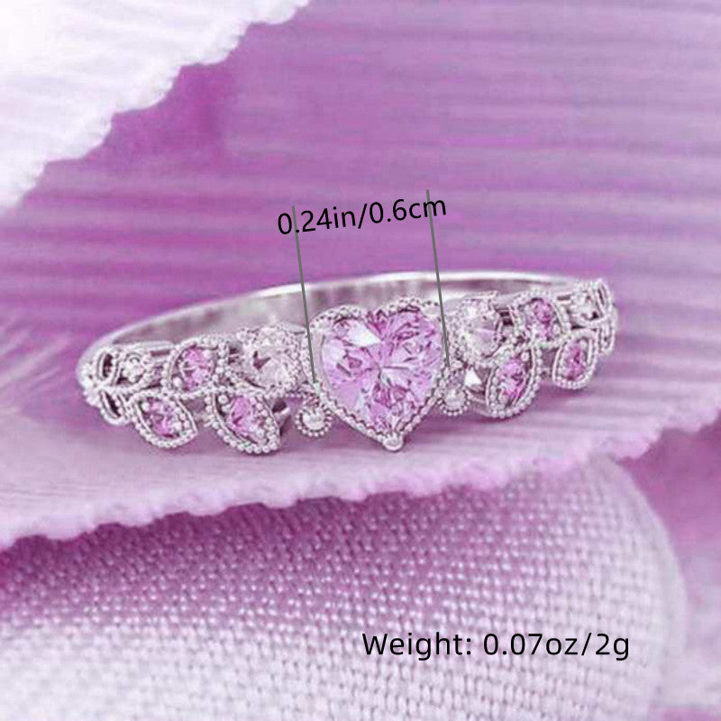 This elegant ring features a heart-shaped zircon stone inlaid with shining leaves. Perfect for evening parties or as a birthday or holiday gift for your special someone.