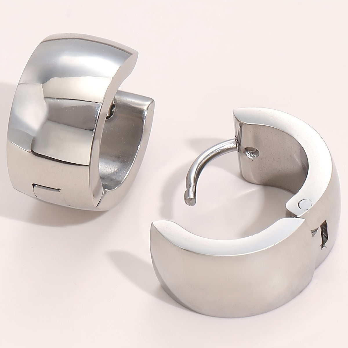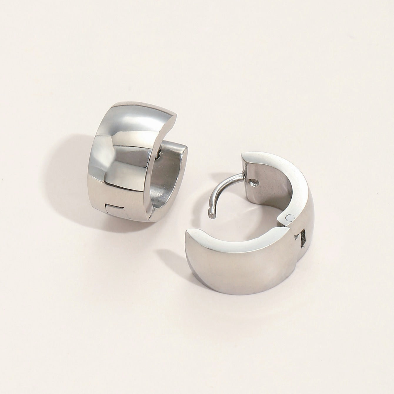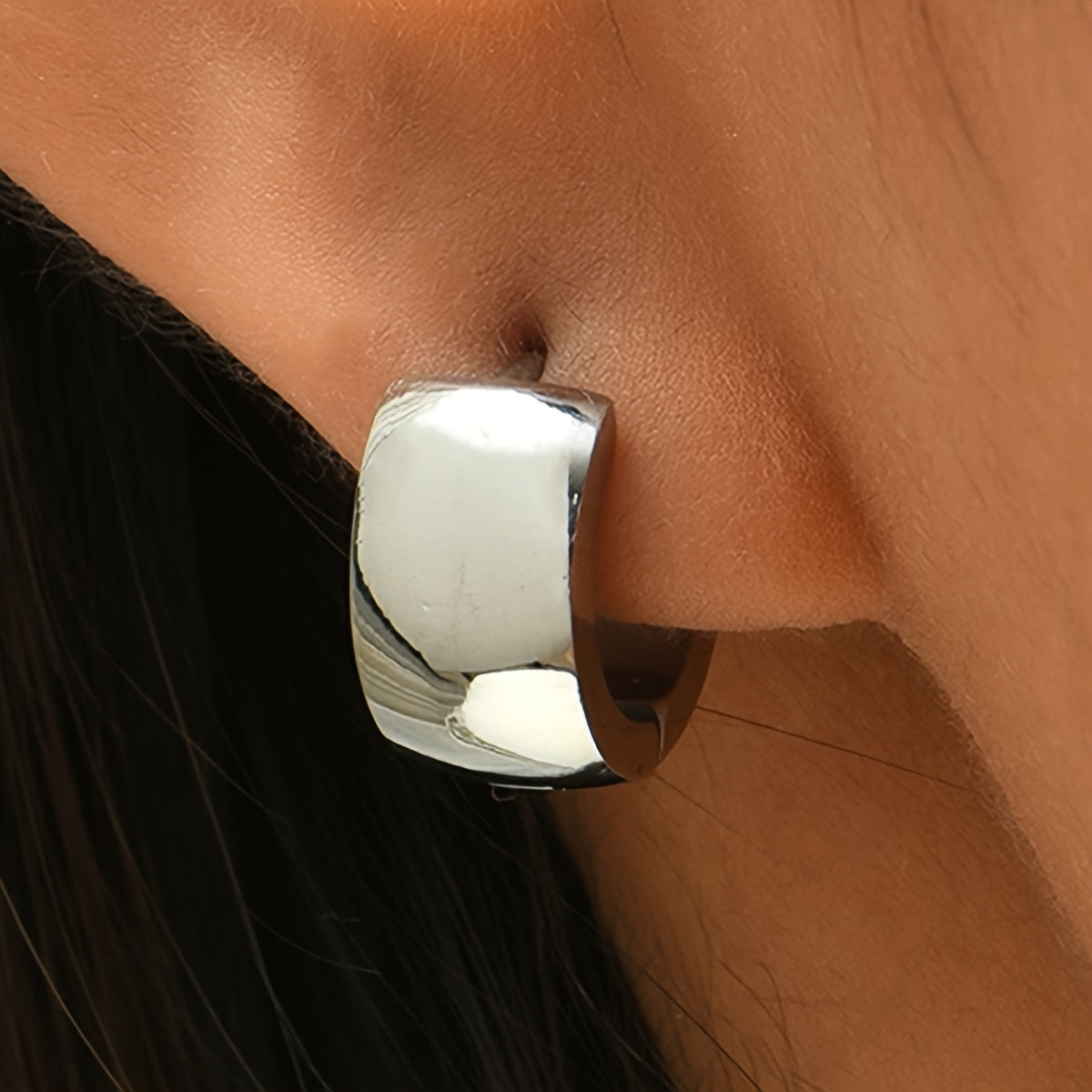 These stylish hoop huggie earrings are crafted from stainless steel and silver plated. They are perfect for adding a touch of elegance to any outfit.