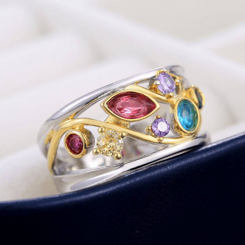 This elegant promise ring features inlaid zircons, perfect for engagements, weddings, or evening parties.
