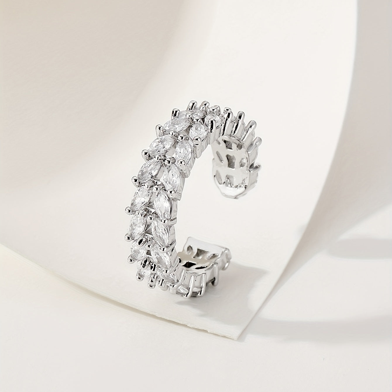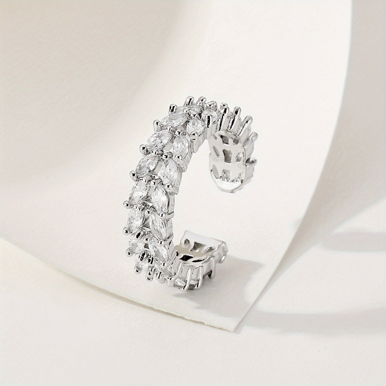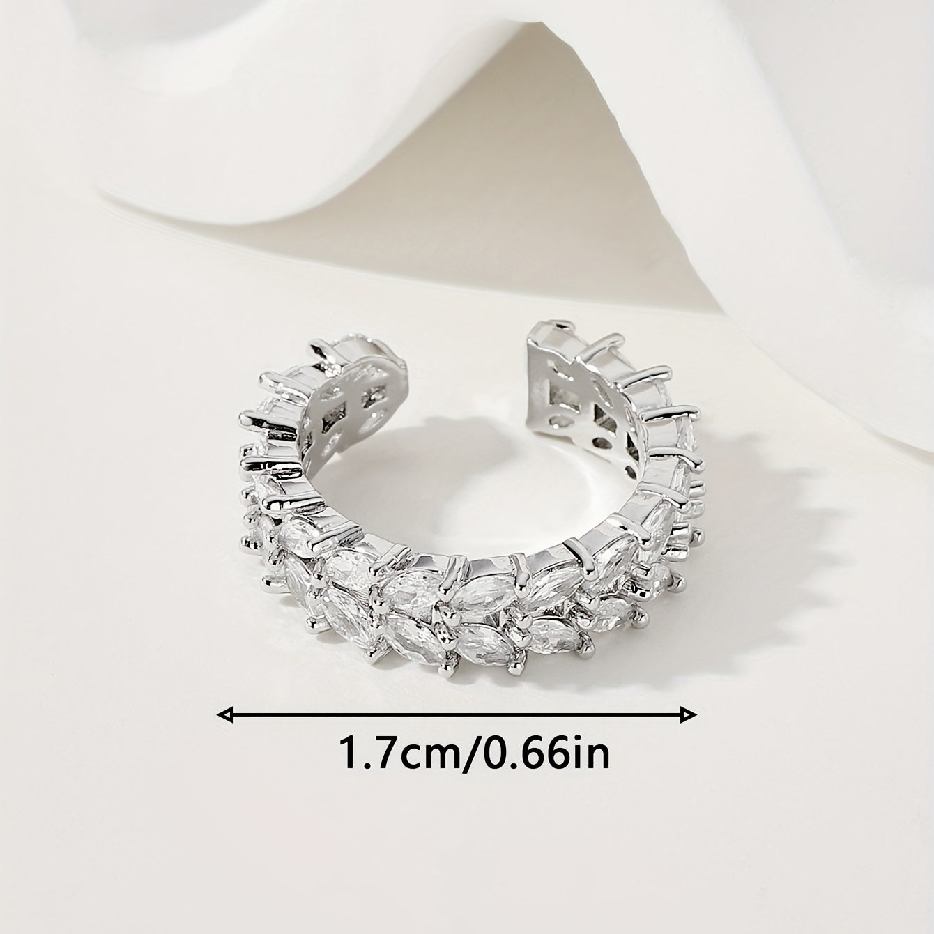 Enhance your daily outfits with this stunning silver plated cuff ring featuring double rows of shining zircon. Perfect for parties and makes a great gift for girls.