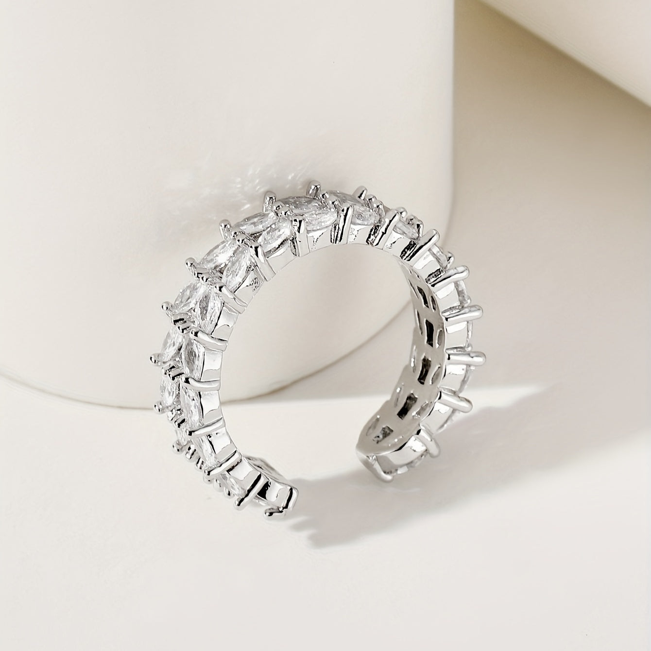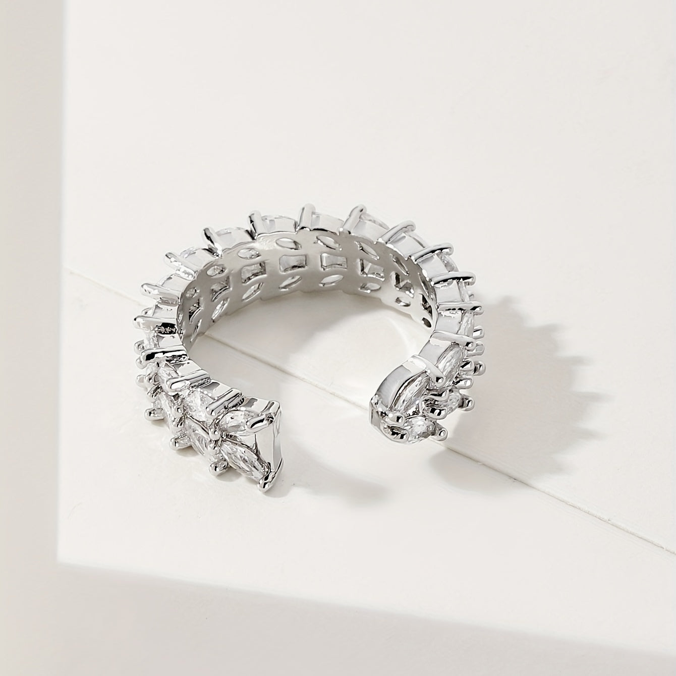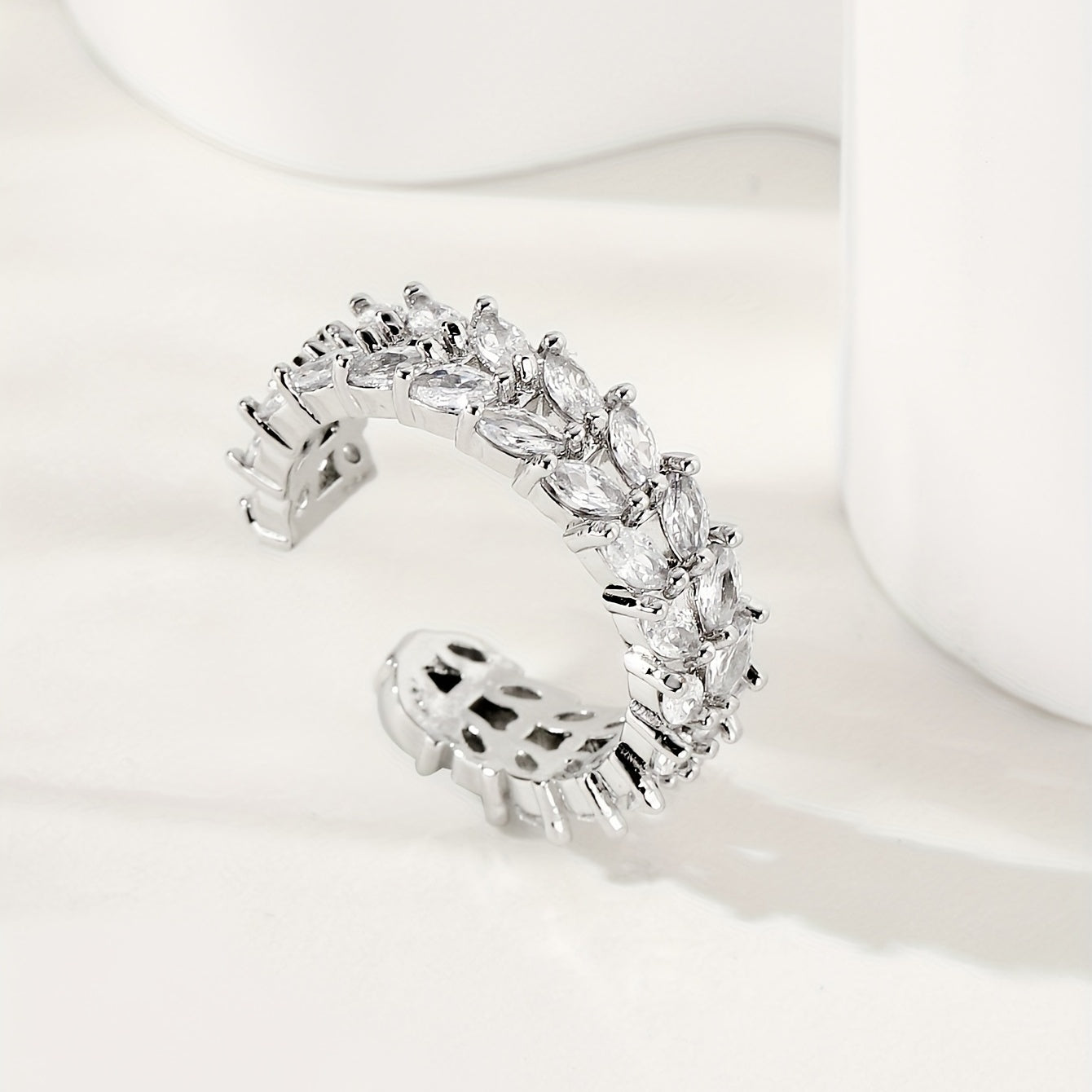 Enhance your daily outfits with this stunning silver plated cuff ring featuring double rows of shining zircon. Perfect for parties and makes a great gift for girls.