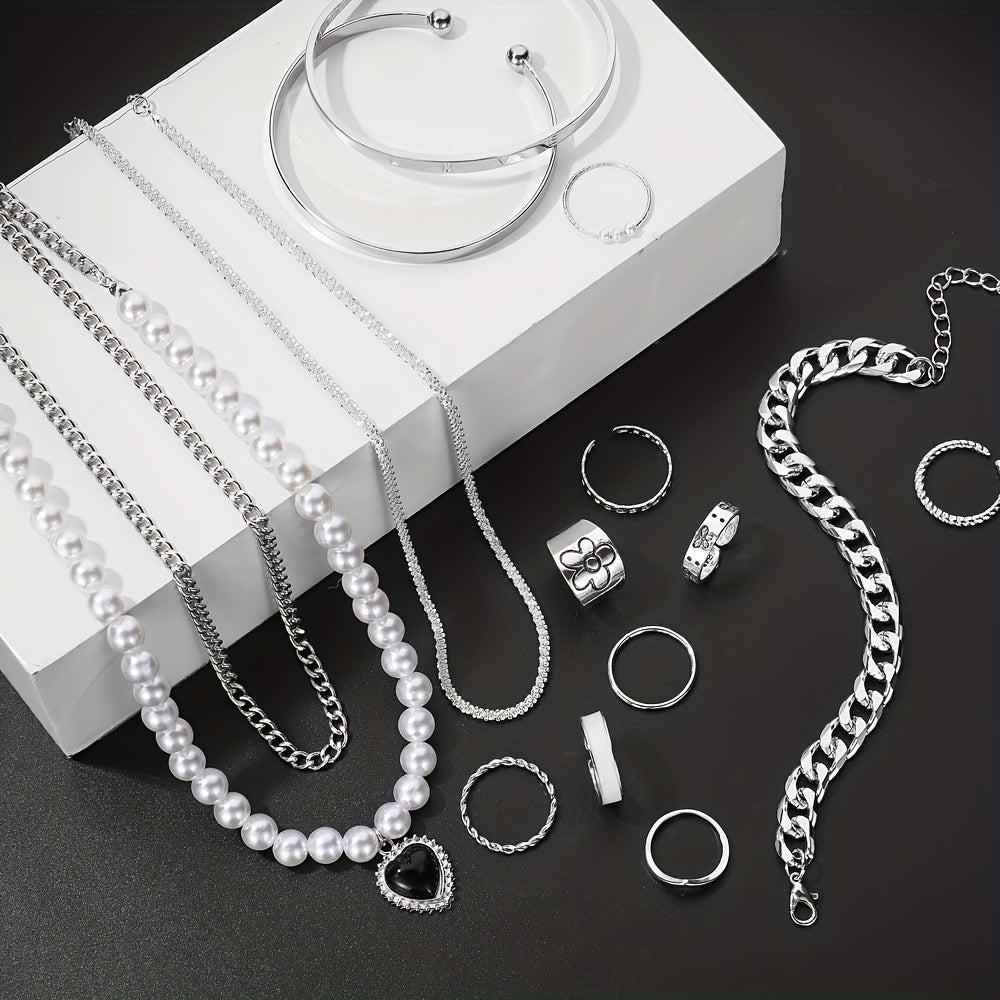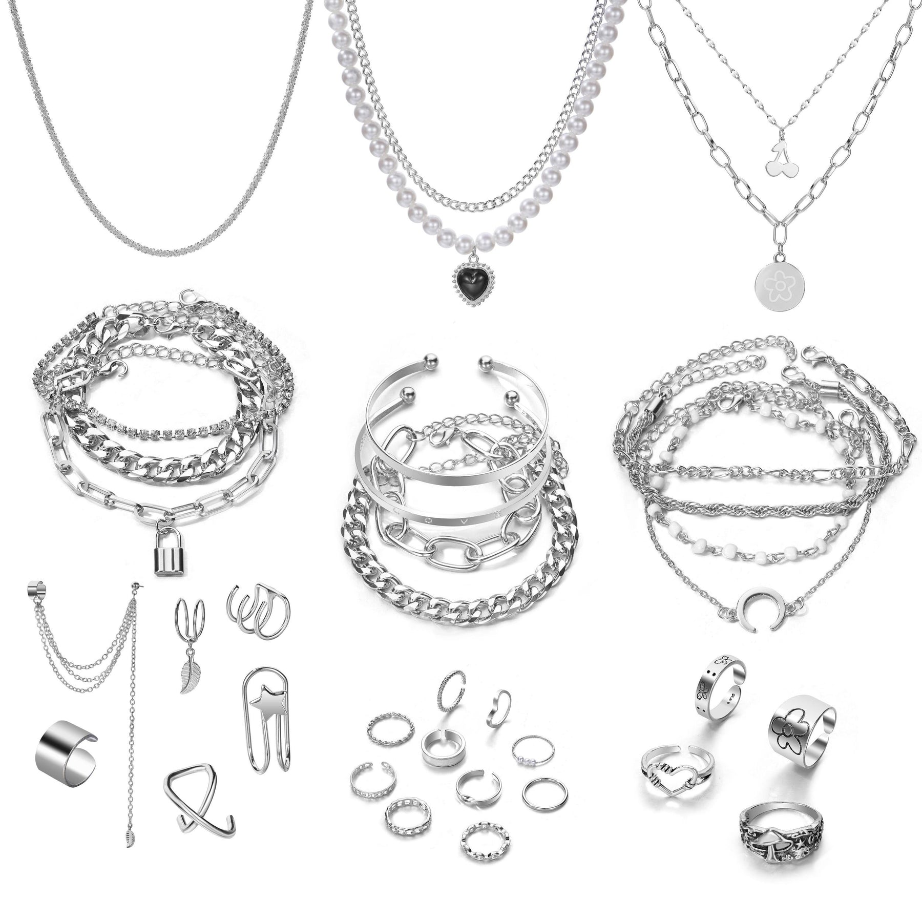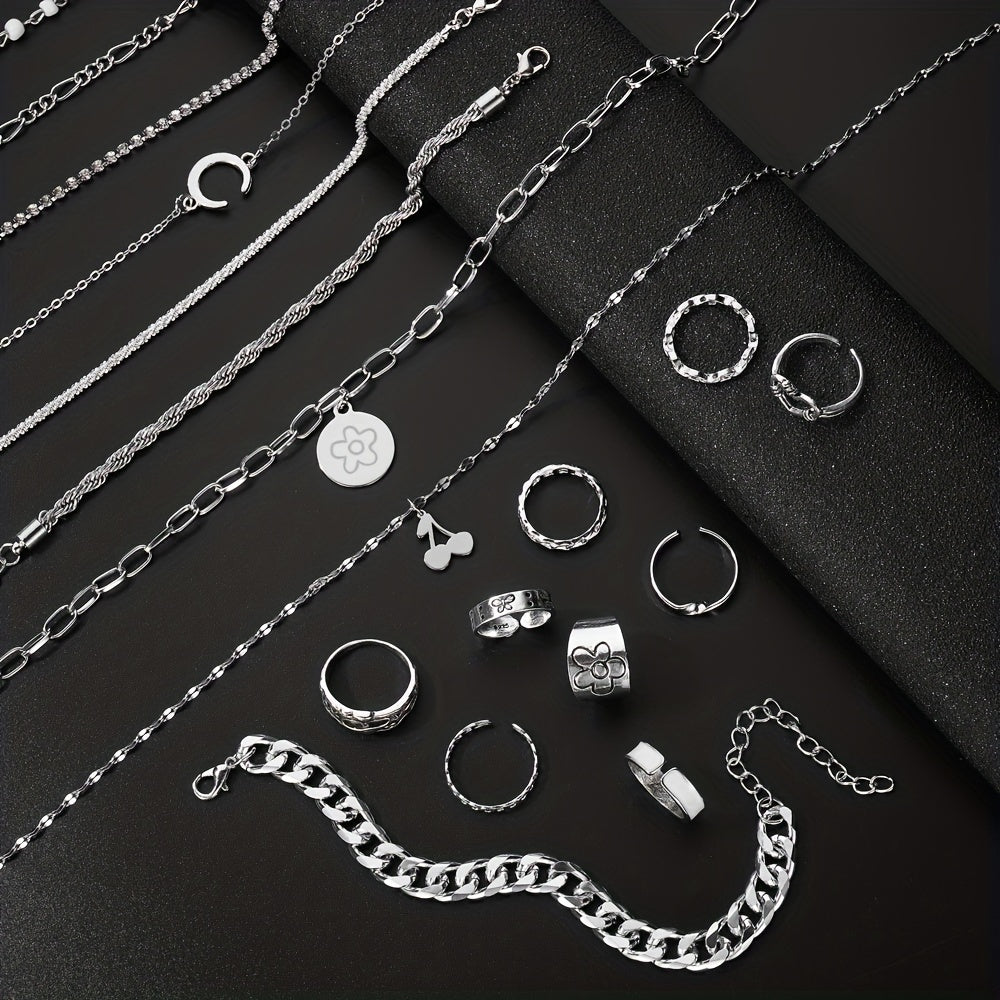 Enhance your outfit with this bold and stylish silver punk style jewelry set. Perfect for parties, vacations, and travel.