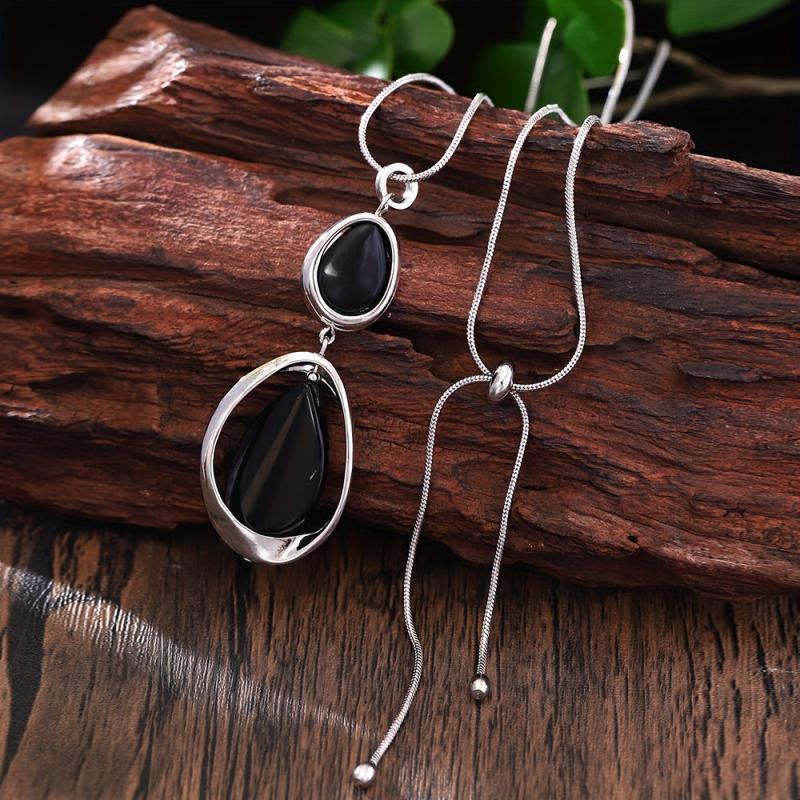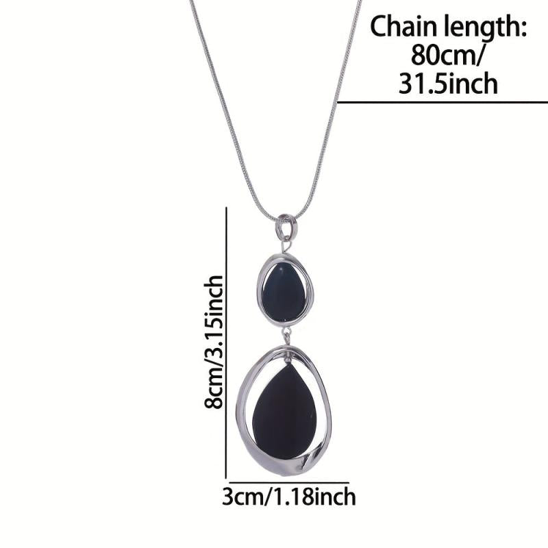 Elevate your spring and summer style with this stunning long pendant necklace featuring a stone geometric design in silver.
