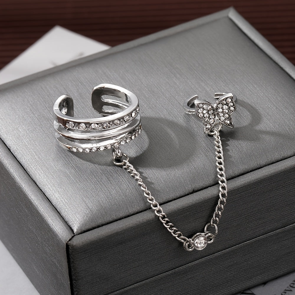 Add a touch of personality to your look with this unique butterfly tassel ring embellished with rhinestones. Perfect for women and girls who love stylish accessories.
