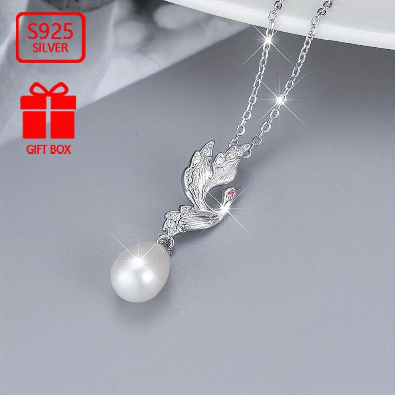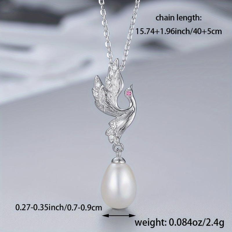Elegant and sophisticated pearl pendant necklace with a silvery phoenix design.