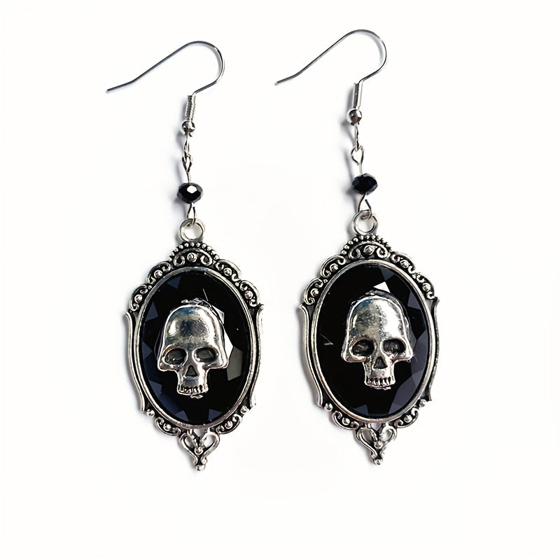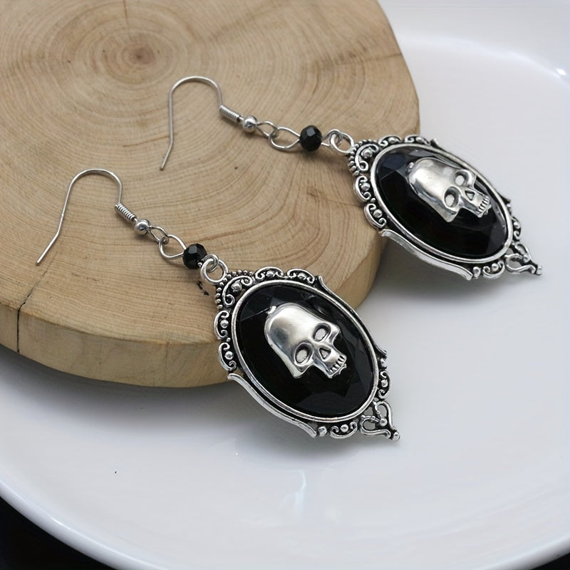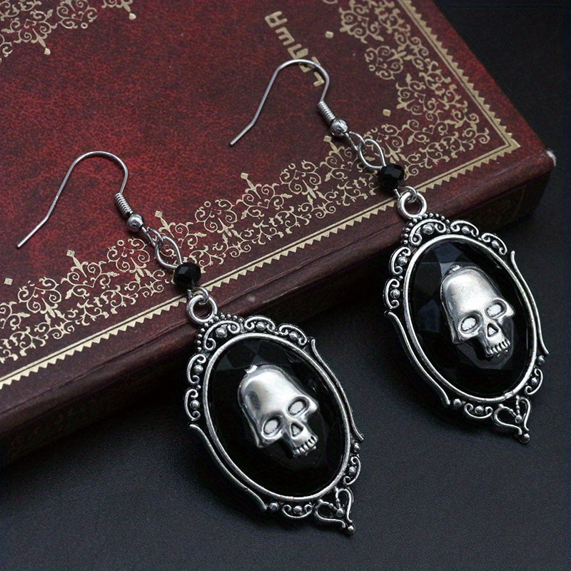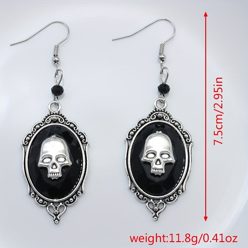Add a touch of hip hop style to your Halloween look with these oval shape dangle earrings featuring a skull pattern. Made of alloy, these earrings are perfect for adding an edgy vibe to your outfit.