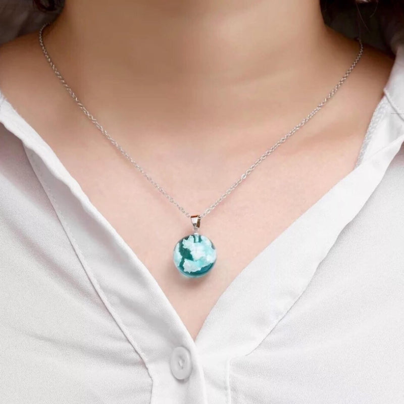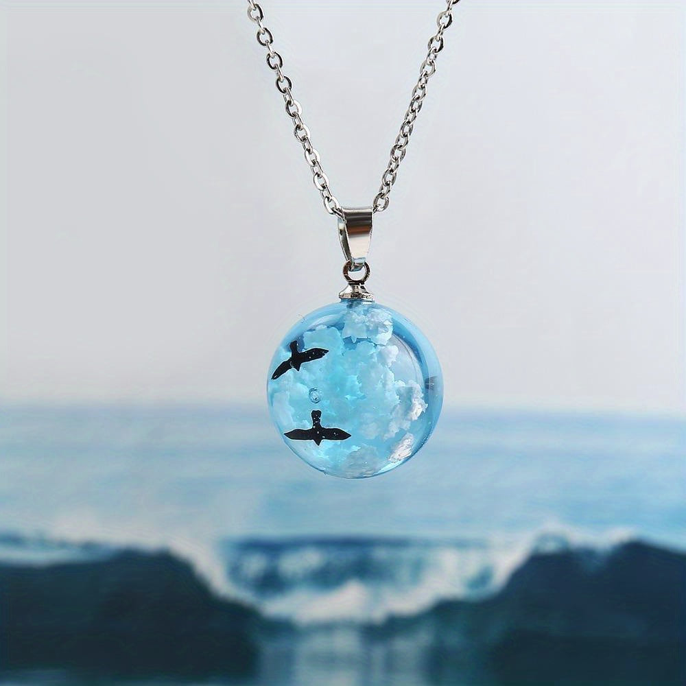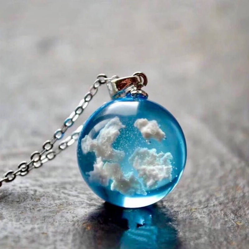 Embrace the beauty of the sky with this unique resin pendant necklace featuring a transparent ball shape design.