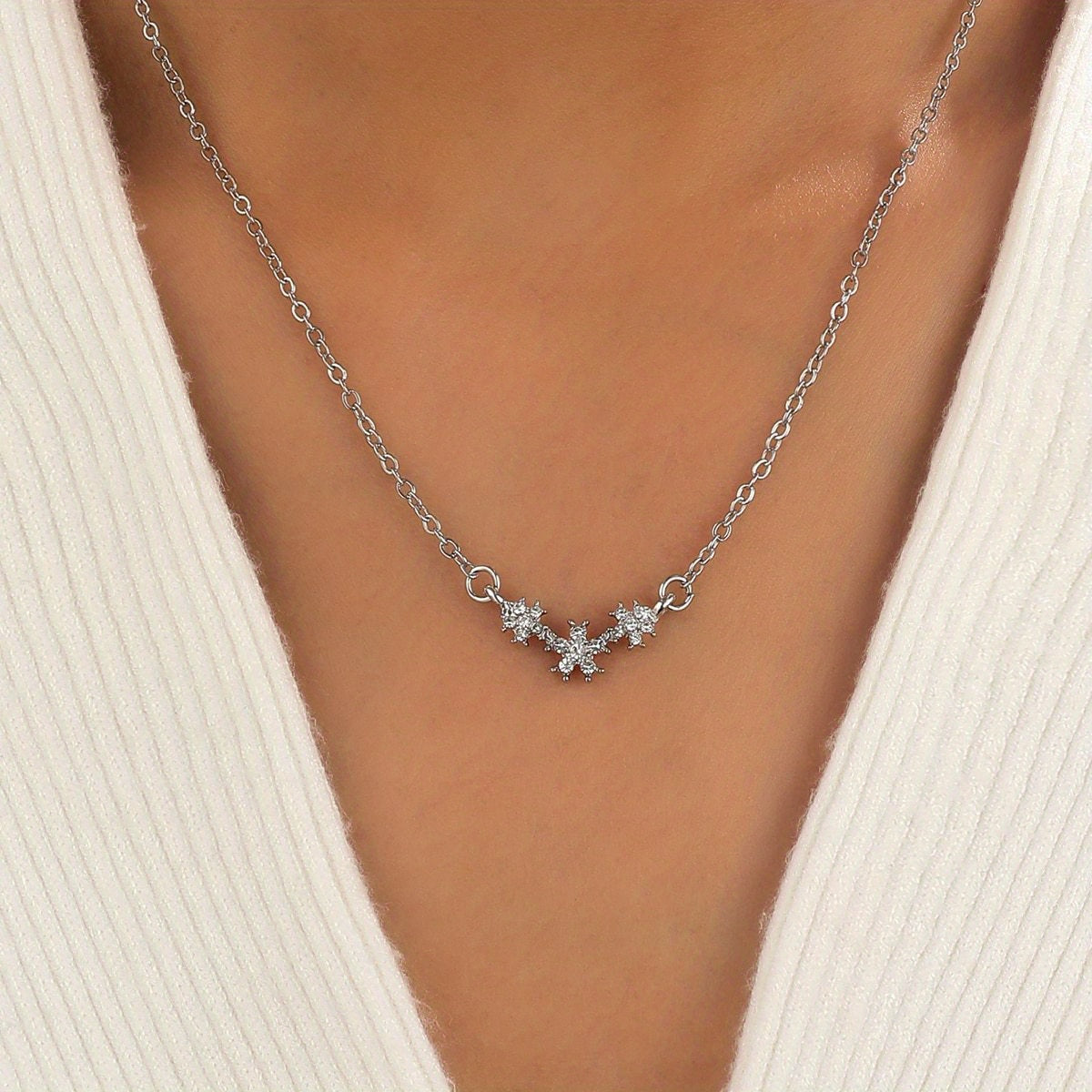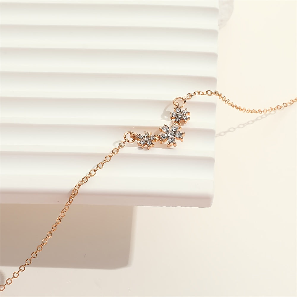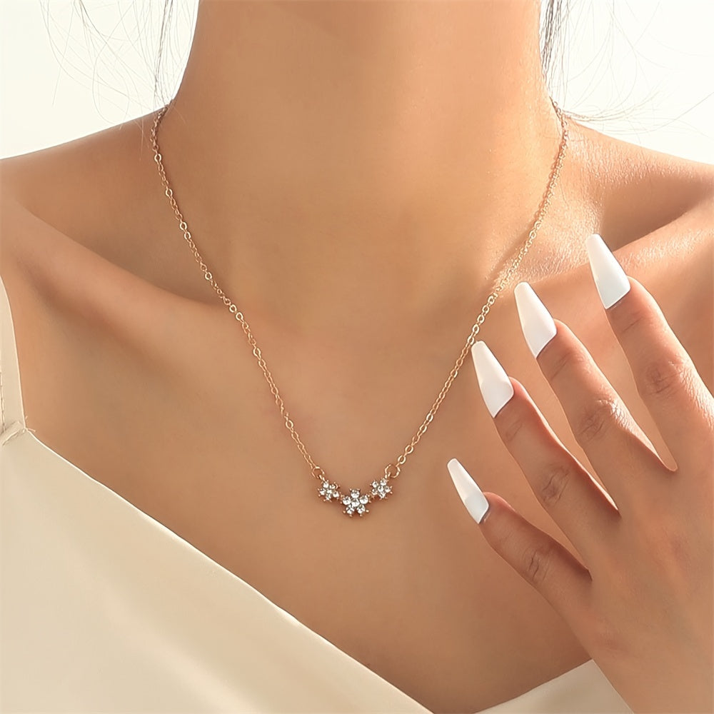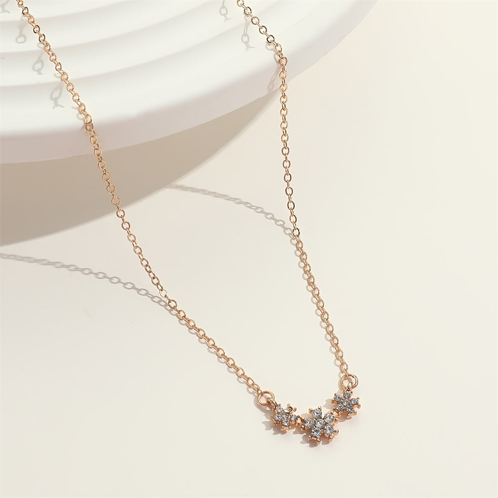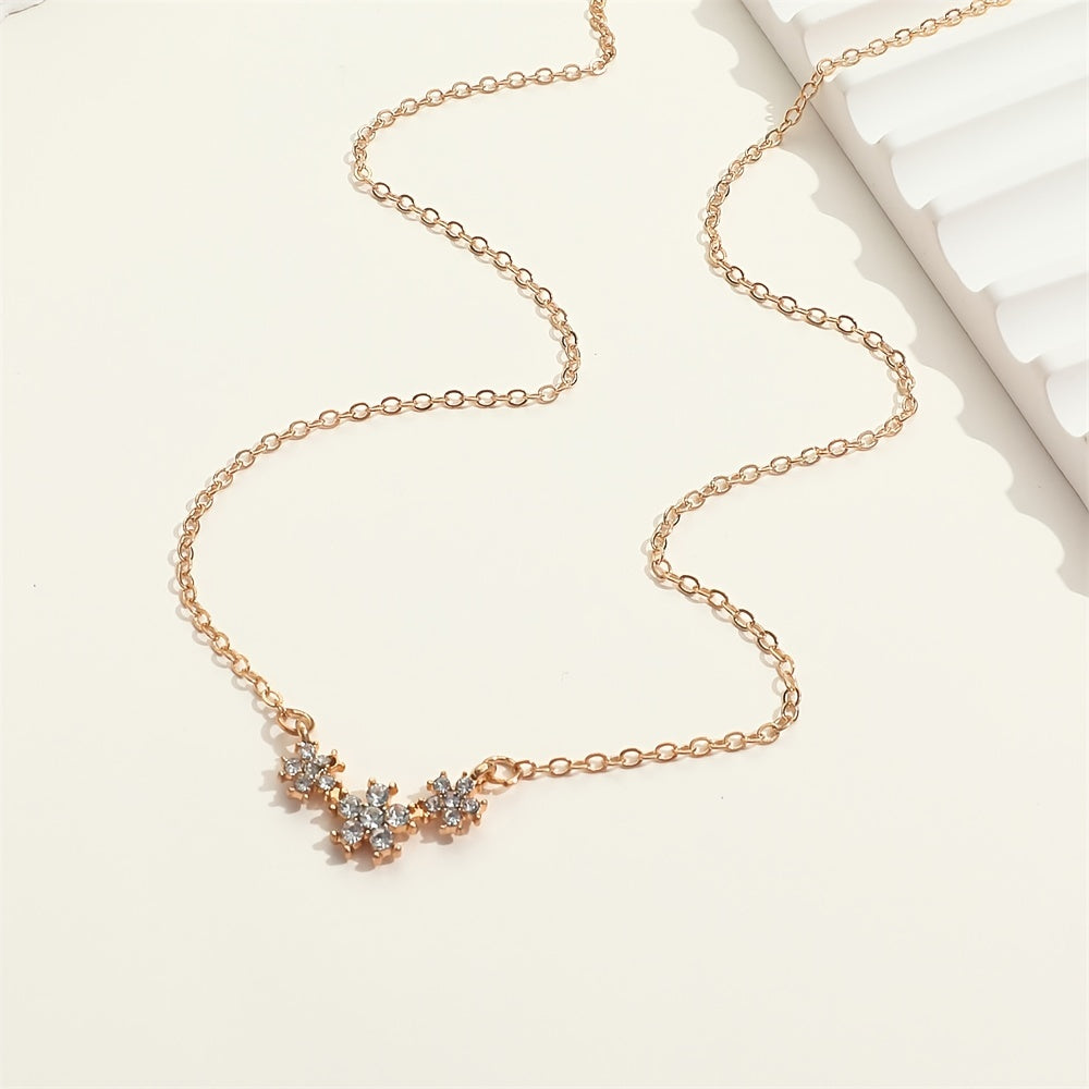 A delicate and charming necklace featuring small flower inlaid with sparkling rhinestones, perfect as a birthday or holiday gift for girls and women.