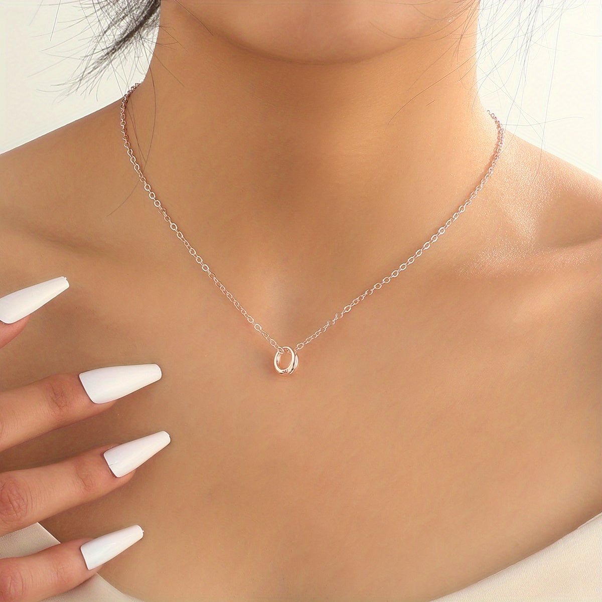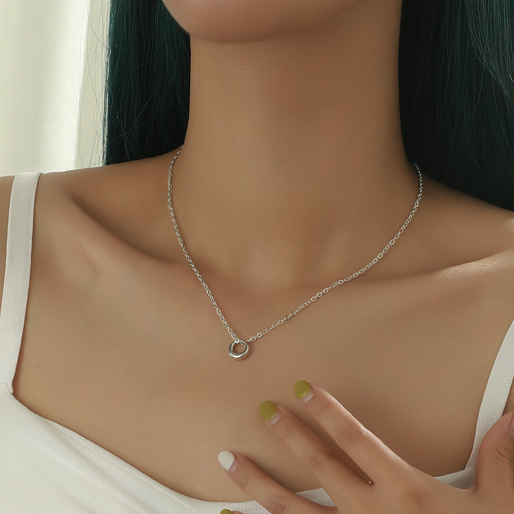 This classic pendant necklace features a small ring design in silver alloy, perfect for daily wear. Ideal for women, ladies, and girls.