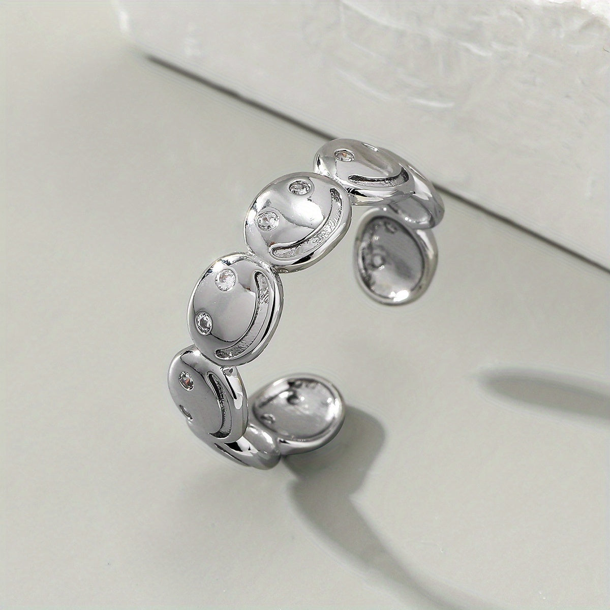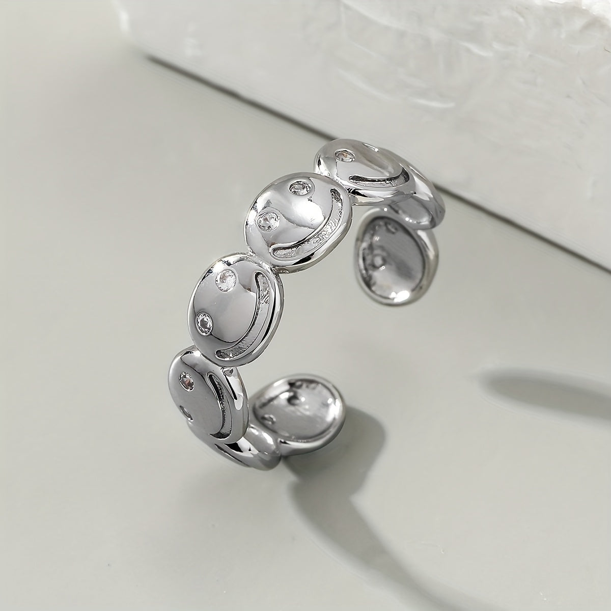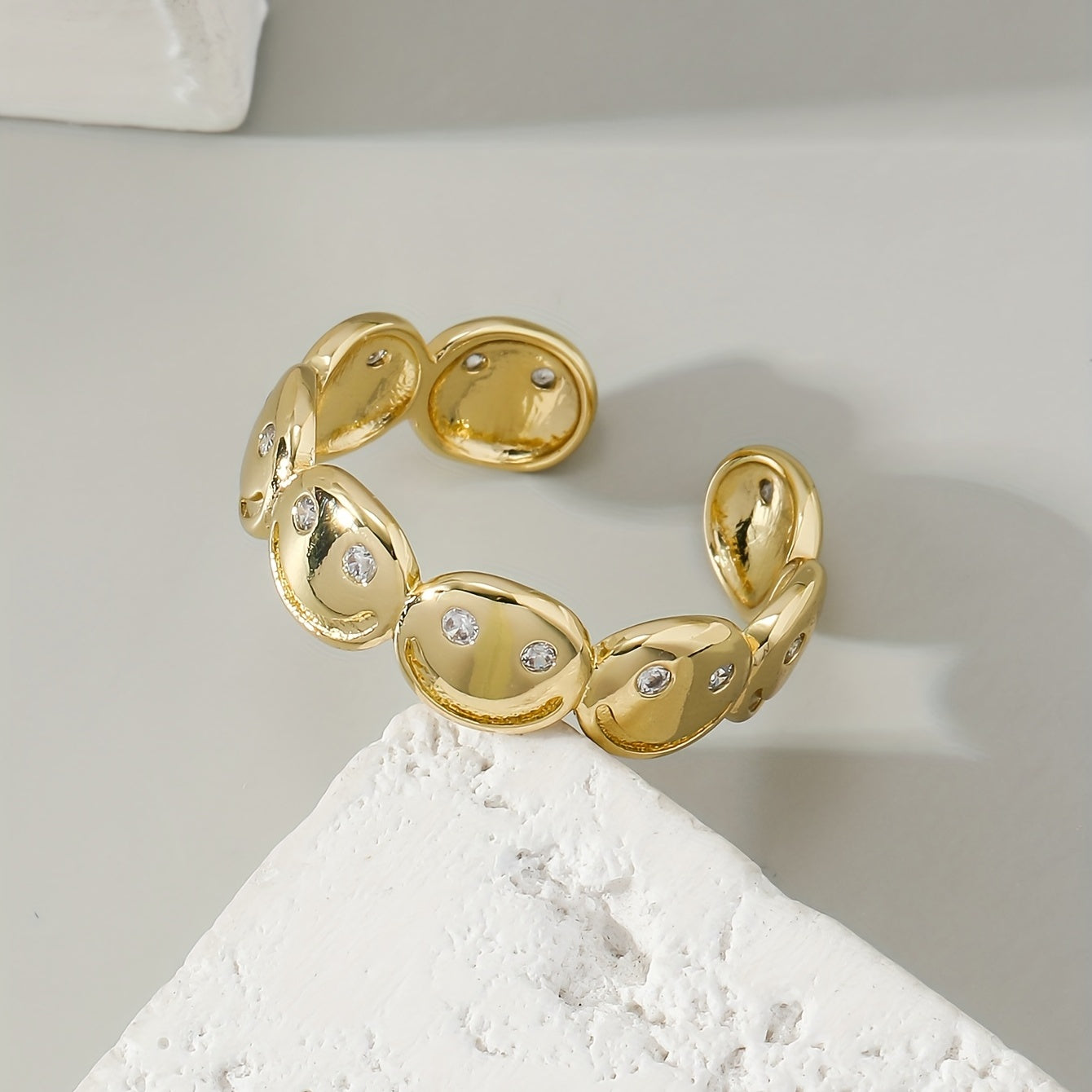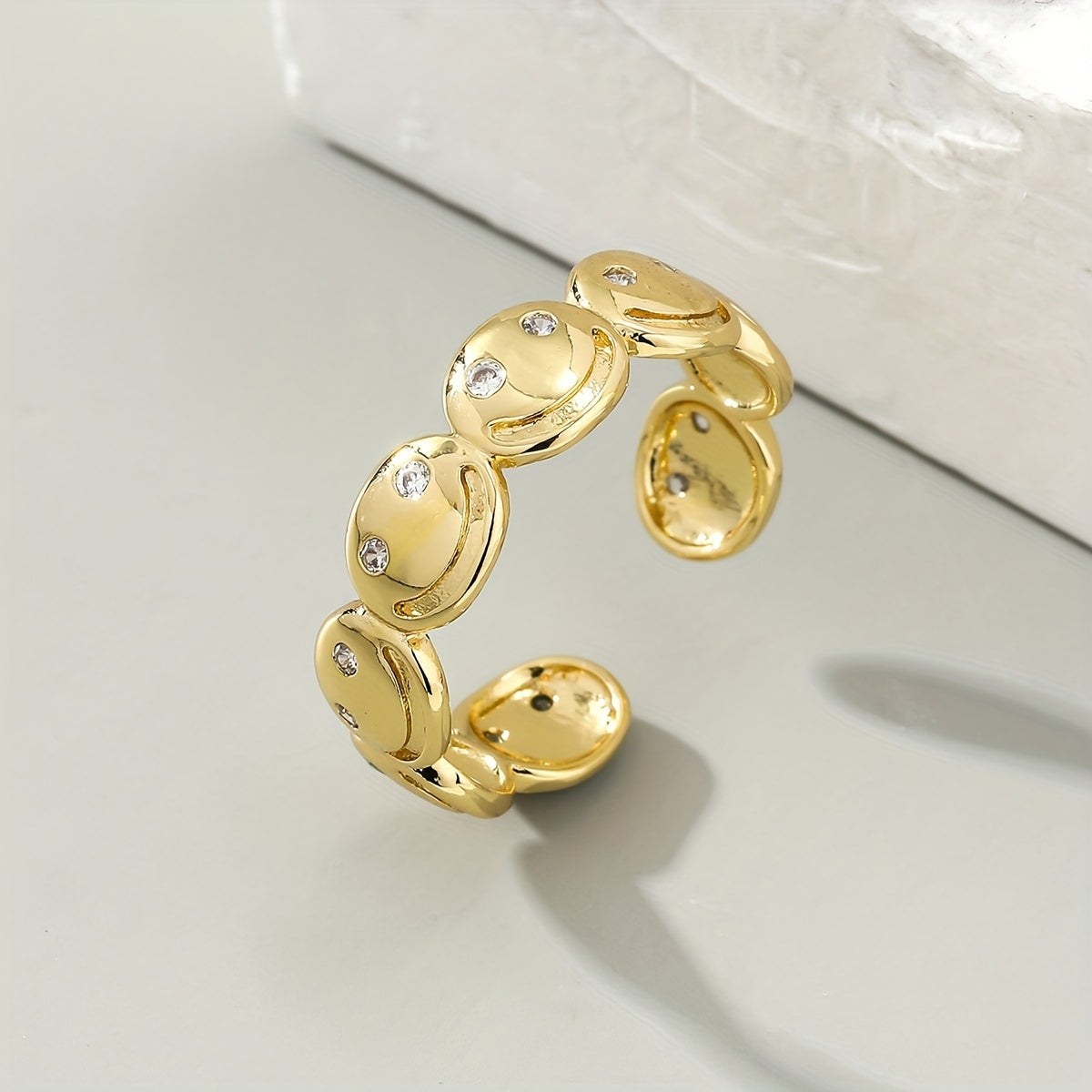This smile face cuff ring is a dainty accessory perfect for daily outfits or parties. It is plated with 14k gold and inlaid with zircon. A great Christmas gift for teens.