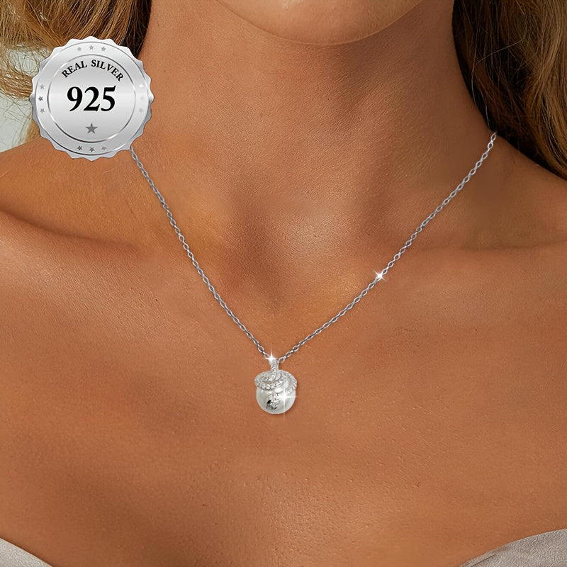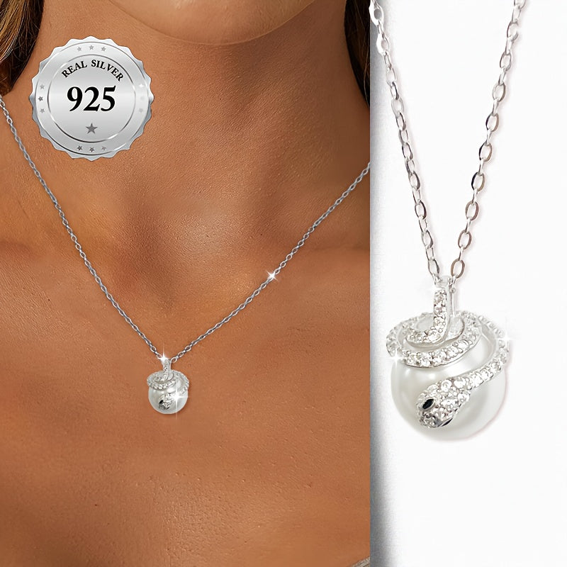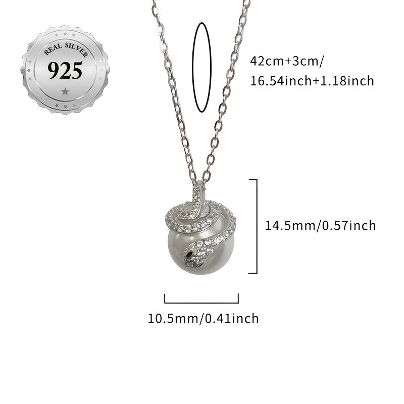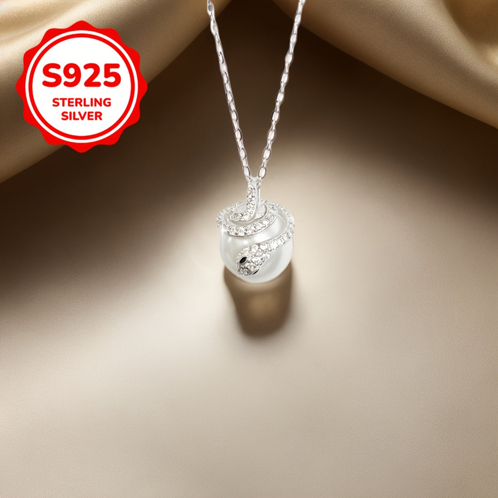 This versatile necklace is made of hypoallergenic 925 sterling silver adorned with cubic zirconia and shell pearls, perfect for parties.