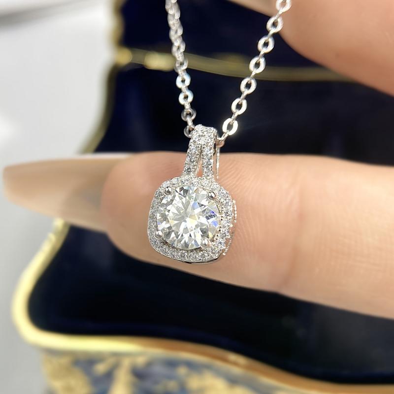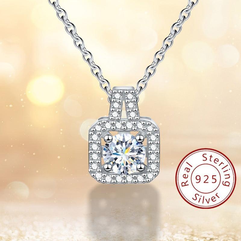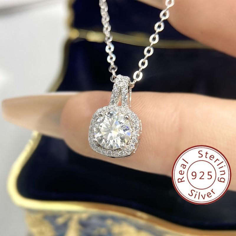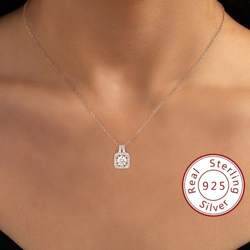 This elegant moissanite necklace is a perfect accessory for women. Made of 925 sterling silver, it is suitable for weddings, promises, and as a gift for mothers.