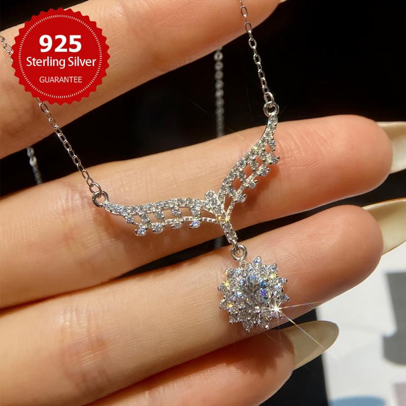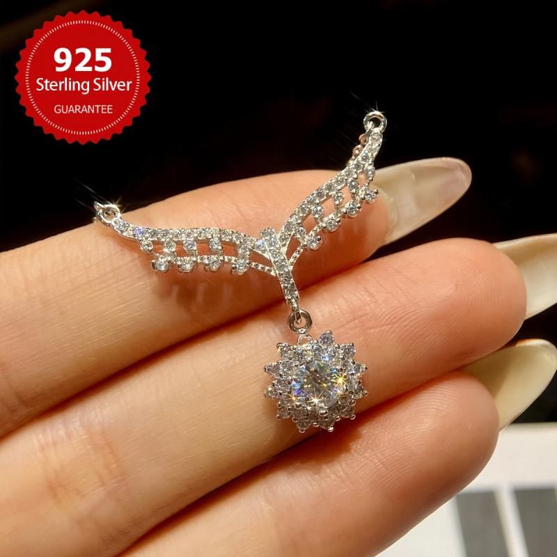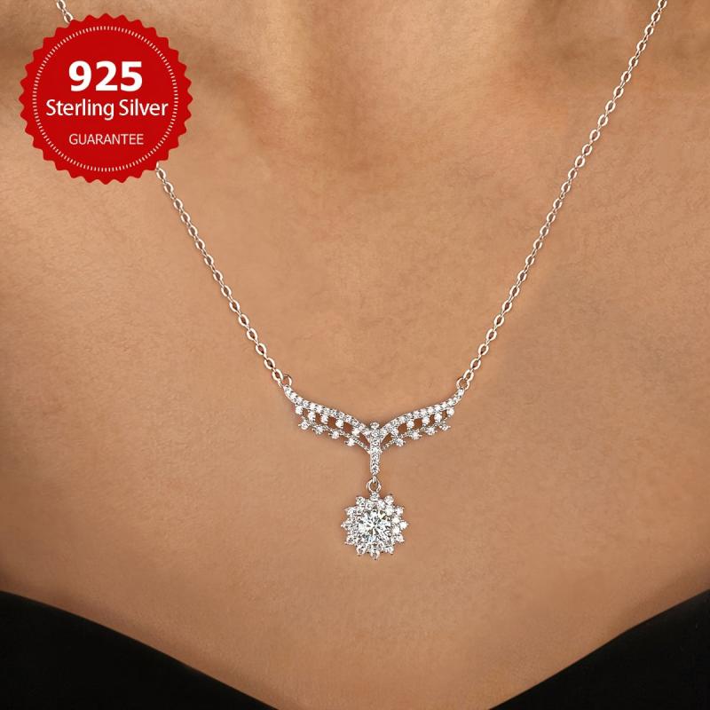 This elegant necklace features a 0.5CT Moissanite pendant set in 925 sterling silver, perfect for weddings or as a gift. The noble design adds a touch of sophistication to any outfit.