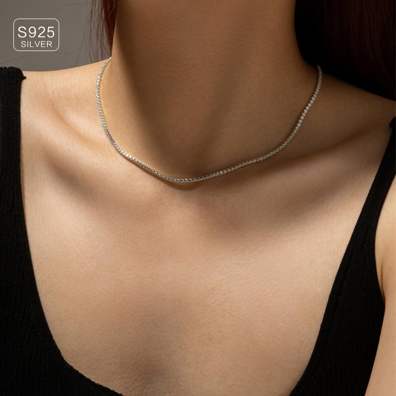 Add a touch of elegance with this silver necklace featuring synthetic zirconia stones. Perfect for everyday wear or special occasions.