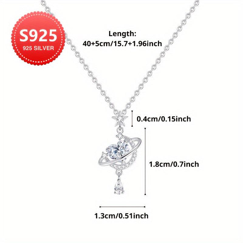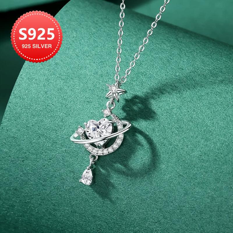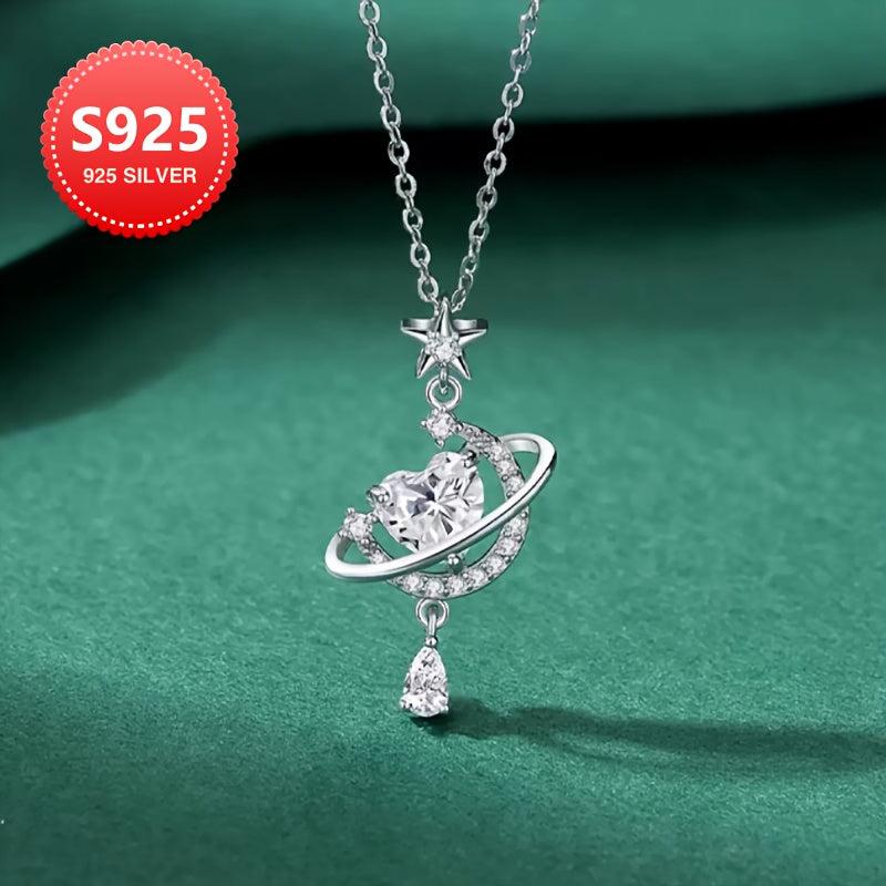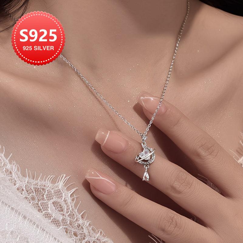 This stunning necklace features a sparkling cubic zirconia star and moon design in 925 sterling silver. Perfect for everyday wear or as a thoughtful gift for Mother's Day.