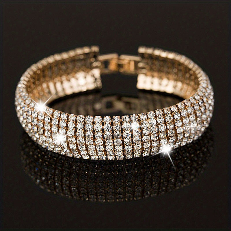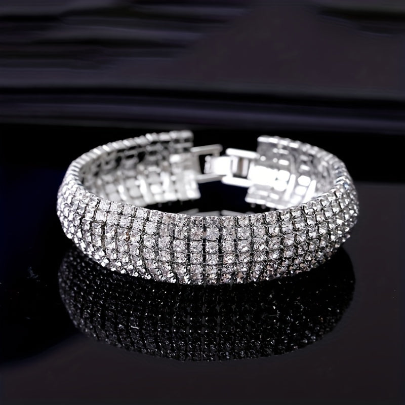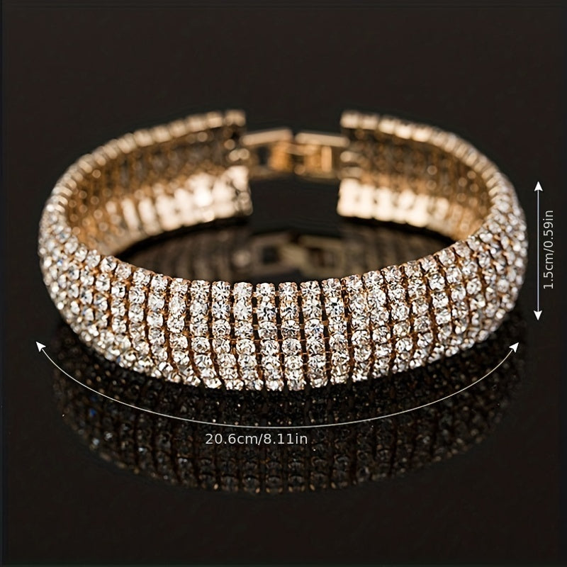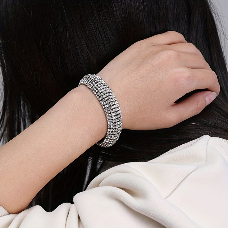 Add a touch of elegance to your look with this stunning rhinestone bracelet. Made from high-quality copper, this bracelet features a full sparkling curvature design that will add a glamorous touch to any outfit. It's a perfect gift for women and girls who love to accessorize with style.