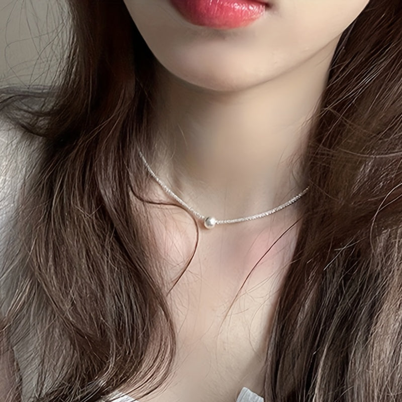 Elegant and chic, this bead necklace features sparkling starry design that adds a touch of glamour to any outfit. Made of silver plated metal, this necklace is perfect for women and girls.