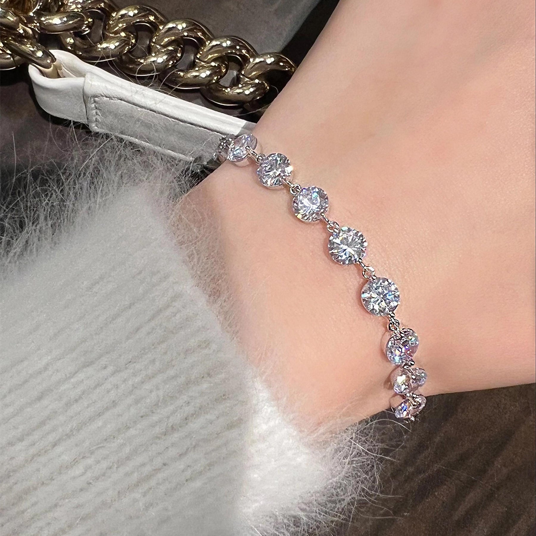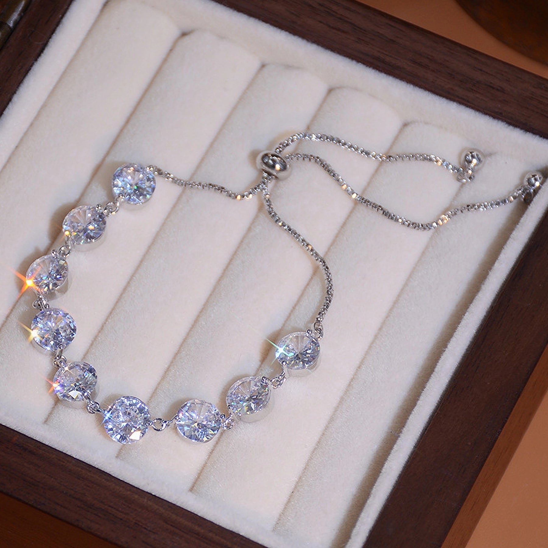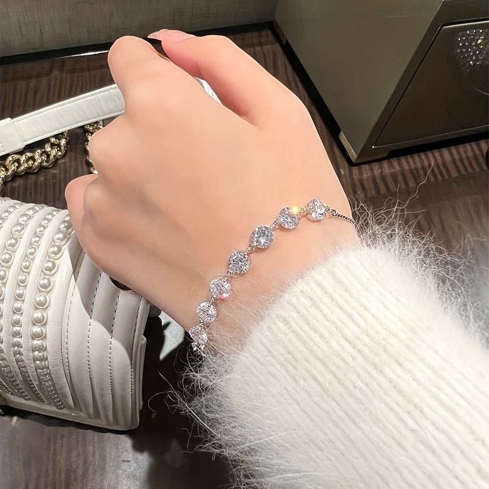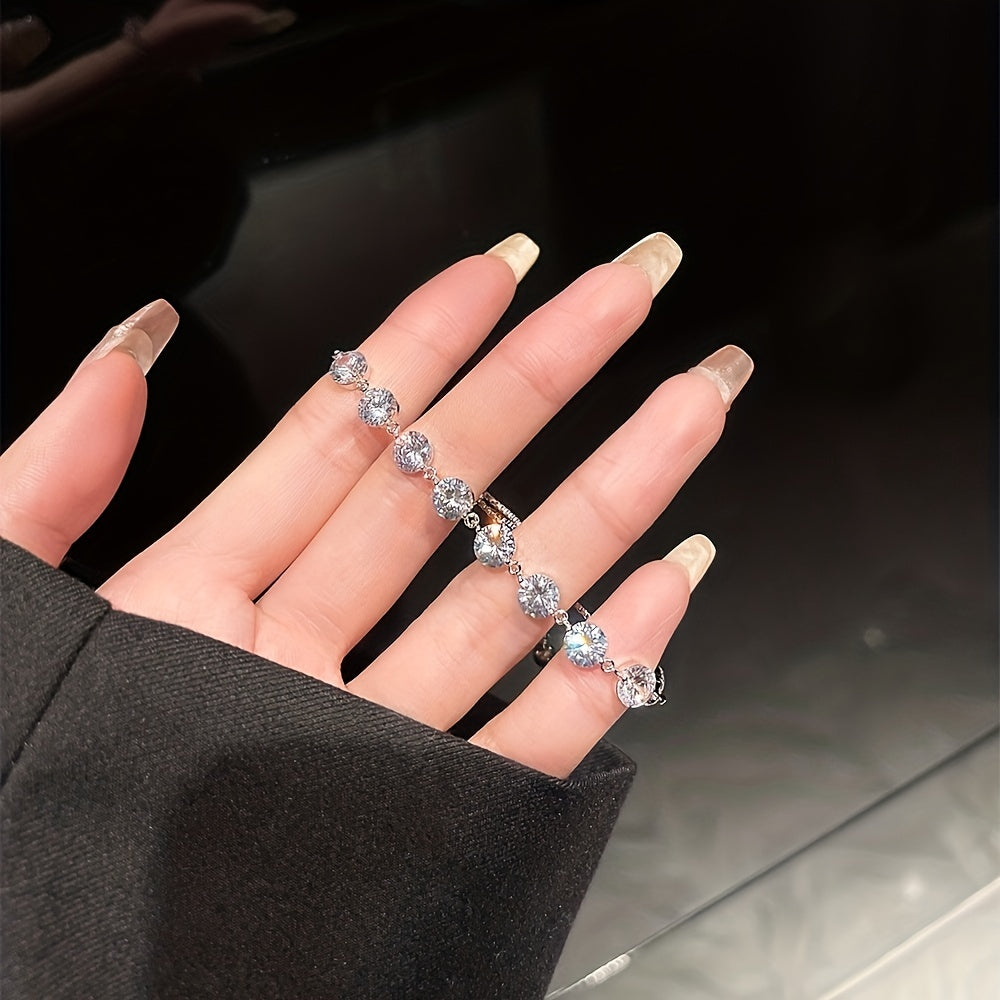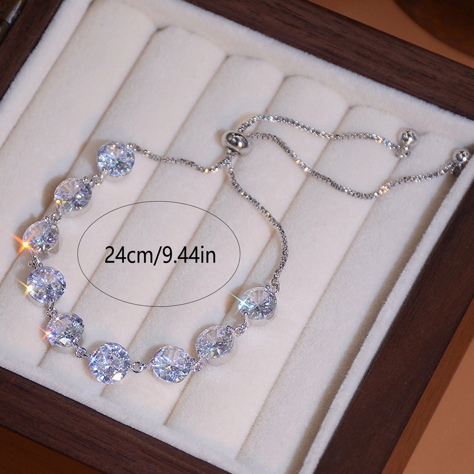 This exquisite bracelet features sparkling zircon stones set in a silver plated design. It is adjustable in size, making it a perfect accessory for any occasion.