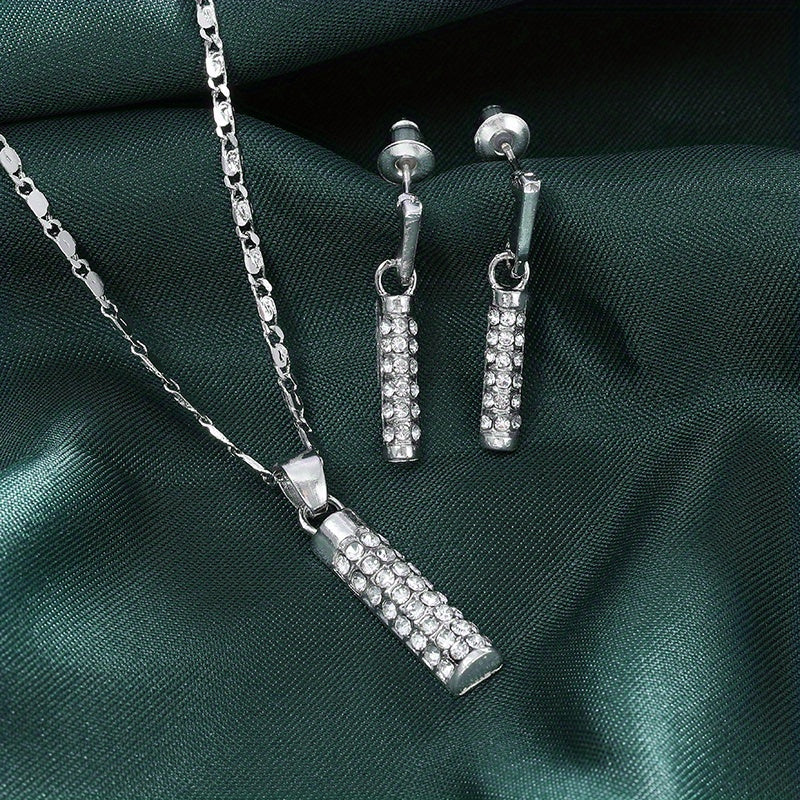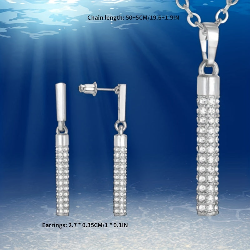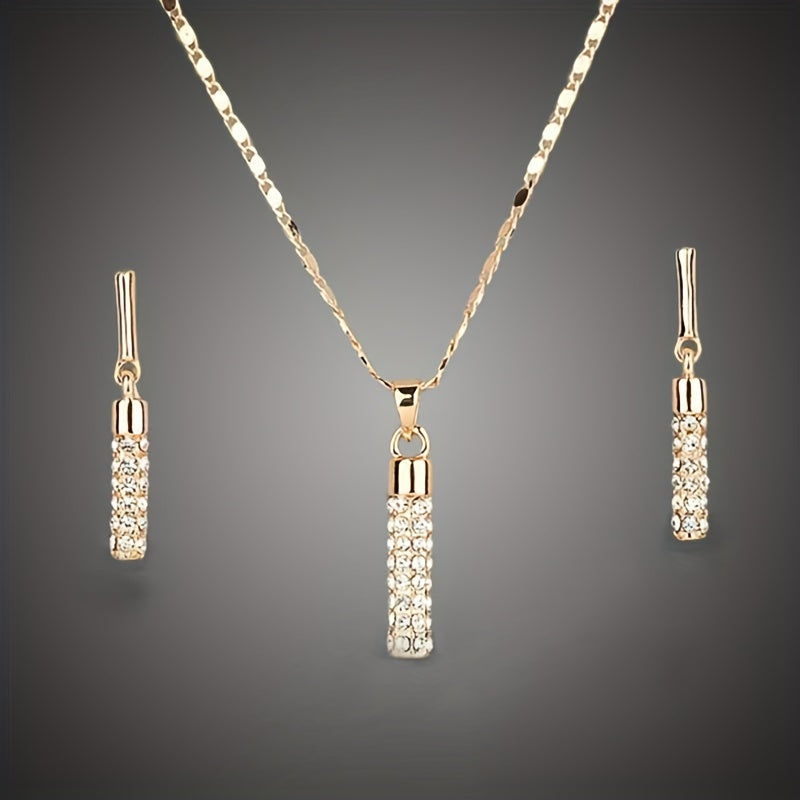 Elevate your style with this exquisite jewelry set featuring cylindrical rod zircon earrings and necklace. Made with high-quality materials and 14K gold plating, this set is a perfect accessory for any occasion.