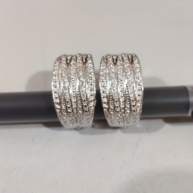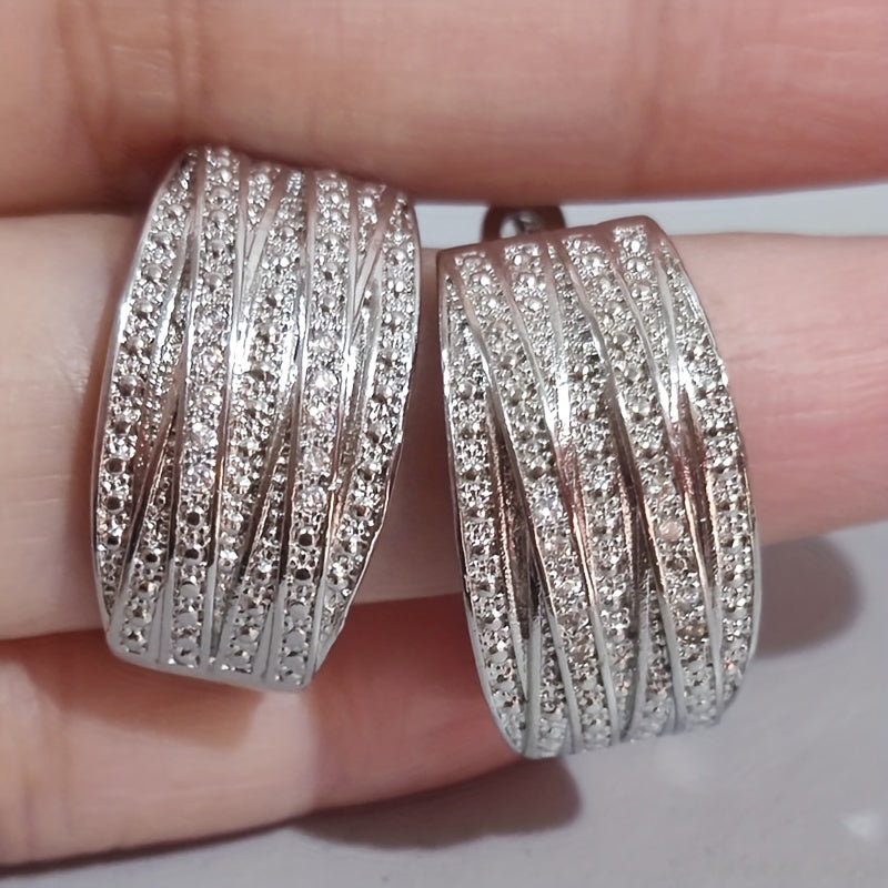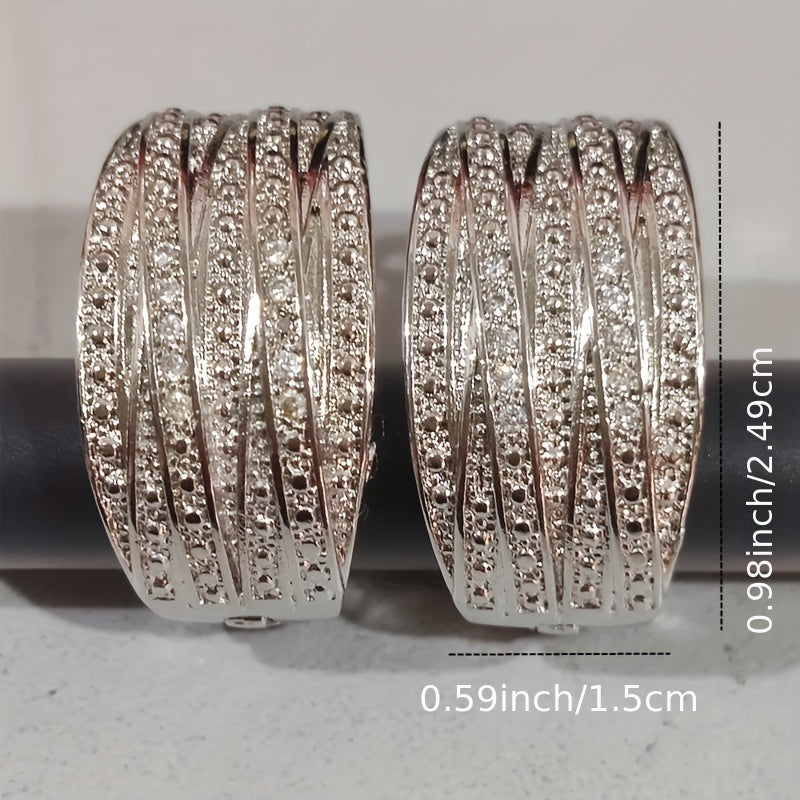 These elegant hoop earrings are adorned with sparkling zircon stones and feature a retro style design. Made from silver-plated alloy, they make a perfect gift for any occasion.