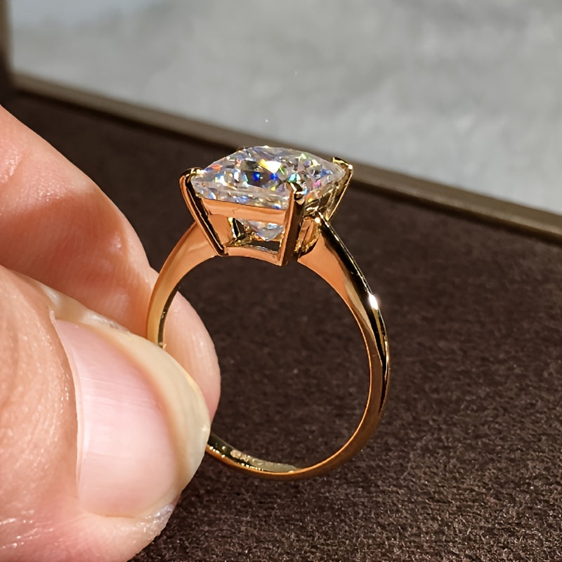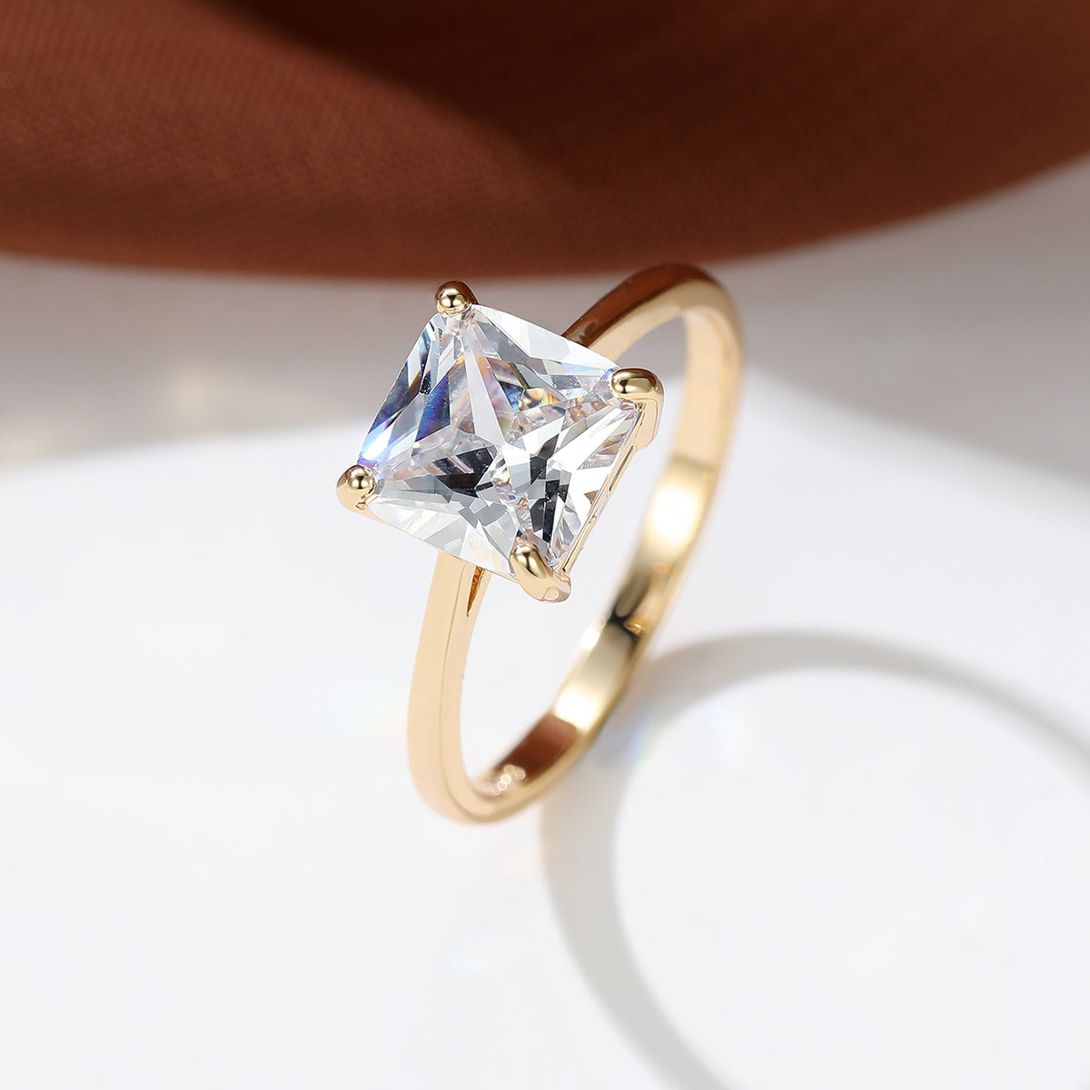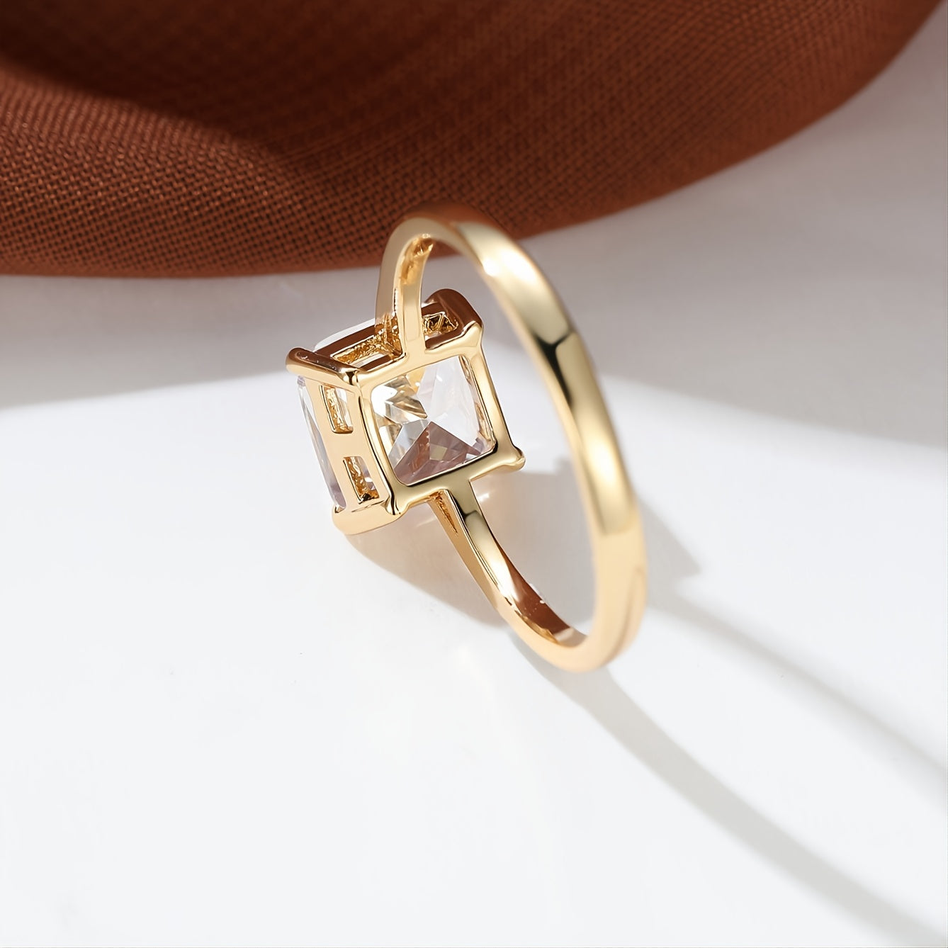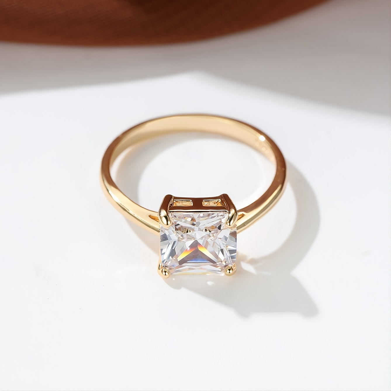 This stunning cubic zirconia ring features a square zircon set in 18K plated metal, perfect for weddings and anniversaries. A beautiful gift for her.