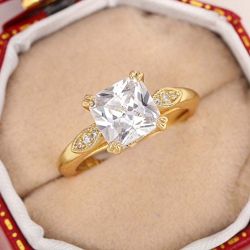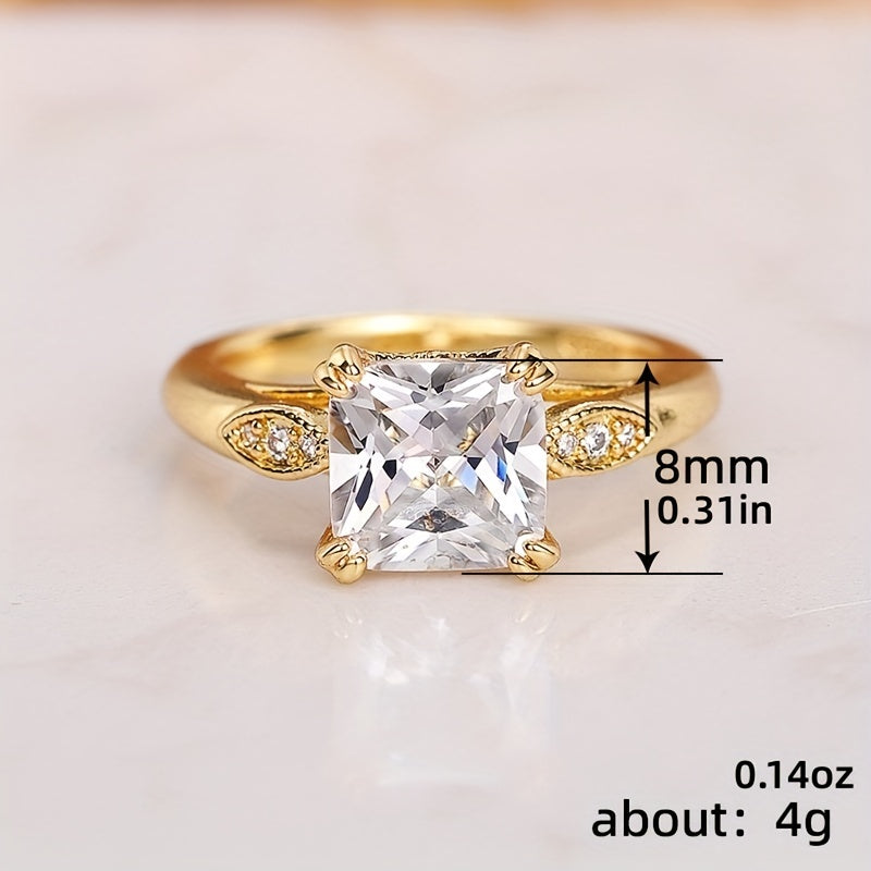 This stunning ring features square zircon inlays that make it perfect for evening parties or cocktail events. It's a dainty and elegant piece that will be a great gift for your loved one on their anniversary or birthday.