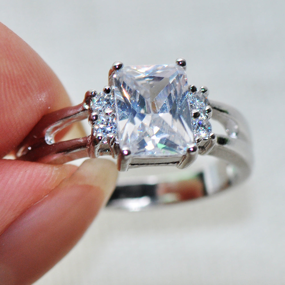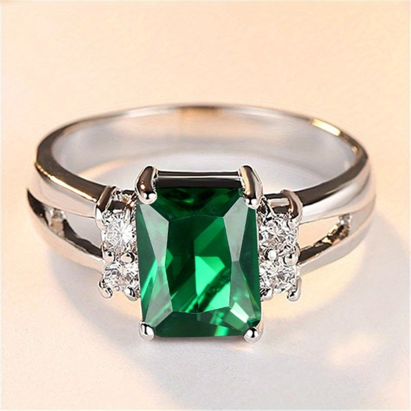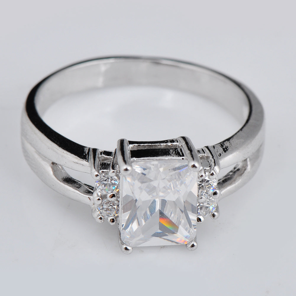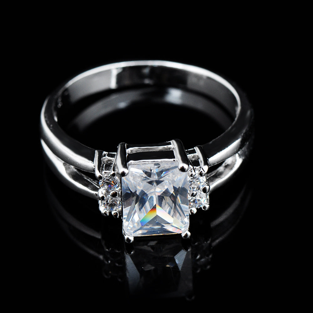 Celebrate your love with this stunning promise ring plated with 18k gold. Features a square zircon inlaid design, perfect for engagements, weddings, anniversaries, or birthdays.