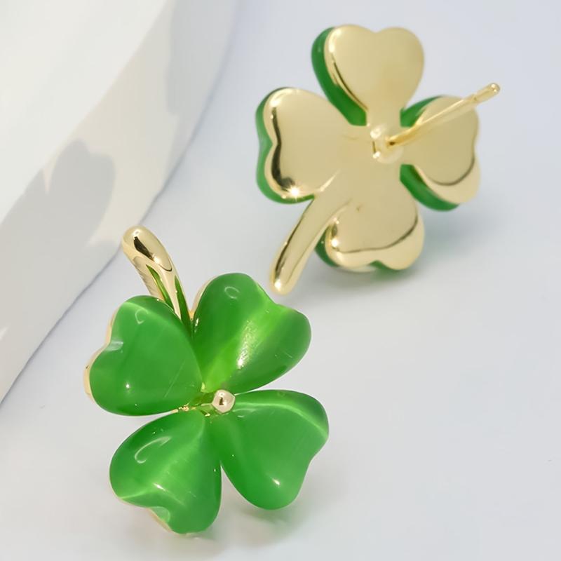Add a touch of luck to your outfit with these beautiful opal stud earrings. The green clover design is perfect for celebrating St. Patrick's Day or adding a pop of color to any look.