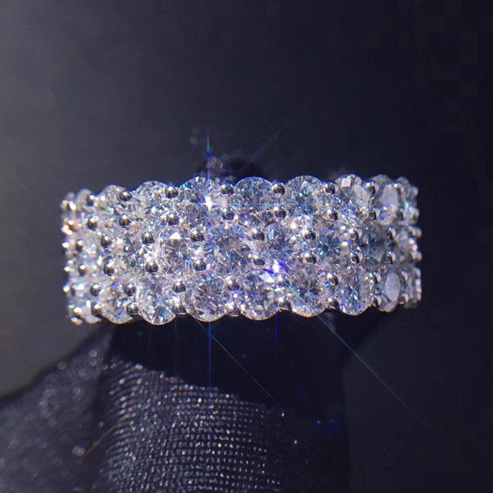 This ultra bright ring features three layers of stacked zircon inlaid design, making it a perfect gift.