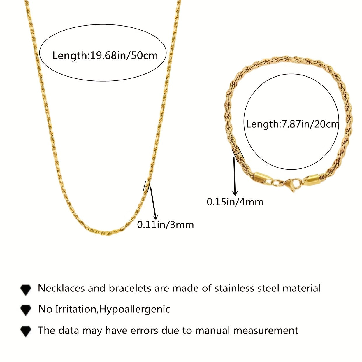 This 2-piece set includes a necklace and bracelet made of stainless steel with 18k plating. The braid design adds an elegant touch to your look, perfect for daily wear or special occasions.