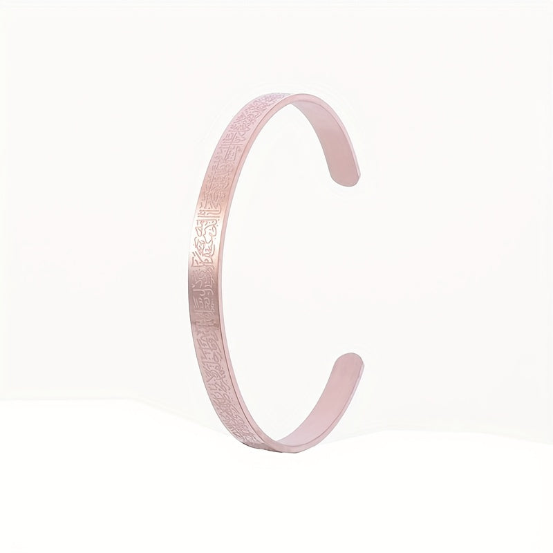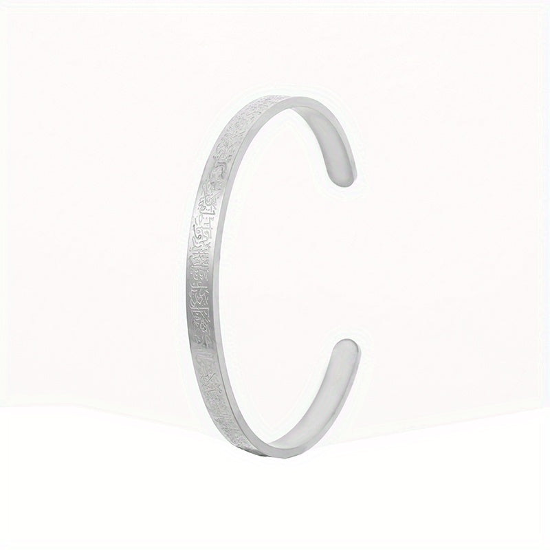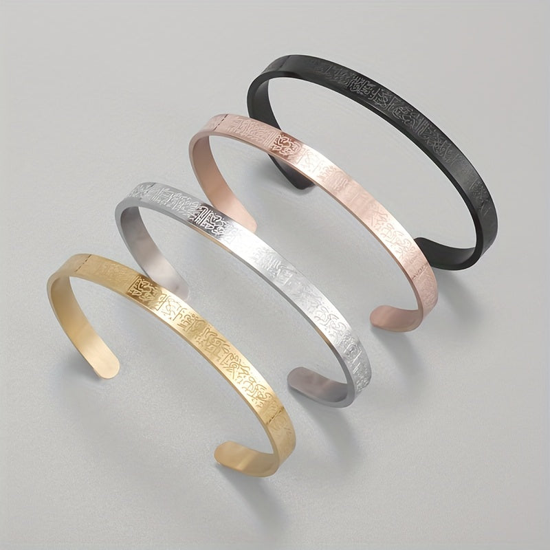 This stainless steel cuff bangle features Ayatul Kursi, making it a perfect accessory for men and women.