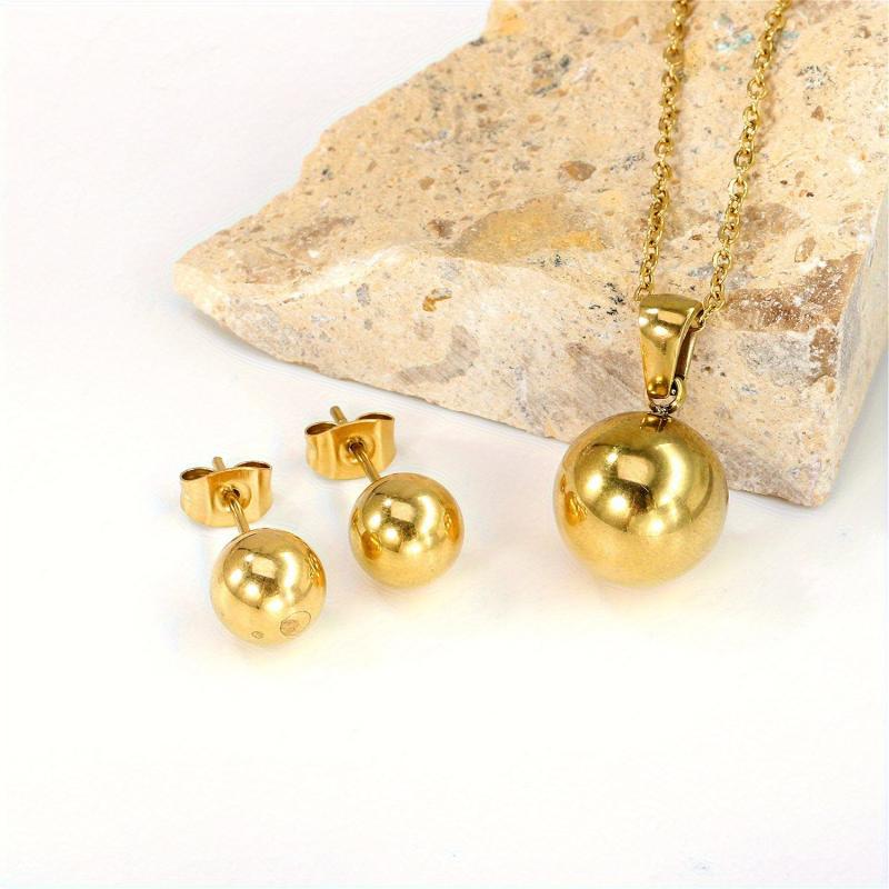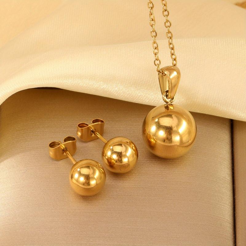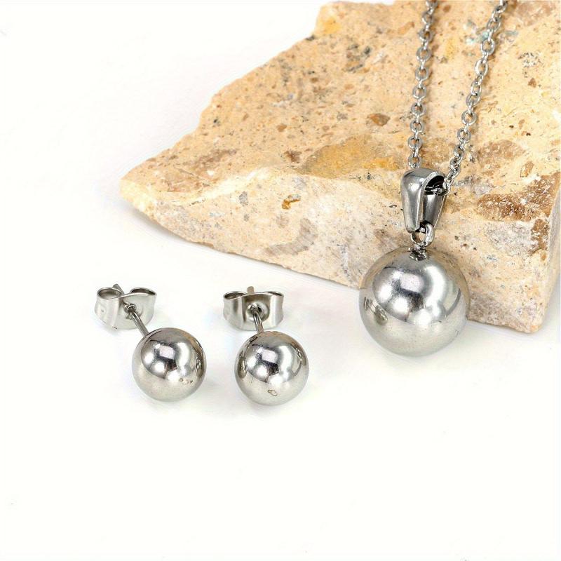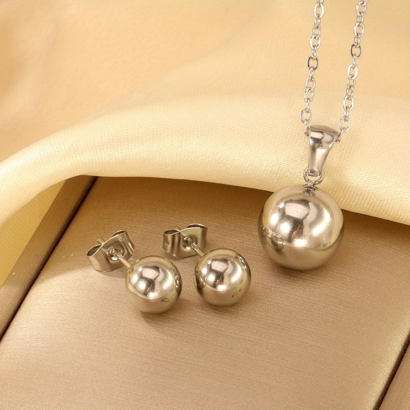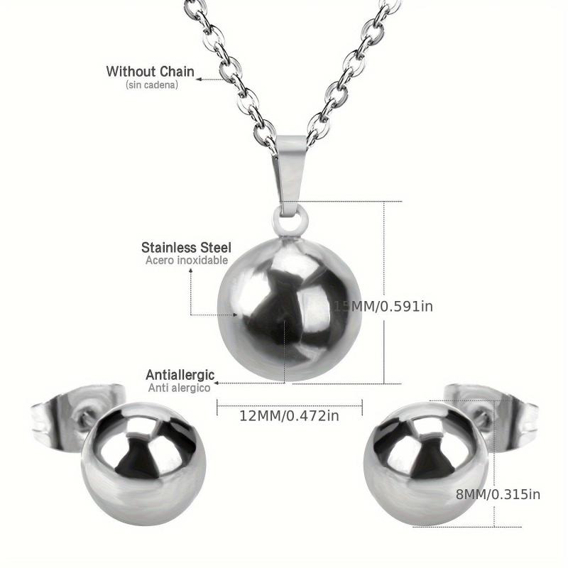 Complete your look with this hypoallergenic stainless steel ball stud earrings and necklace set. The fashionable design adds a touch of elegance to any outfit.