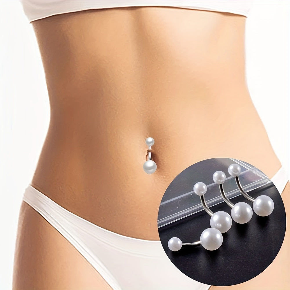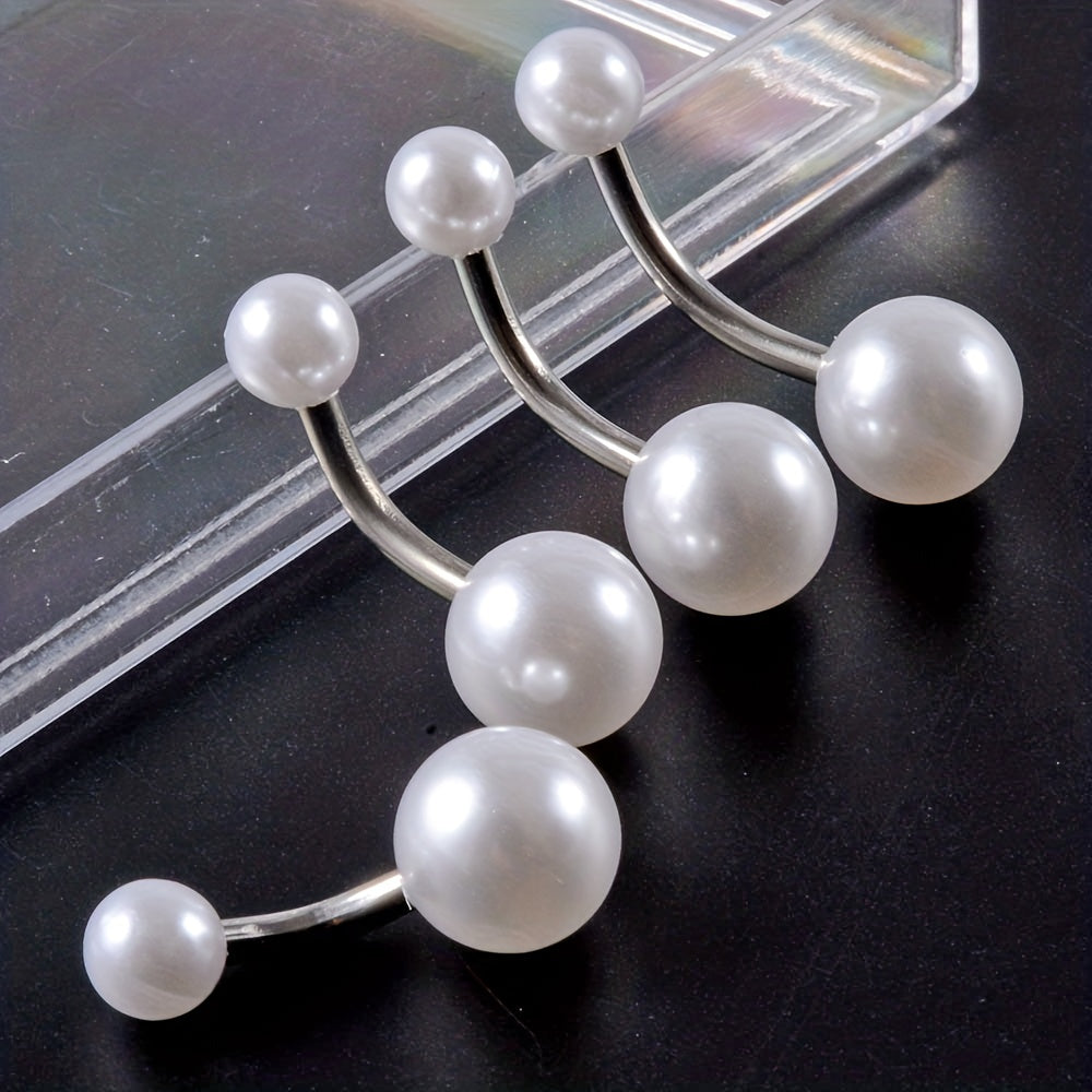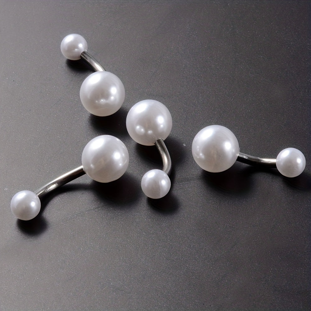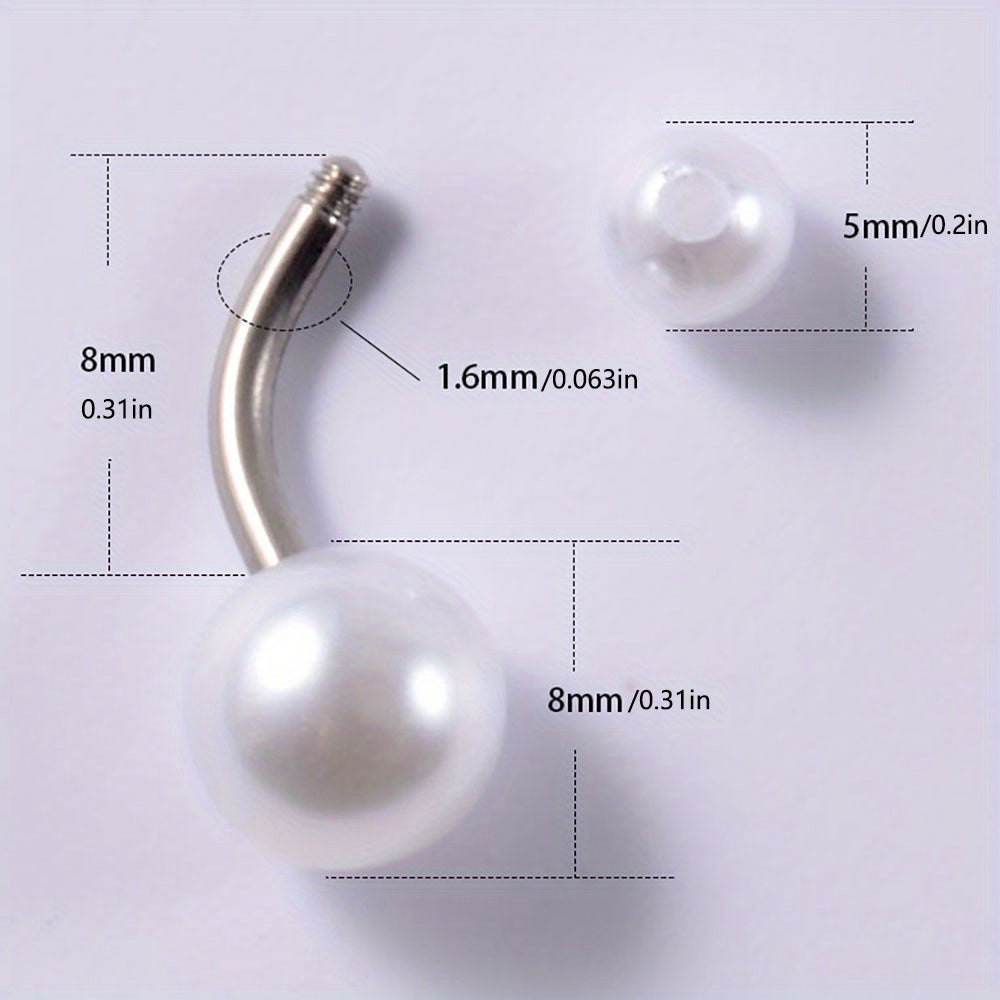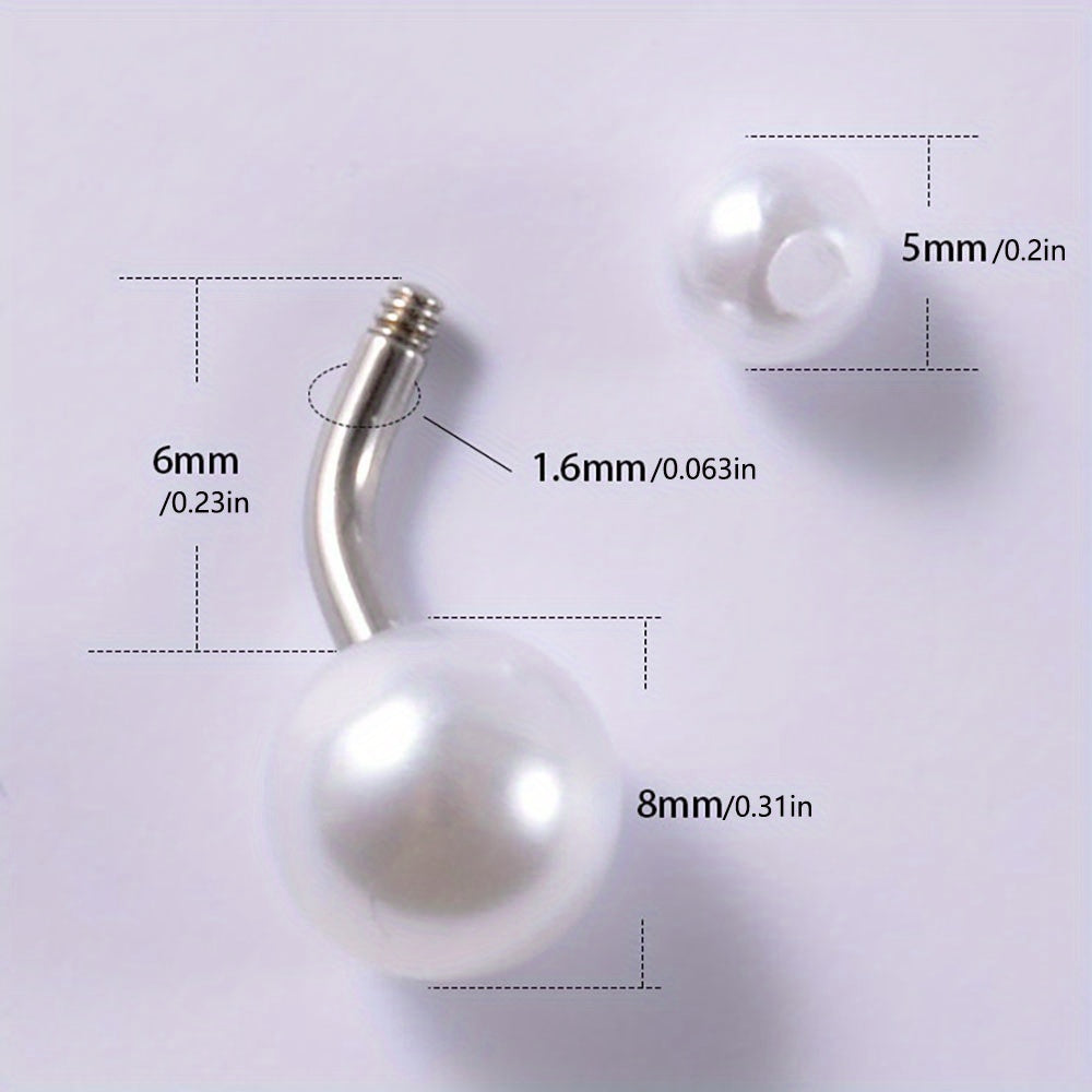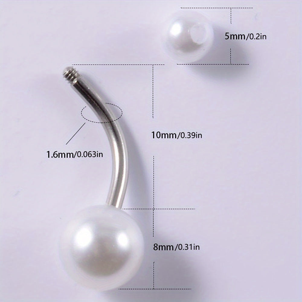 Add a touch of elegance with this stainless steel belly button ring featuring a faux pearl ball. Perfect for navel piercings, this barbell ring adds style to your look.