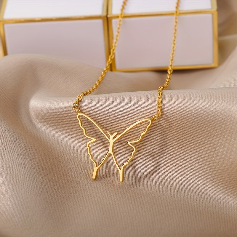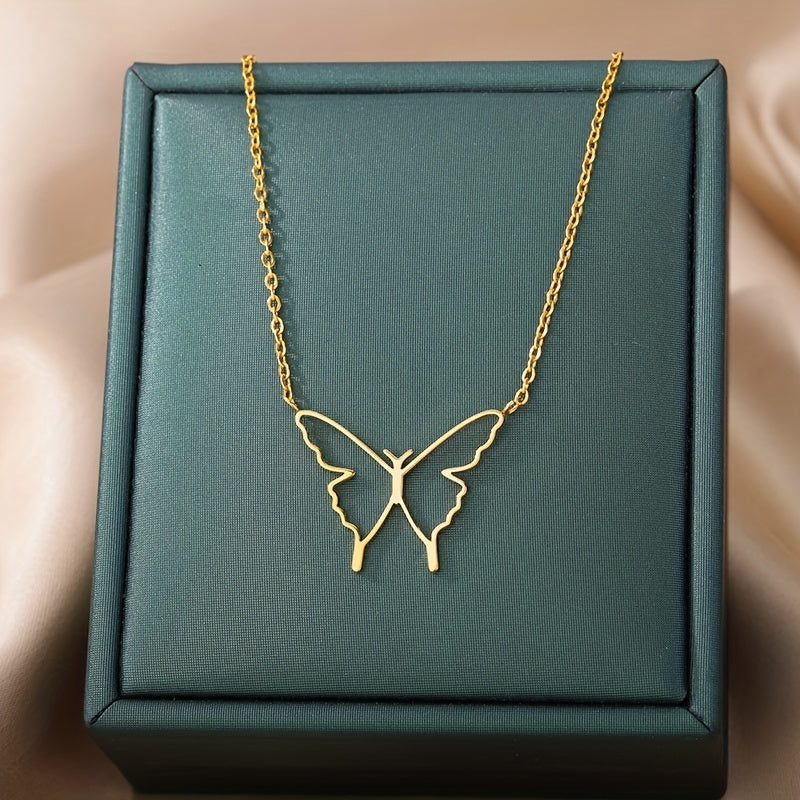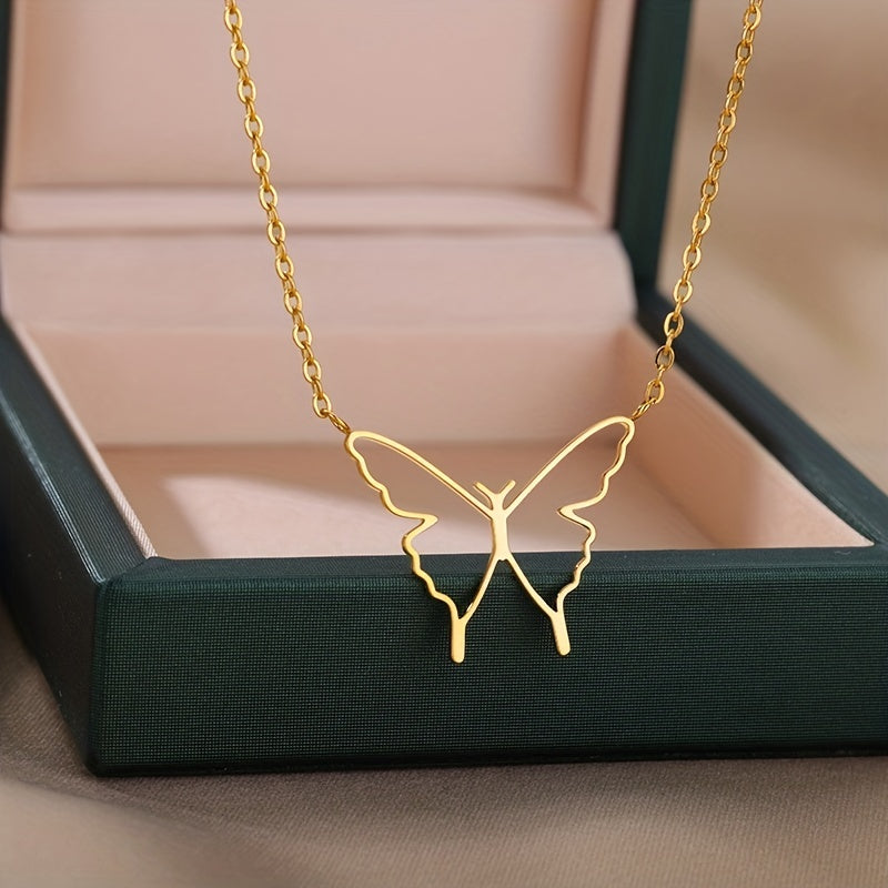 Add a touch of personality to your outfit with this stainless steel hollow butterfly necklace. Perfect for everyday wear or special occasions.