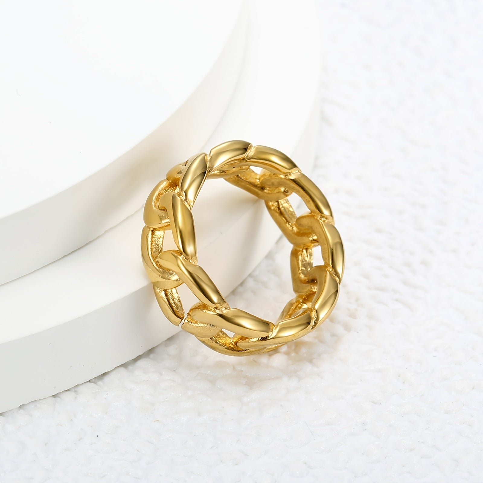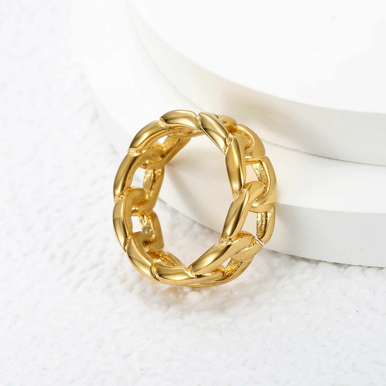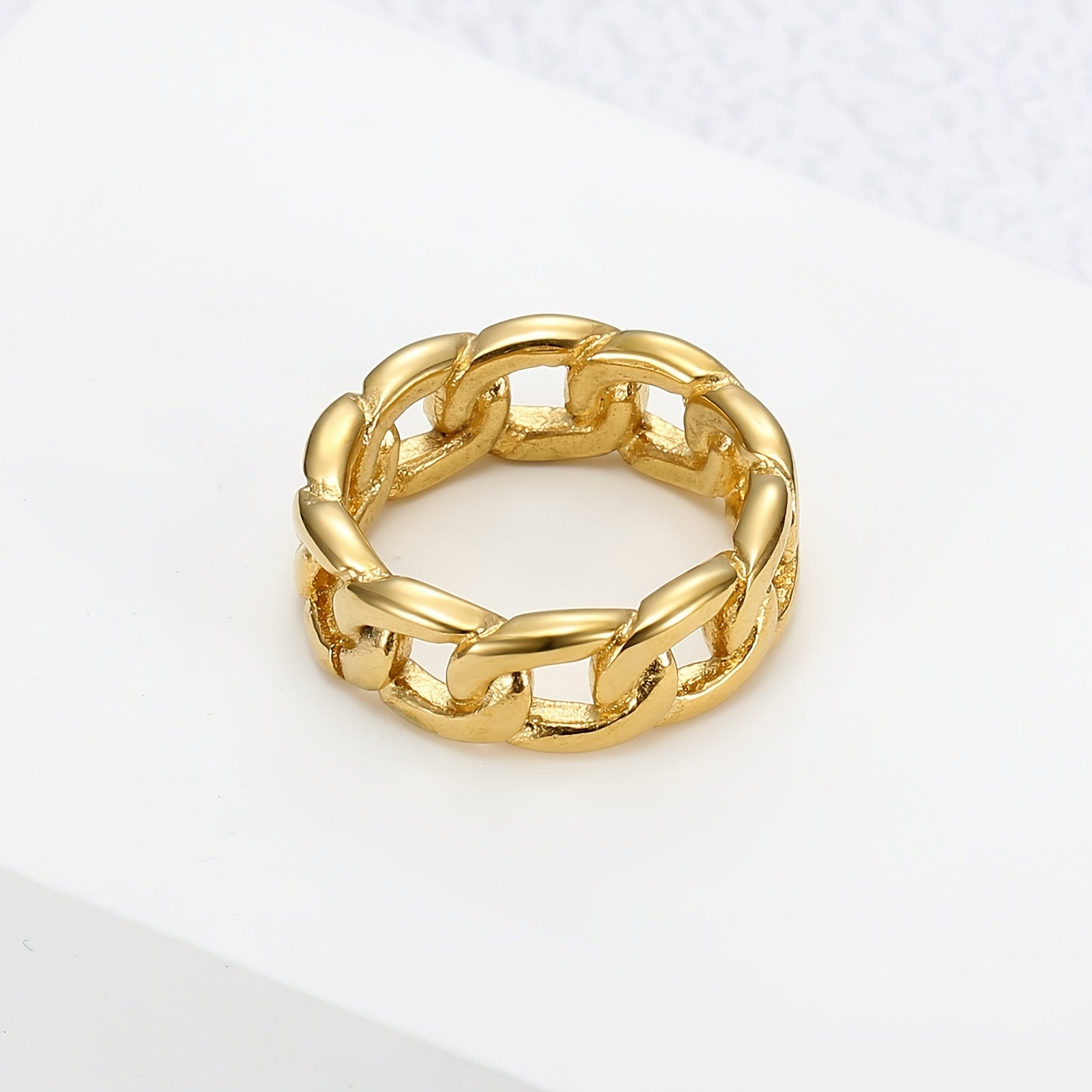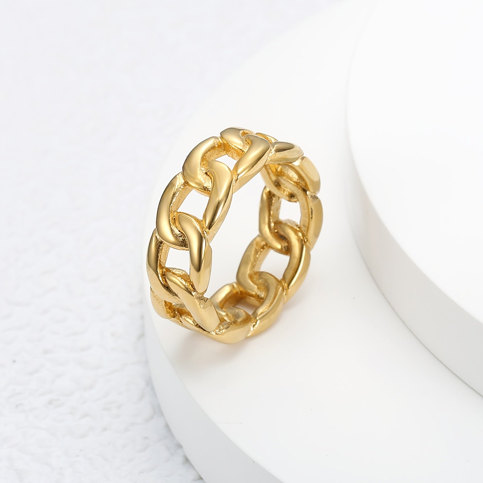 Add a touch of elegance to your outfit with this stainless steel finger ring featuring chain style design. It is plated with 18K gold, making it a perfect accessory for parties and holiday celebrations.