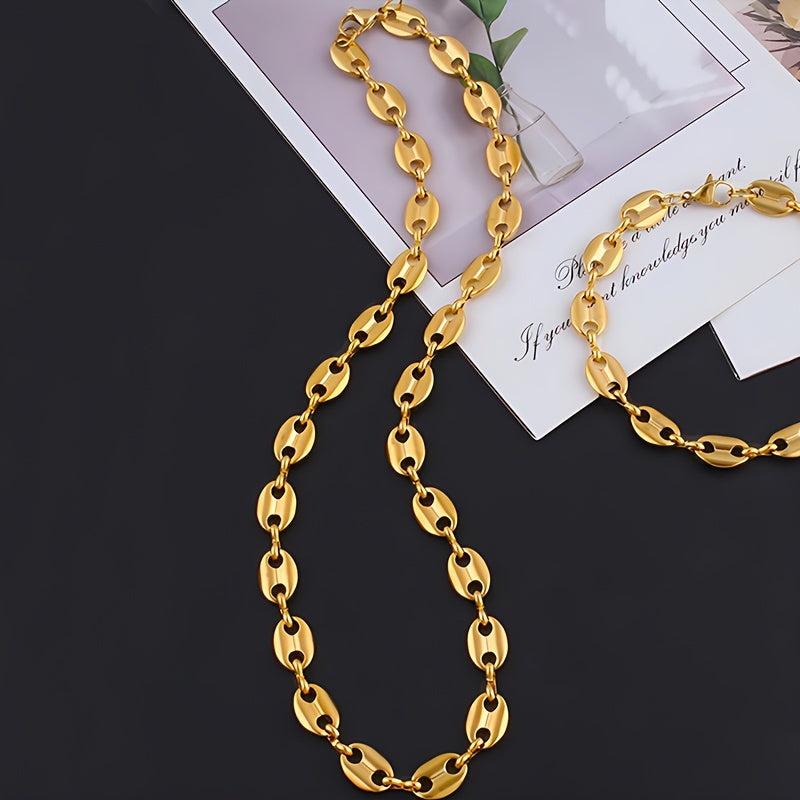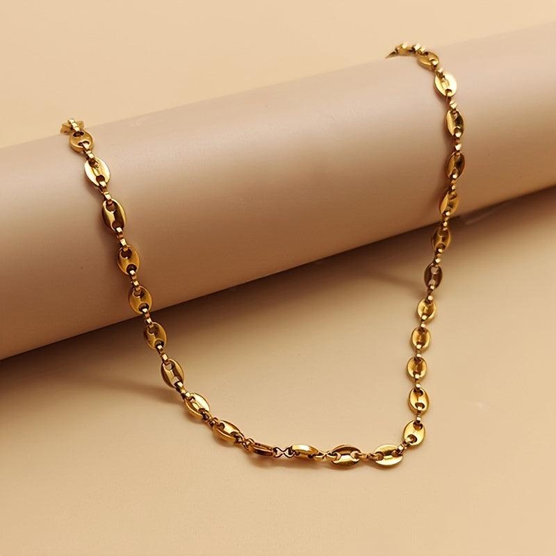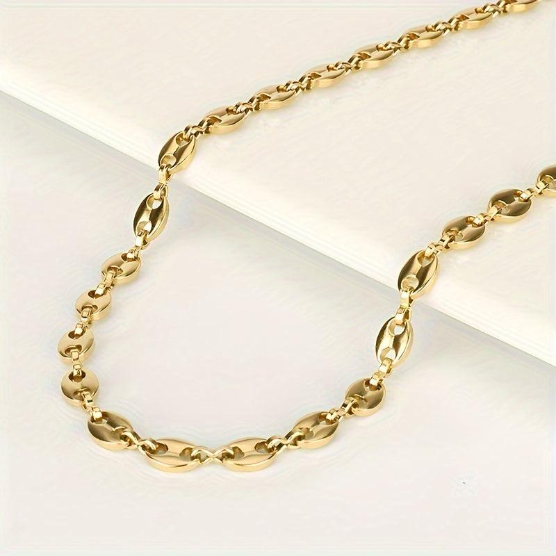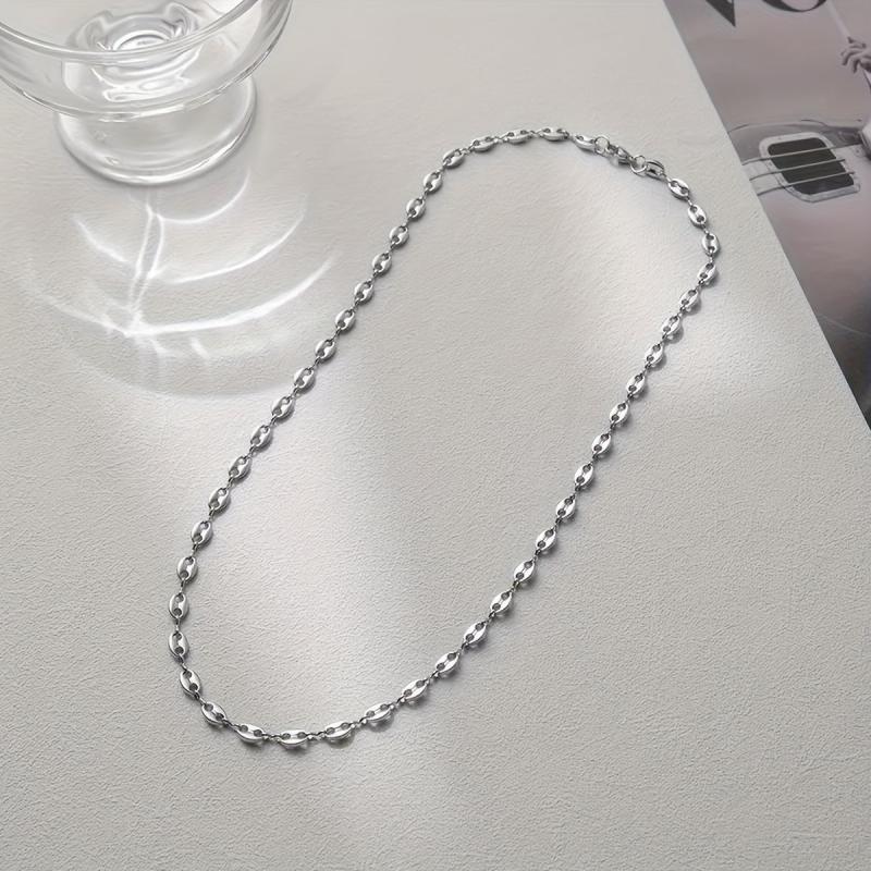 This minimalist pendant necklace features a stainless steel coffee bean design in an oval hollow out chain, perfect for men who appreciate European and American style.