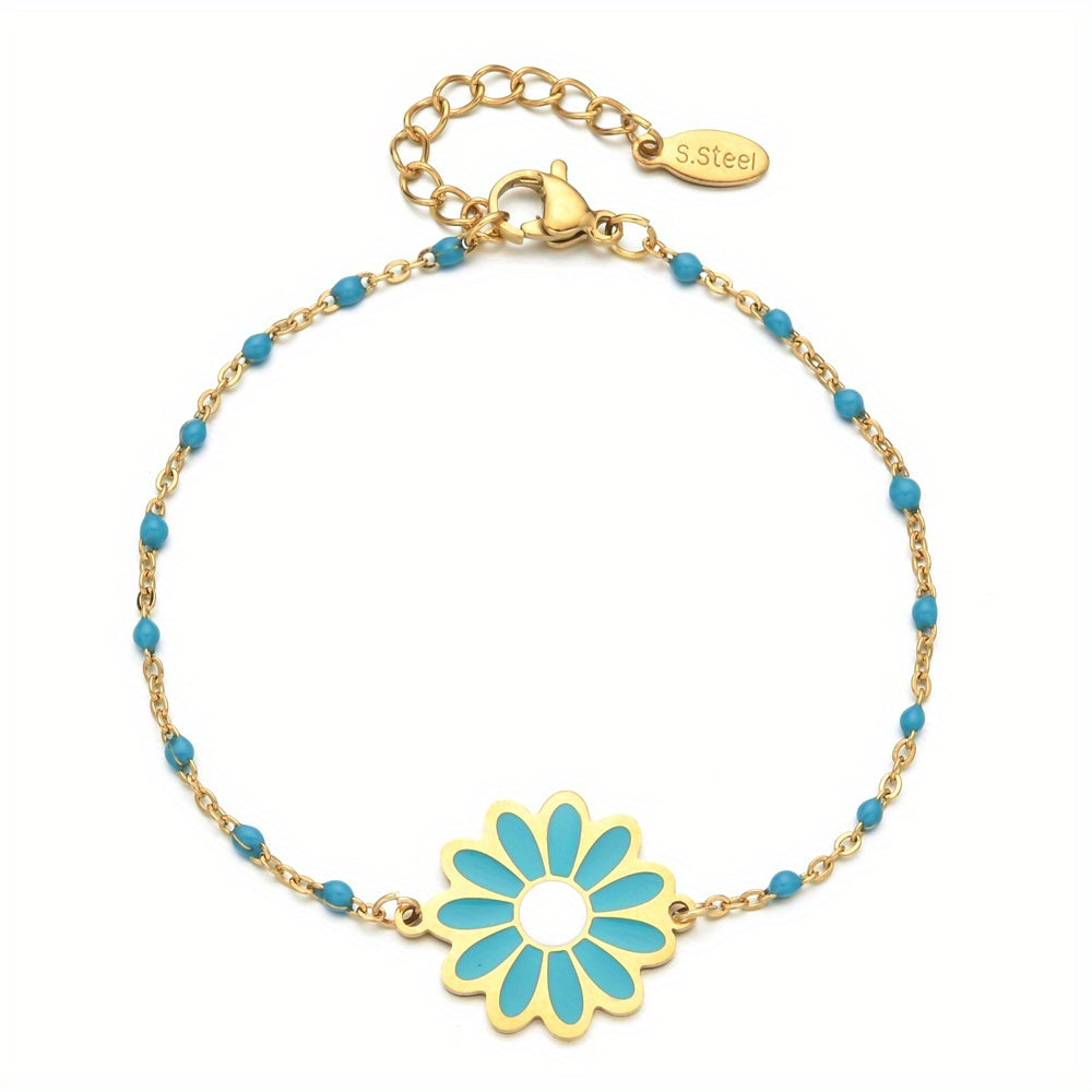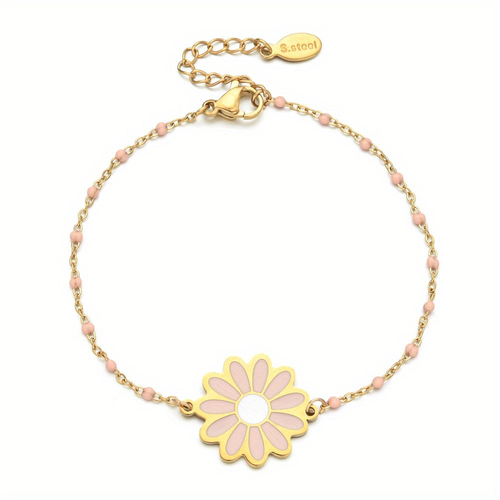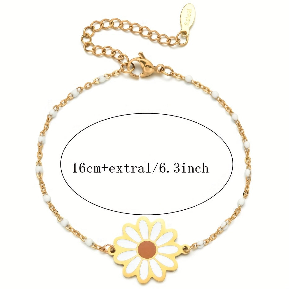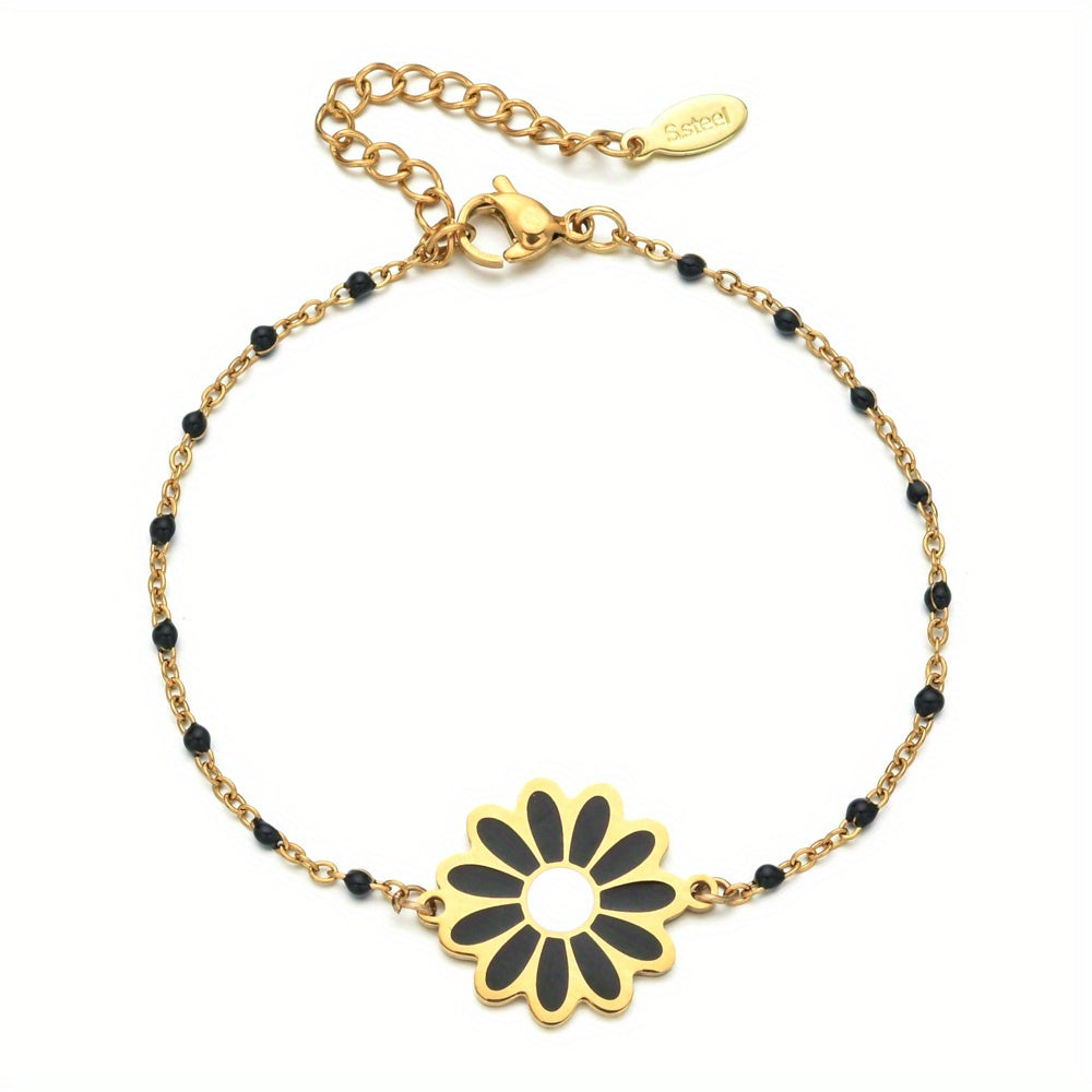 Add a touch of elegance to any party or banquet with this stunning stainless steel flower daisy bracelet. Makes a perfect gift for special occasions.