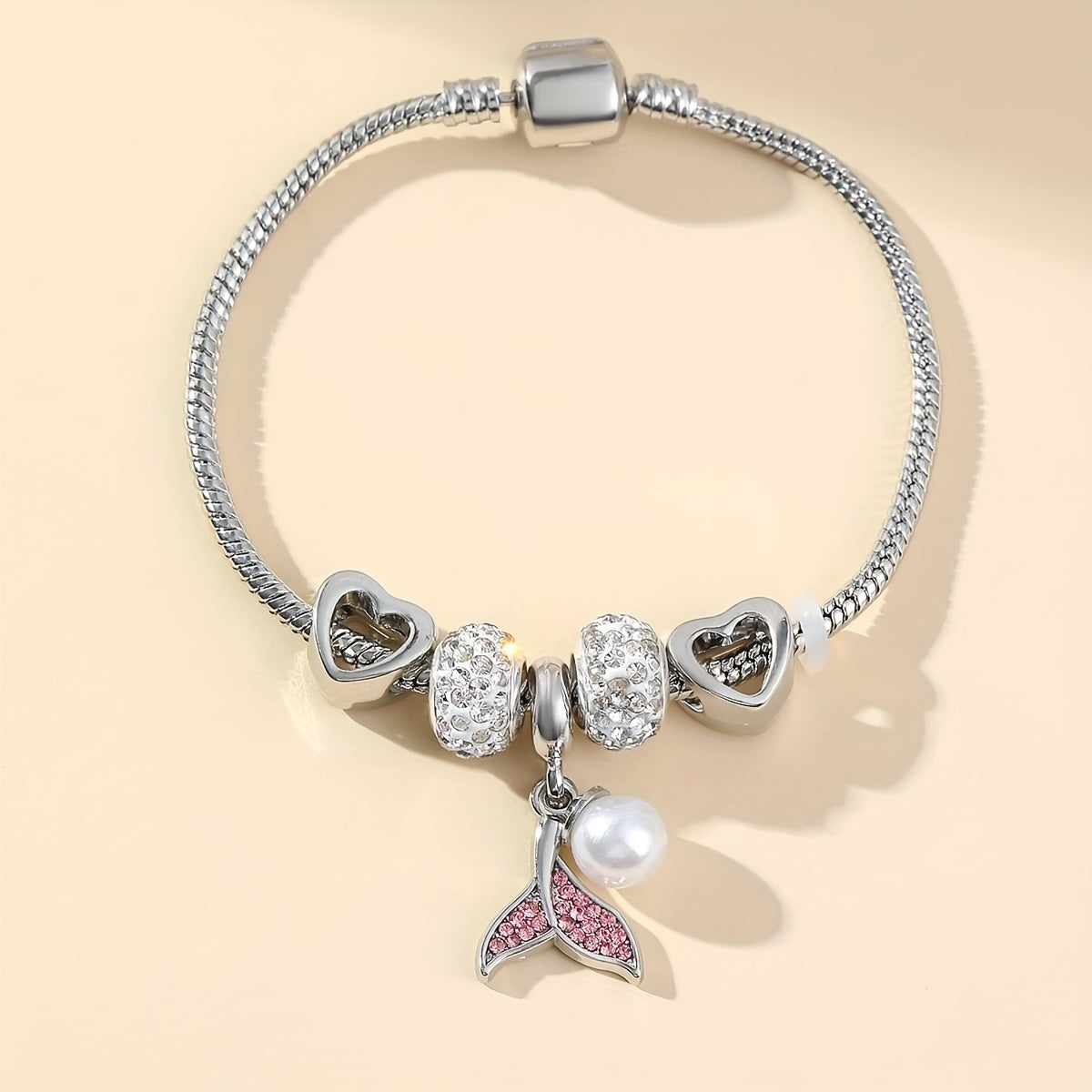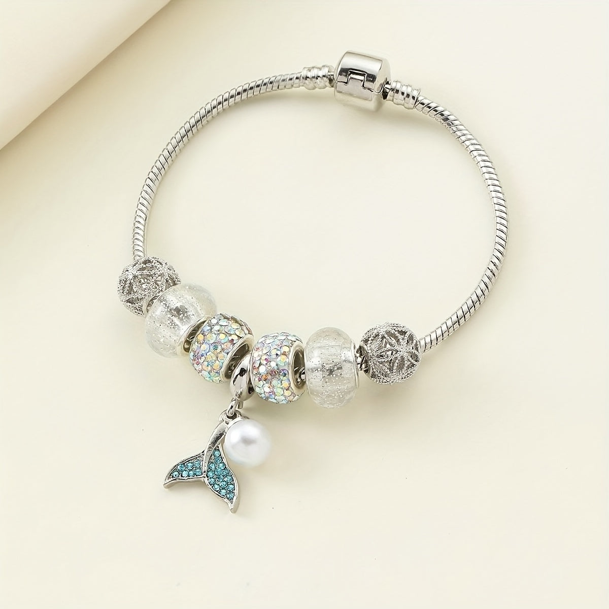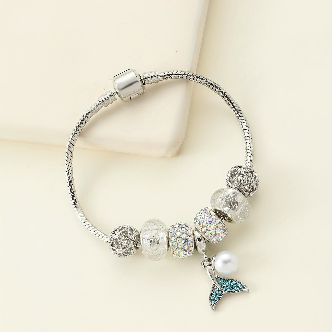 This stainless steel fishtail pendant beaded bracelet is a stylish accessory for any occasion. It makes a perfect gift for birthdays or parties.