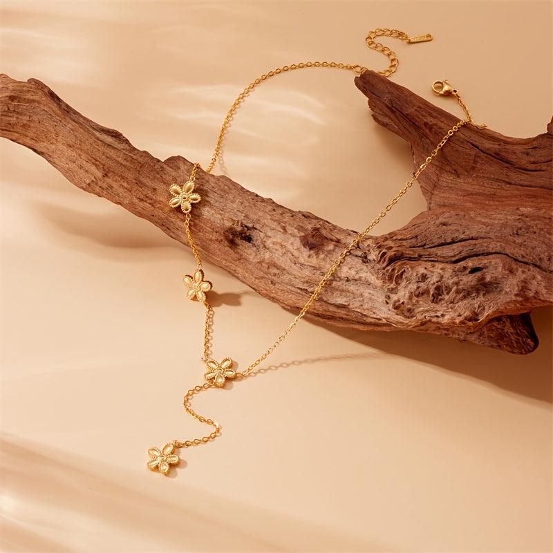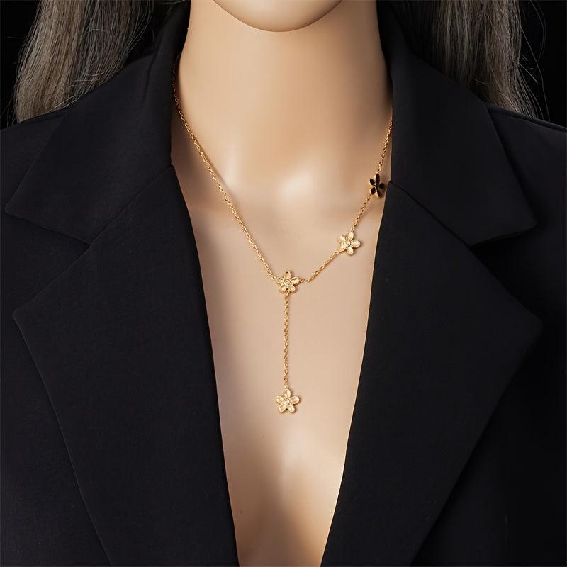 This necklace features a stunning golden flower pendant on a long O-shaped chain. Perfect for daily wear or party occasions, it's a versatile piece that complements any outfit. Ideal for all seasons.