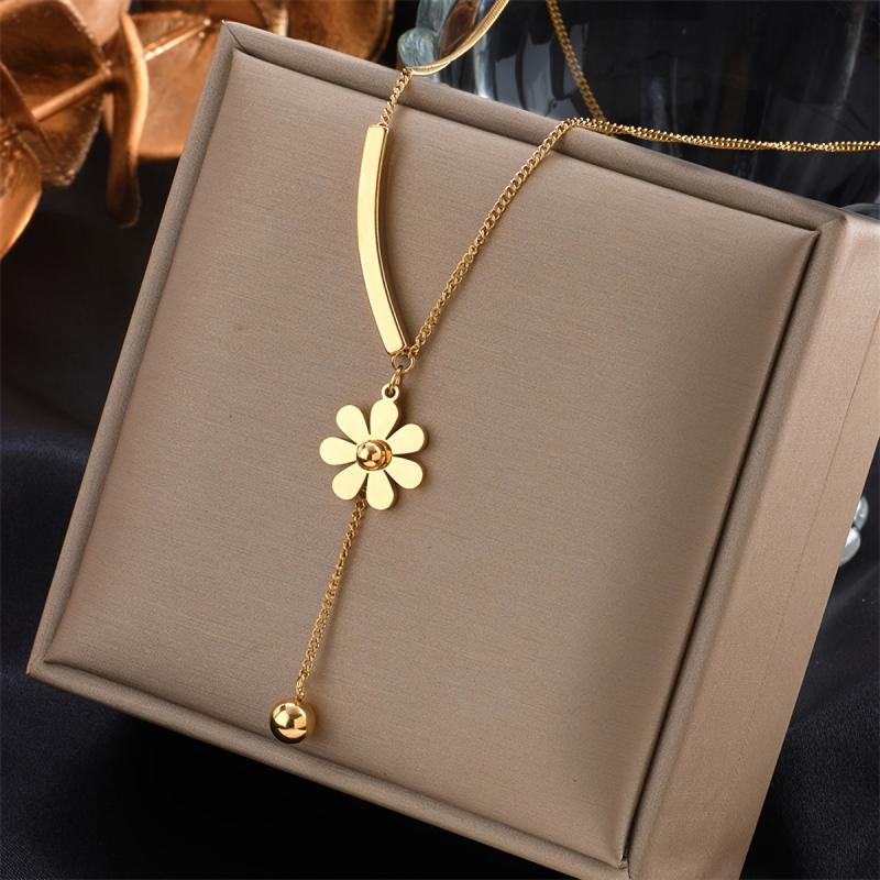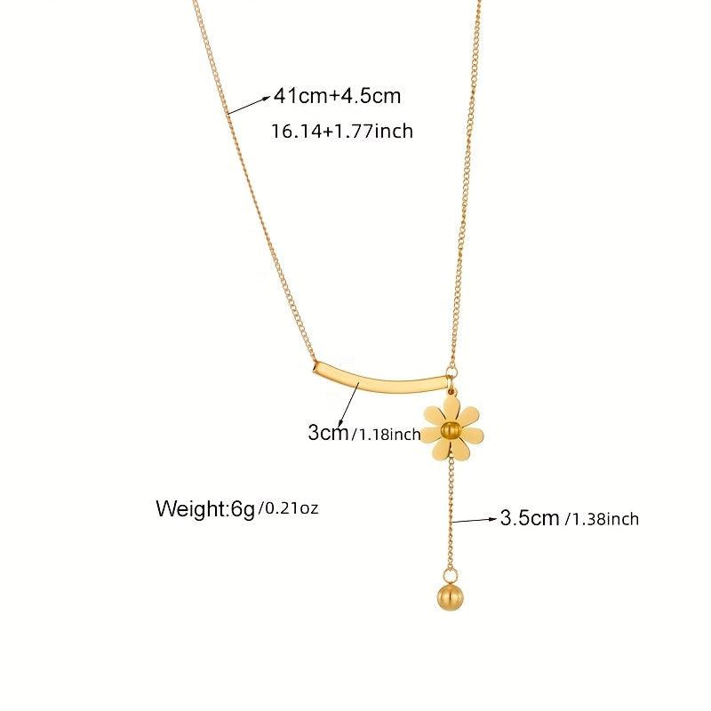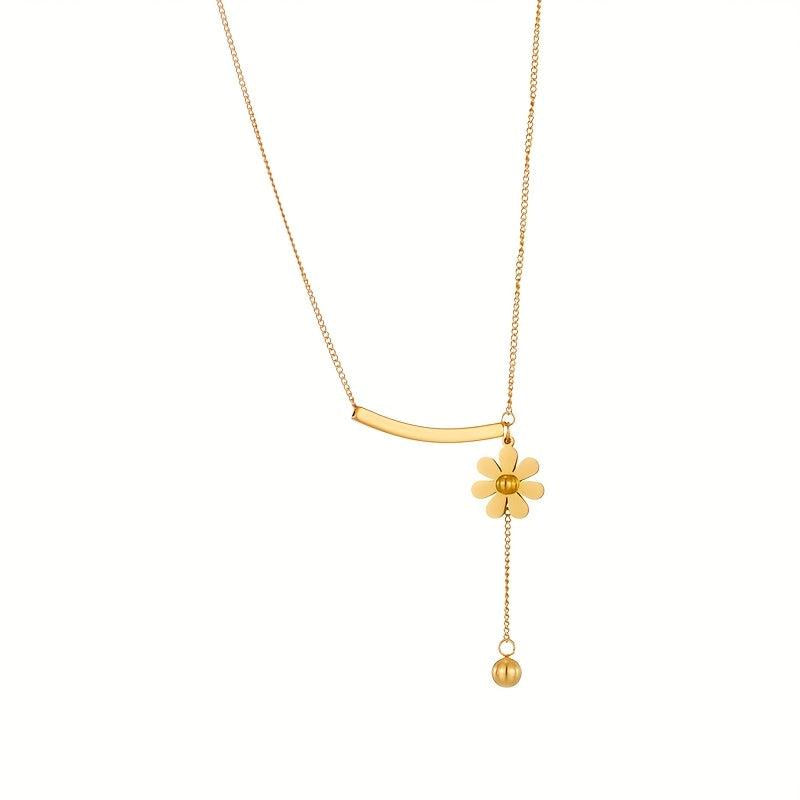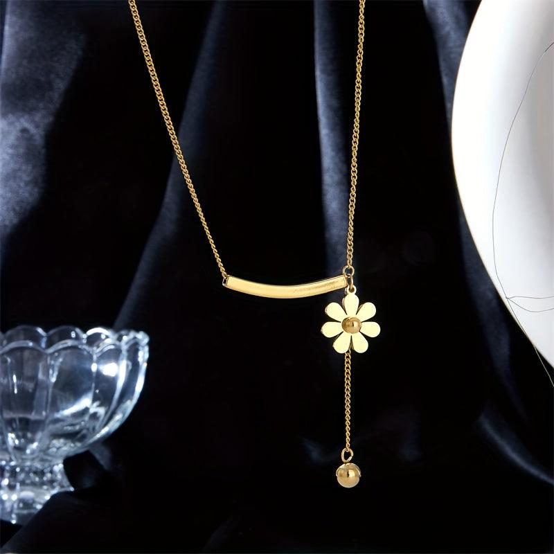 Add a touch of elegance to your outfit with this fashionable stainless steel golden necklace featuring a daisy flower round bead pendant. Perfect as a creative and stylish jewelry gift for women's parties.