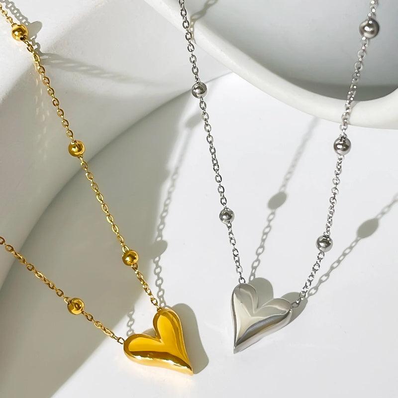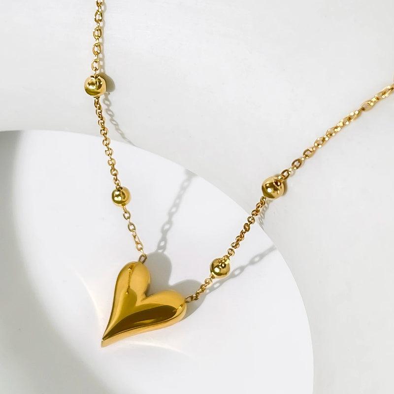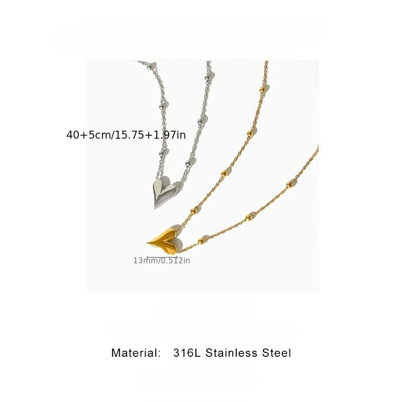 Elegant stainless steel heart pendant necklace featuring a golden tone chain, perfect for casual attire or Eid party. The delicate smooth design adds a touch of sophistication to any outfit.